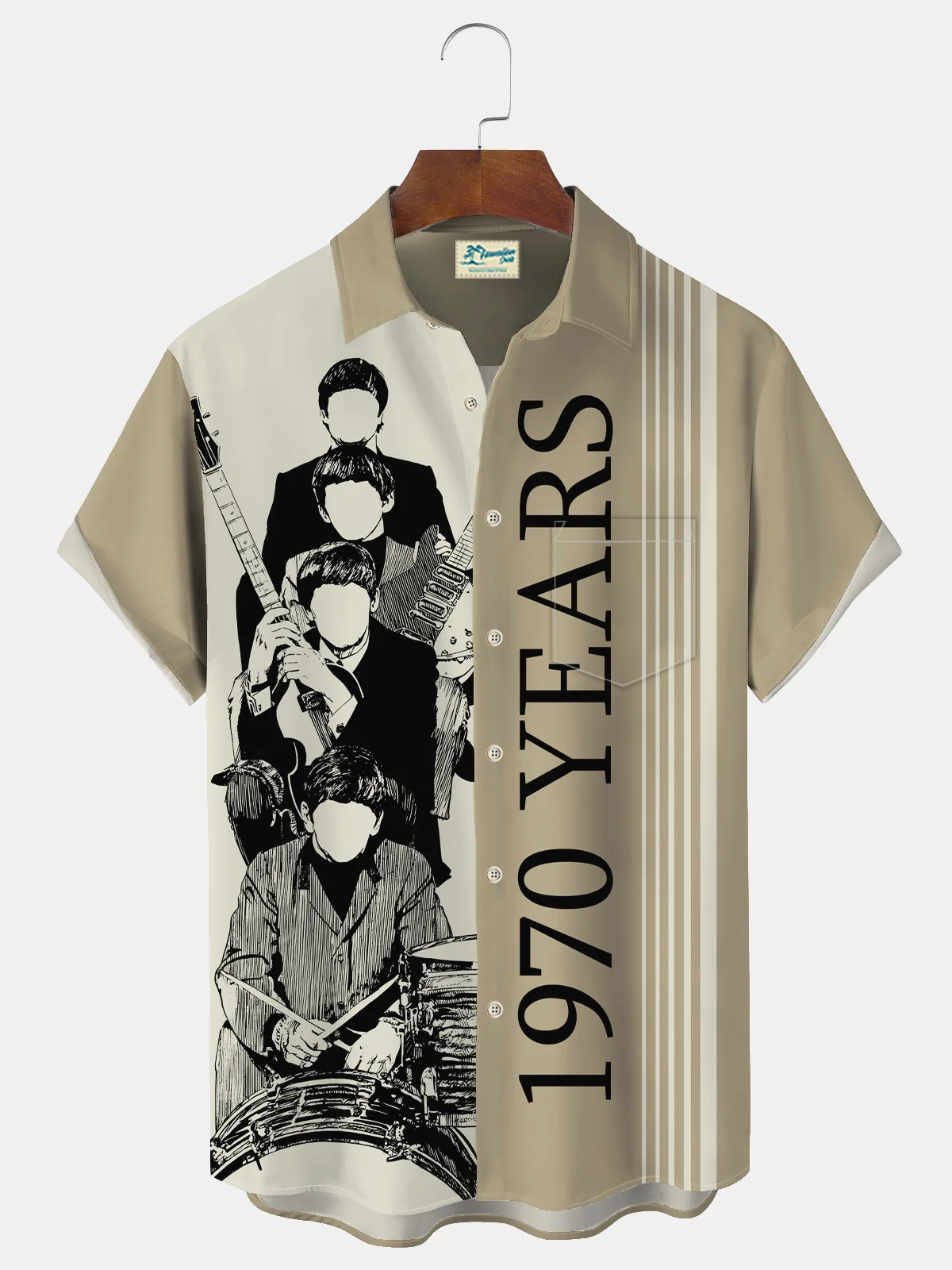 Royaura® Vintage Music Print Men's Chest Pocket Stretch Shirt Big Tall