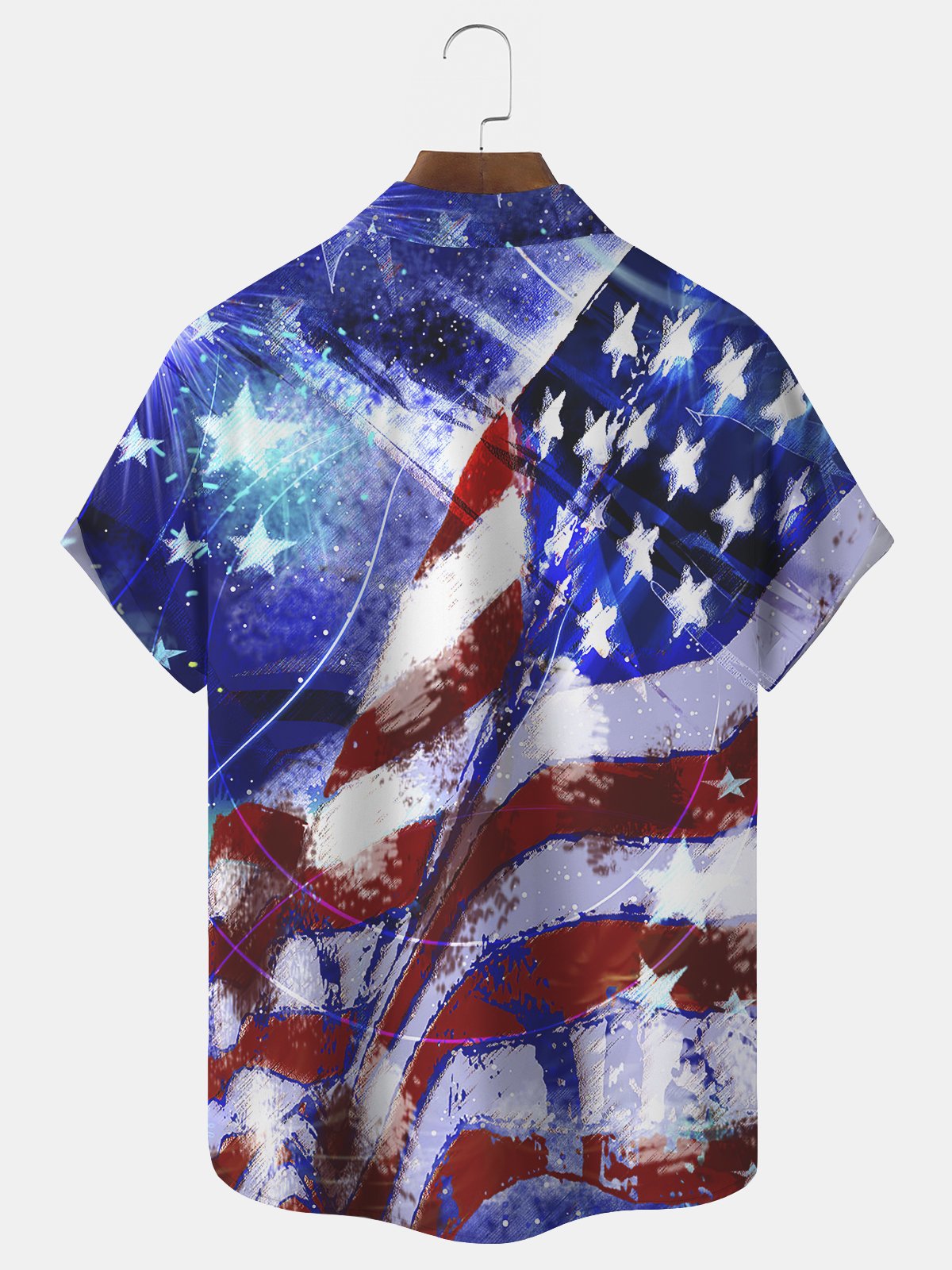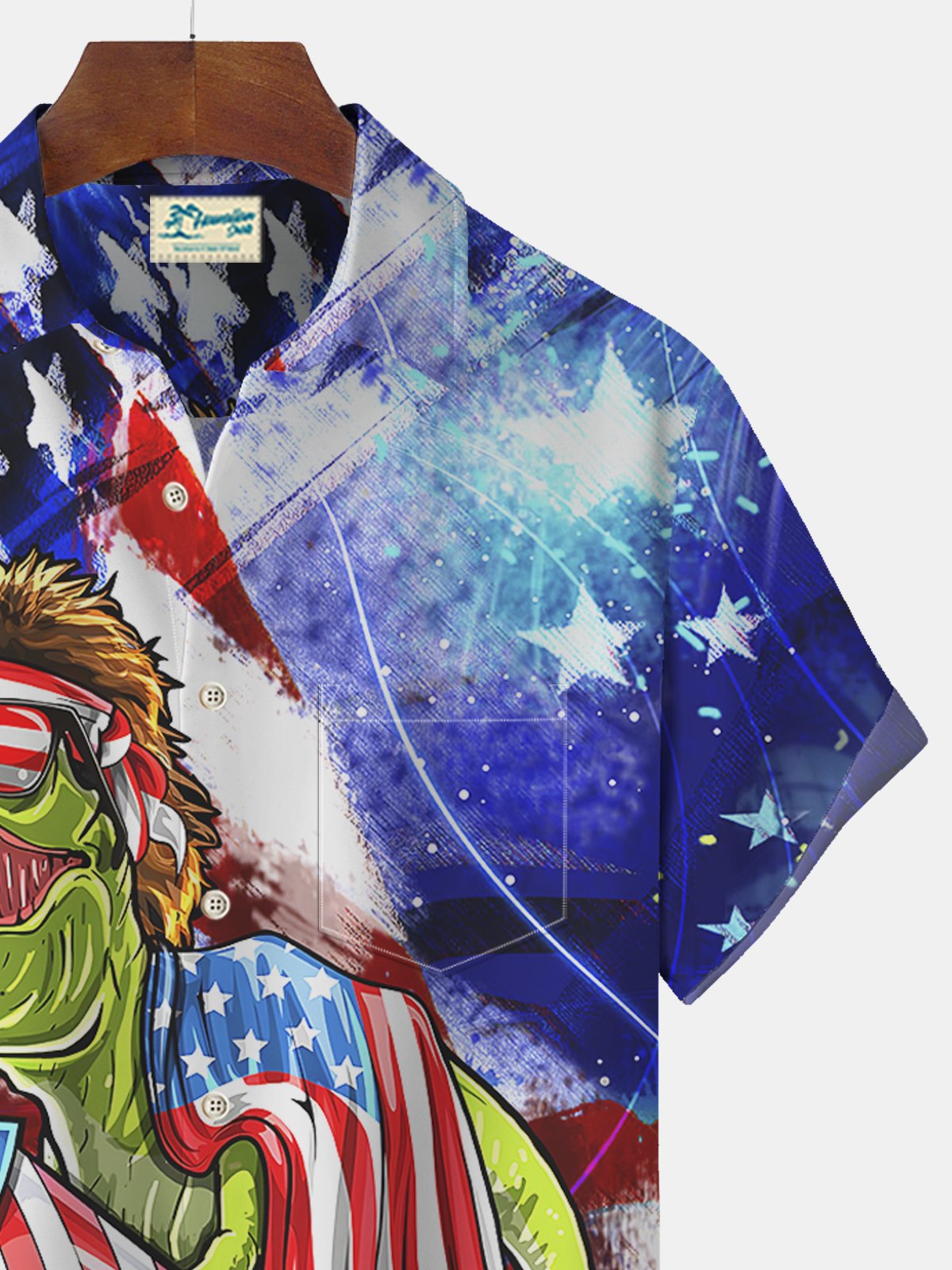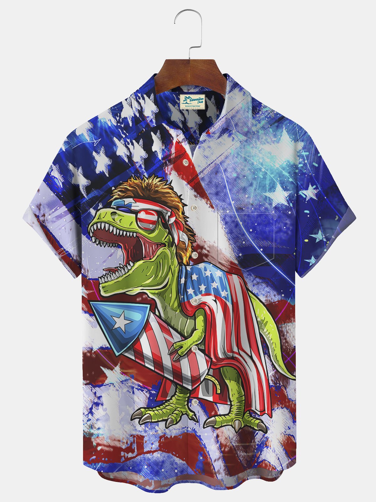 Royaura American Flag Dinosaur Print Beach Men's Hawaiian Oversized Short Sleeve Shirt with Pockets