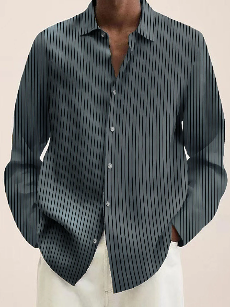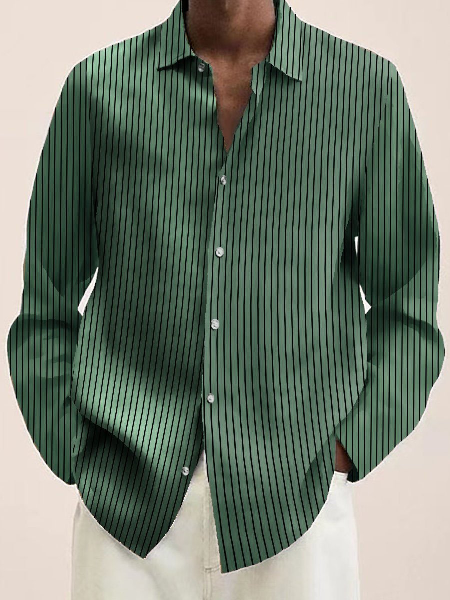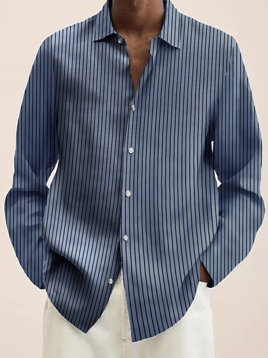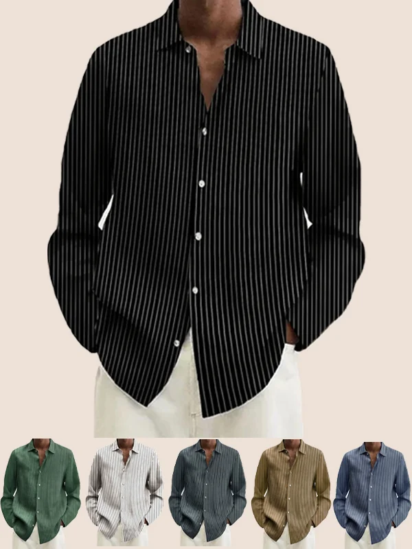 Royaura Basic Black and White Striped Men's Casual Long Sleeve Shirts Stretch Plus Size Aloha Camp Pocket Shirts