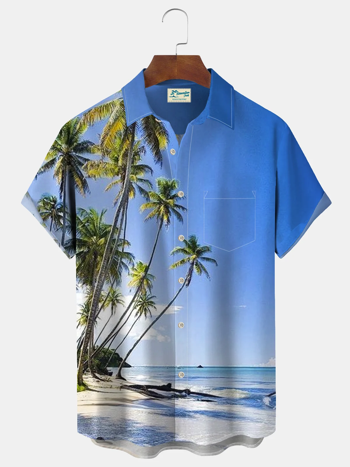 Royaura Beach Coconut Palm Print Men's Vacation Hawaiian Big and Tall Aloha Shirt