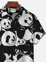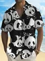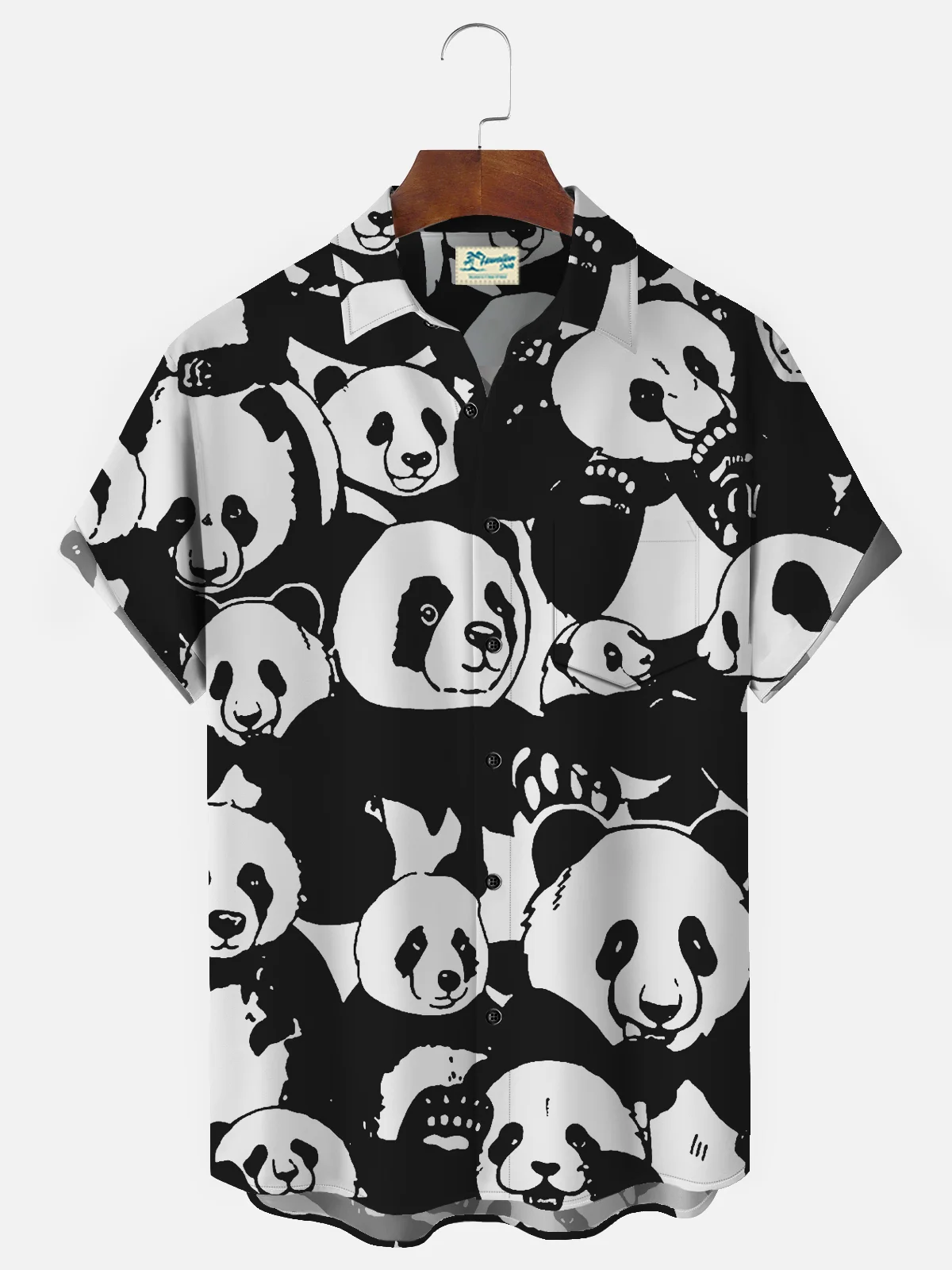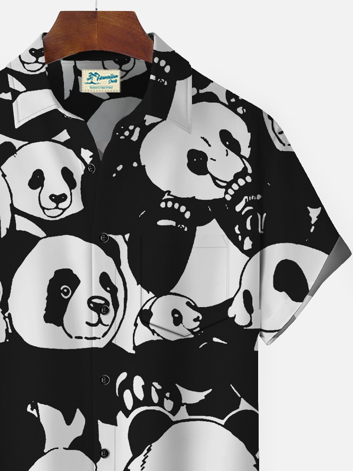 Royaura Beach Holiday Black Panda Men's Hawaiian Shirts Stretch Plus Size Aloha Camp Pocket Animal Shirts