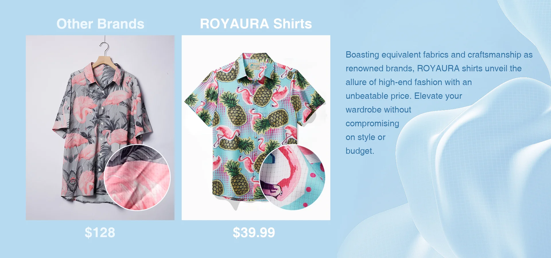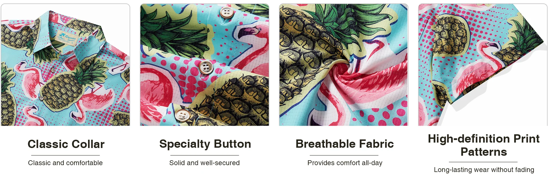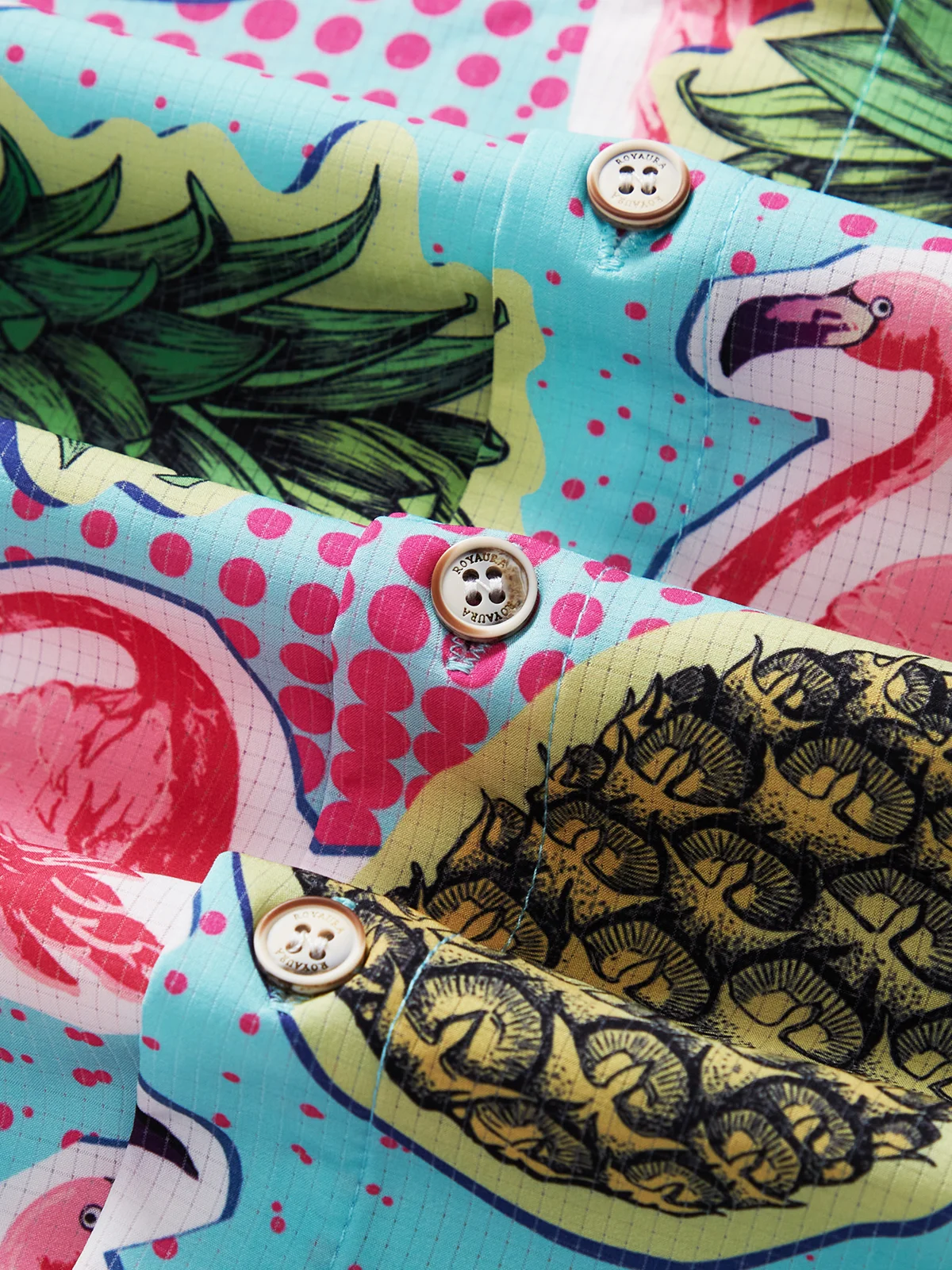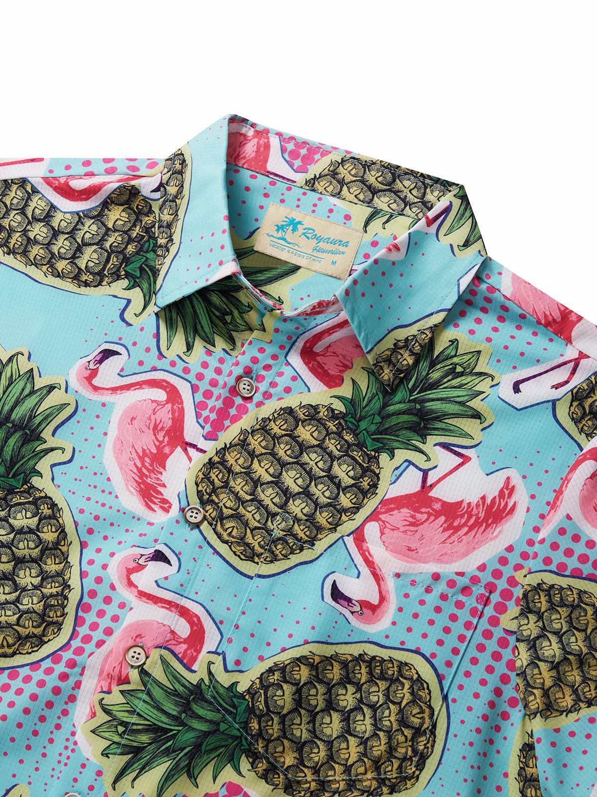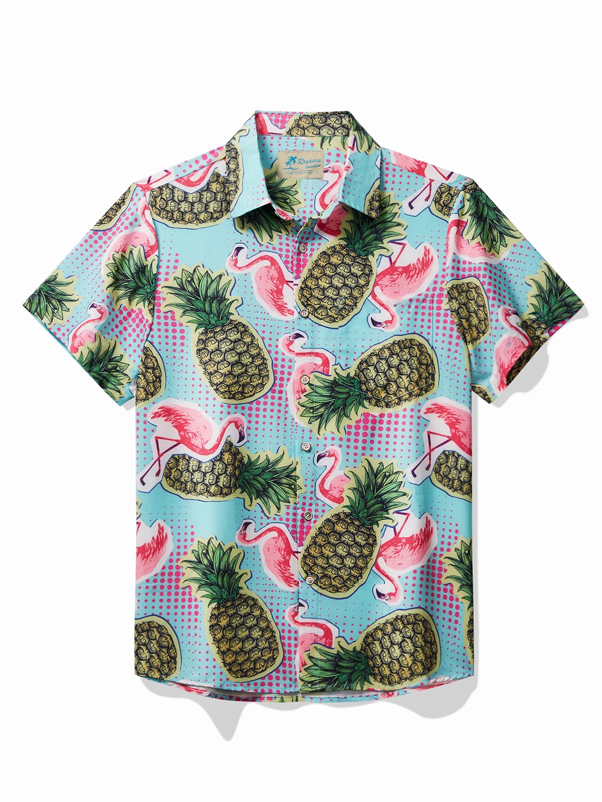 Royaura Beach Holiday Blue Men's Hawaiian Cool Ice Shirts Flamingo Pineapple