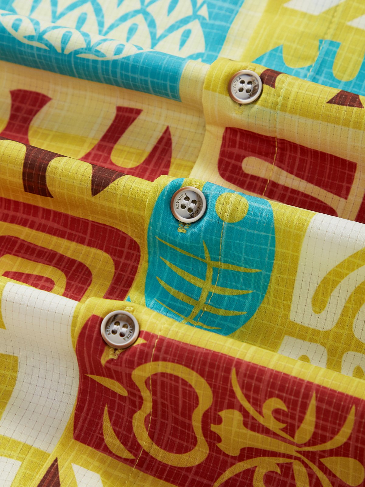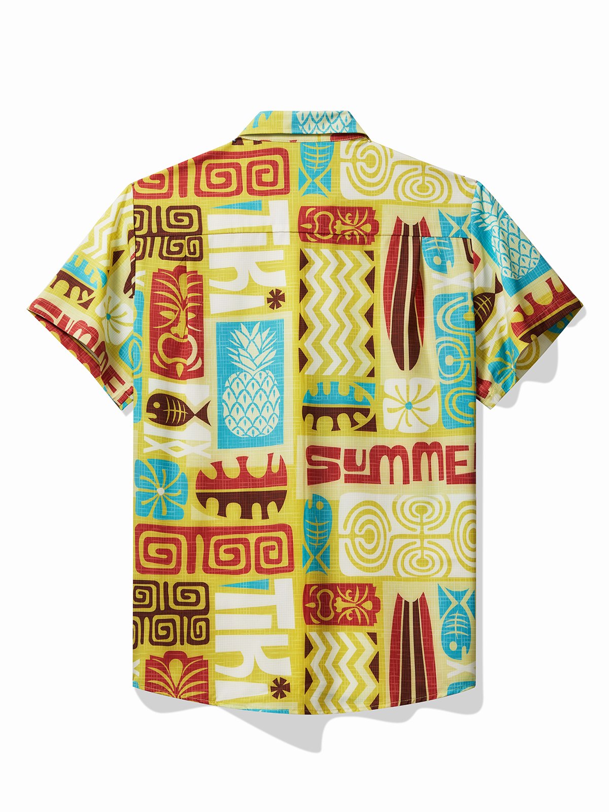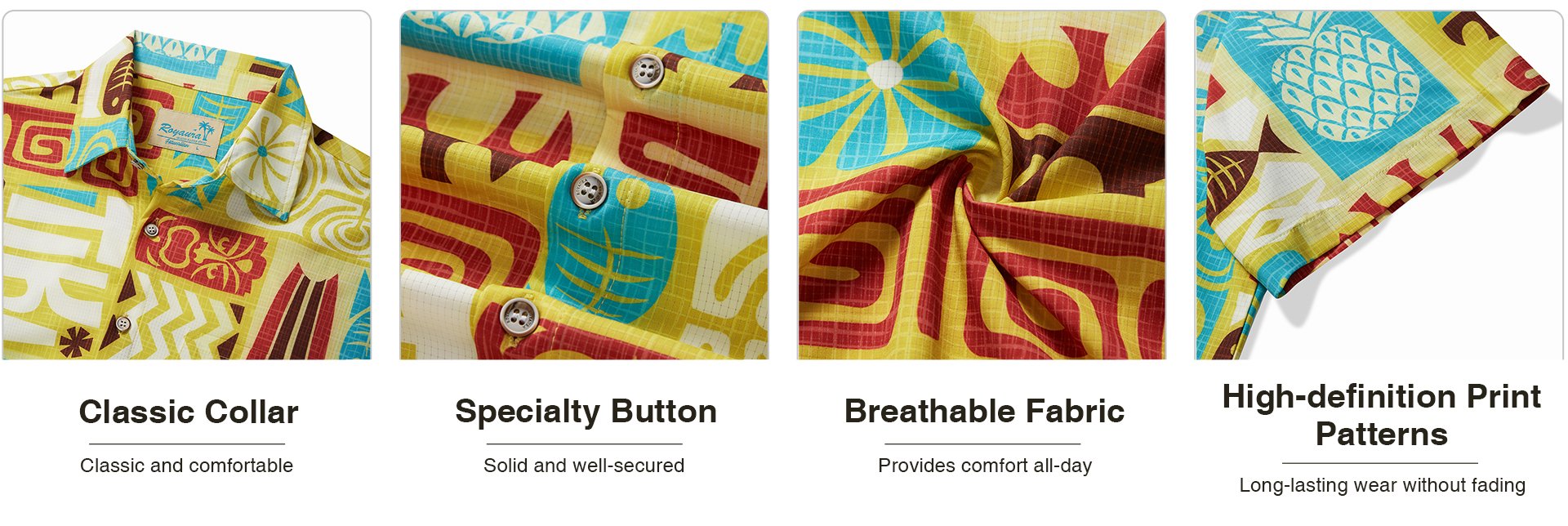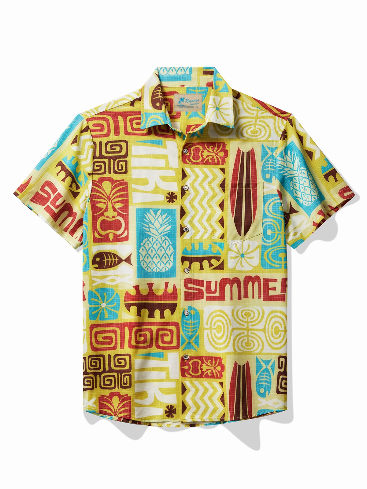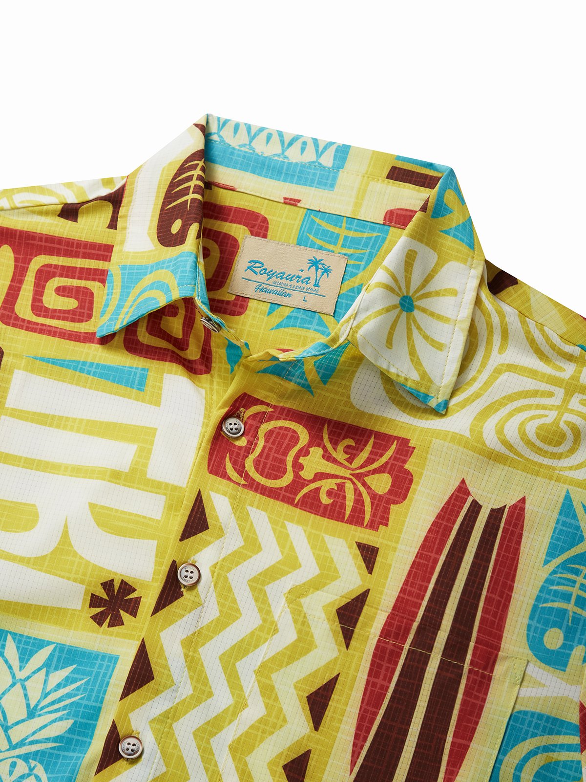 Royaura Beach Holiday Men's Hawaiian Shirts TIKI Totem Sweat-Wicking Breathable Easy Care Stretch Aloha Camp Pocket Shirts