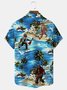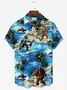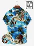 Royaura Beach Vacation Blue Bigfoot Men's Hawaiian Shirts Wrinkle Free Seersucker Aloha Camp Pocket Shirts