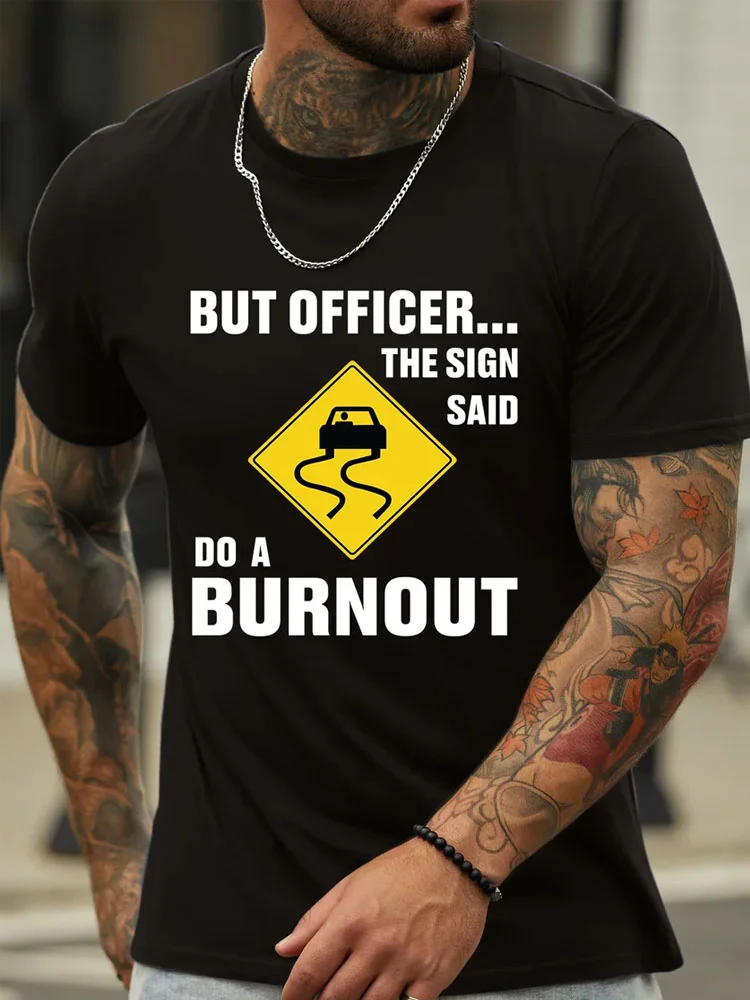 Royaura But Officer The Sign Said Do A Burnout Men's Crew Neck Casual T-Shirt