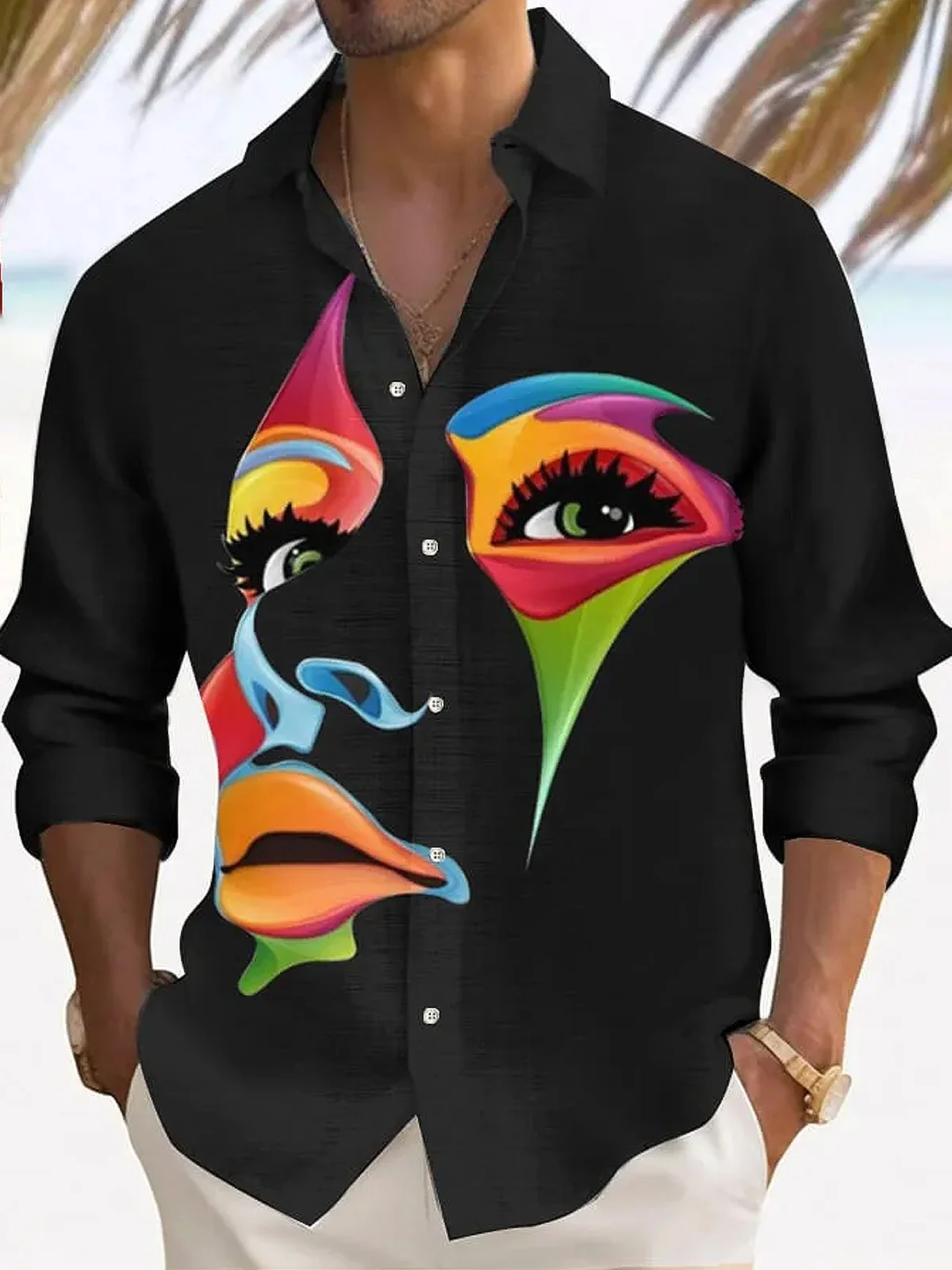 Royaura Christmas Holiday Face Art Print Men's Button Pocket Long Sleeve Shirt
