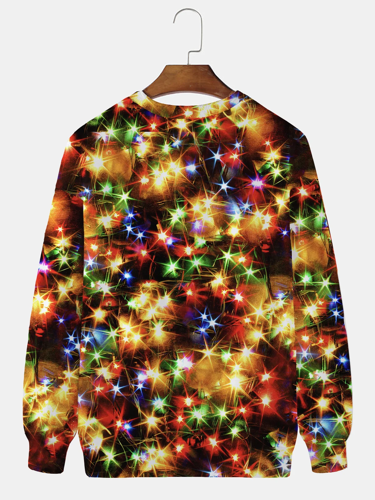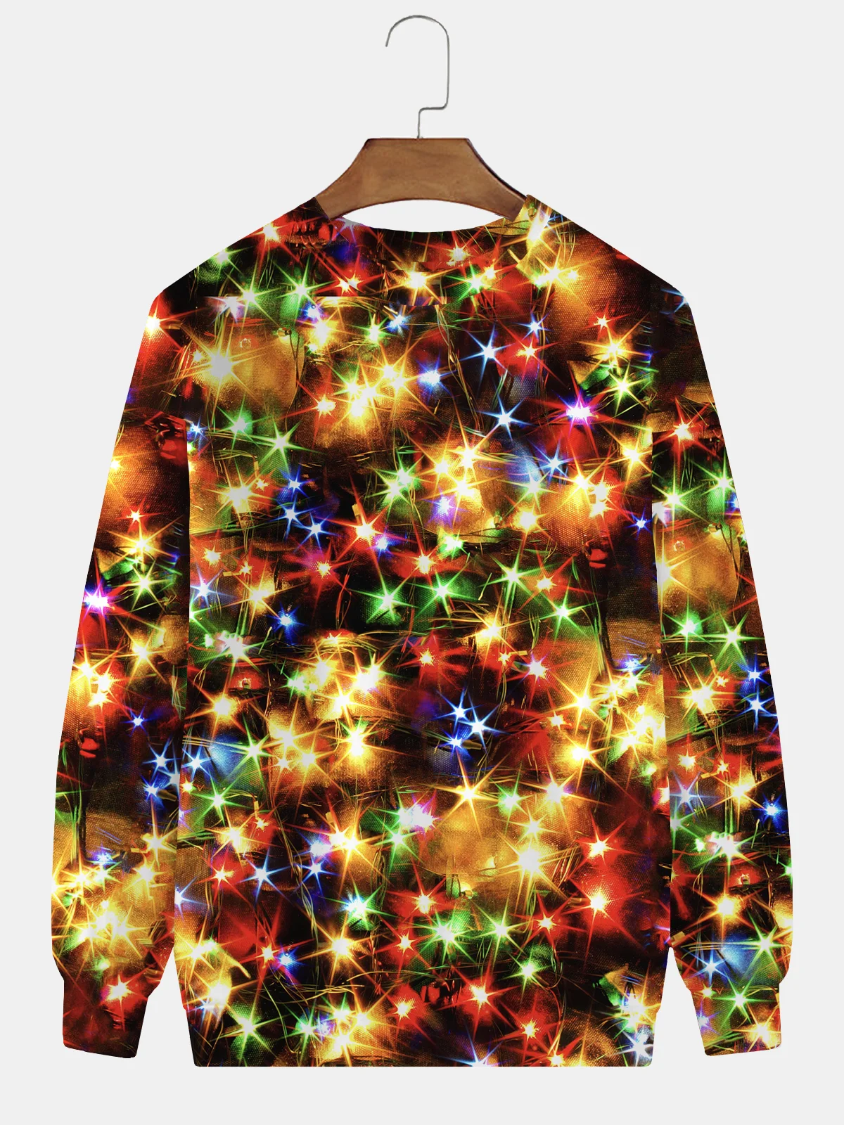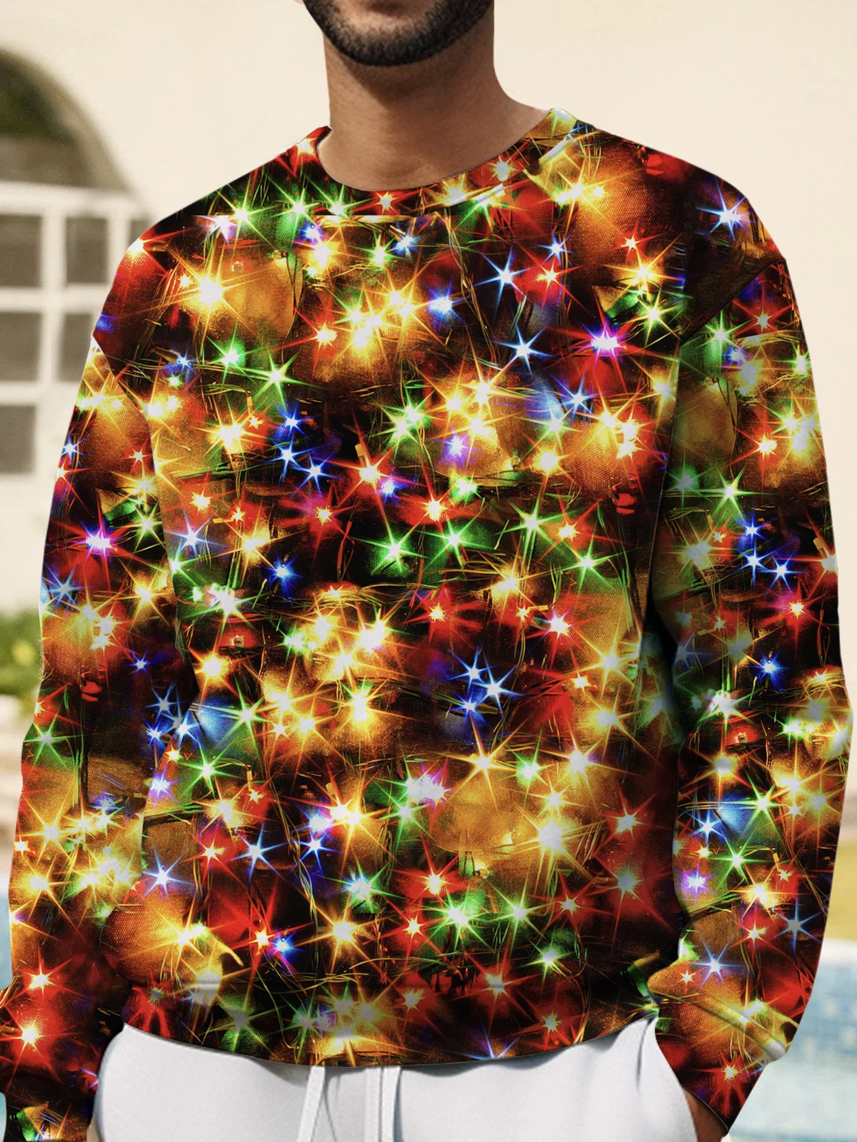 Royaura Christmas Holiday Men's Round Neck Sweatshirt Lights Art Warm Comfortable Pullover Top Big Tall