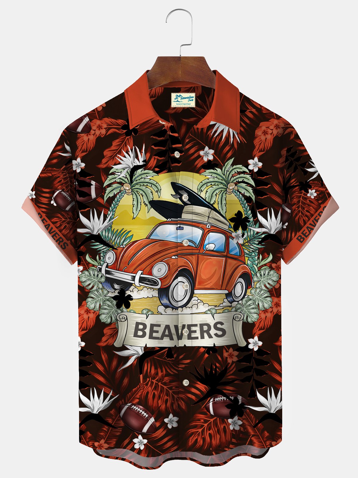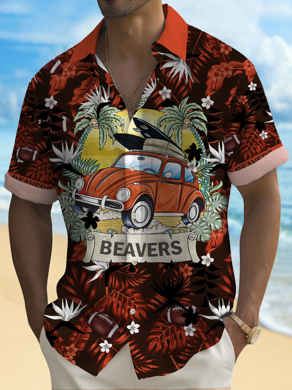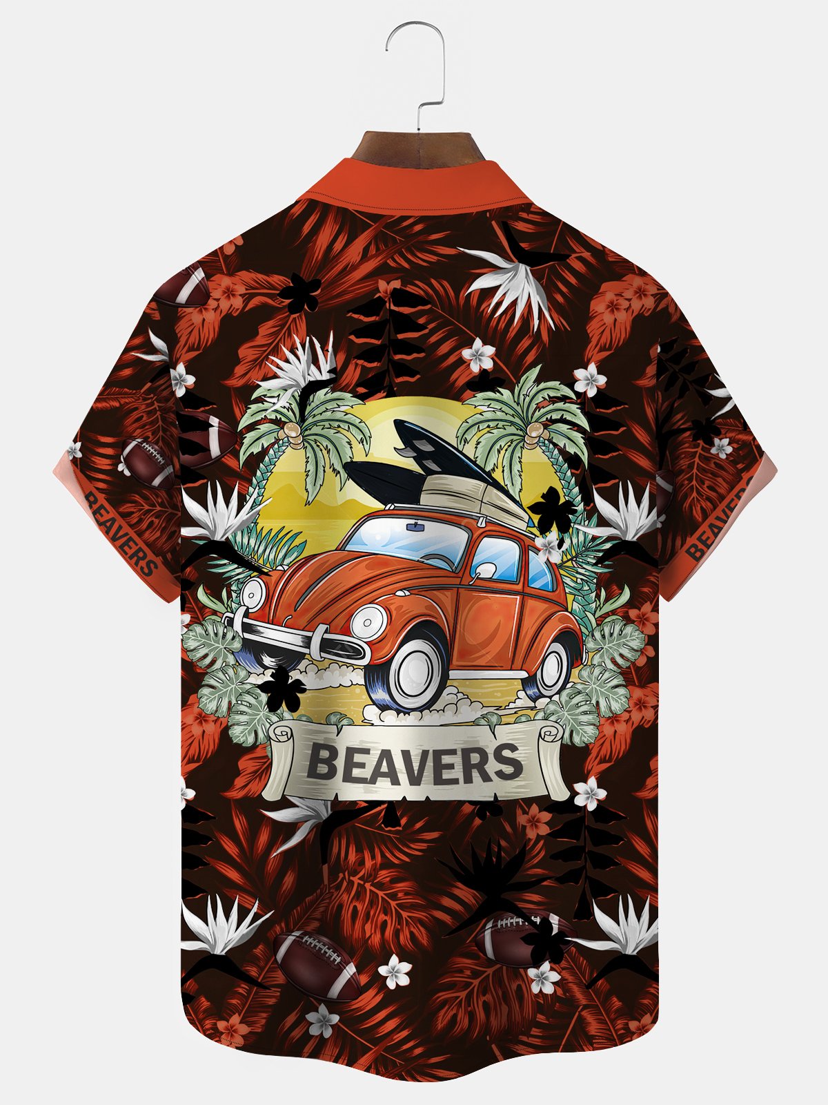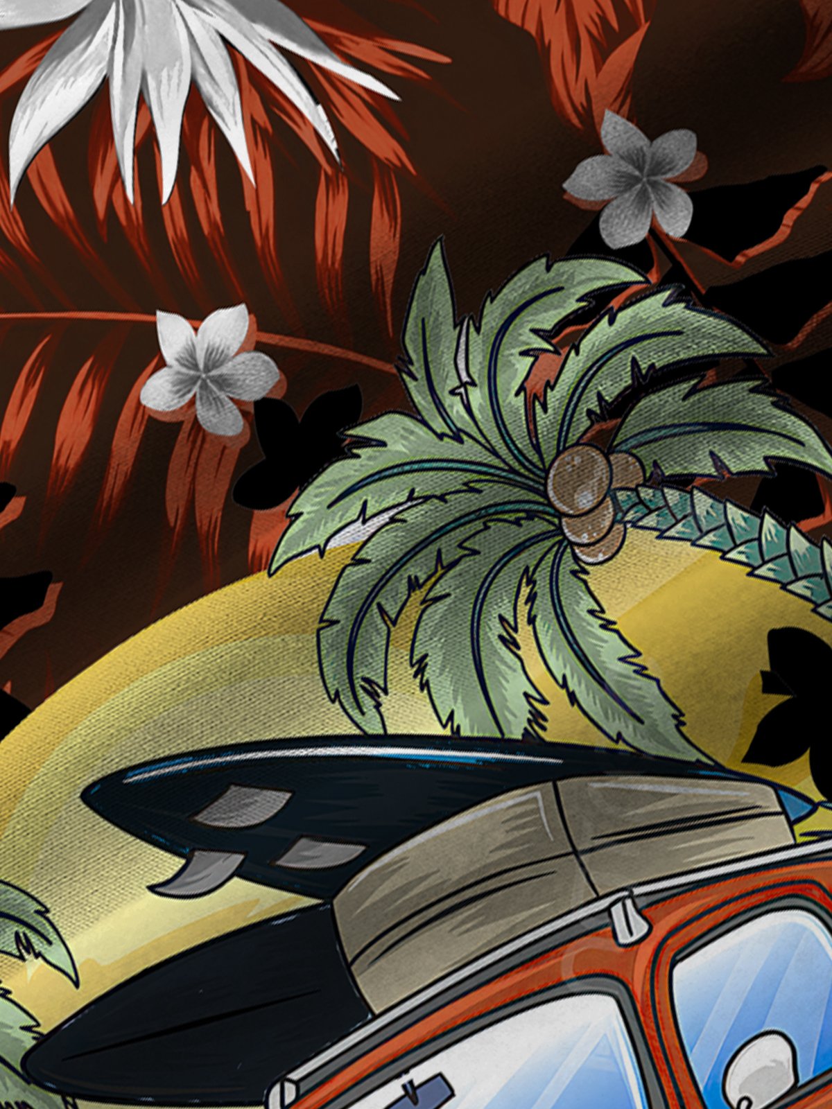Royaura Coconut Rugby Retro Car Print Men's Button Pocket Shirt