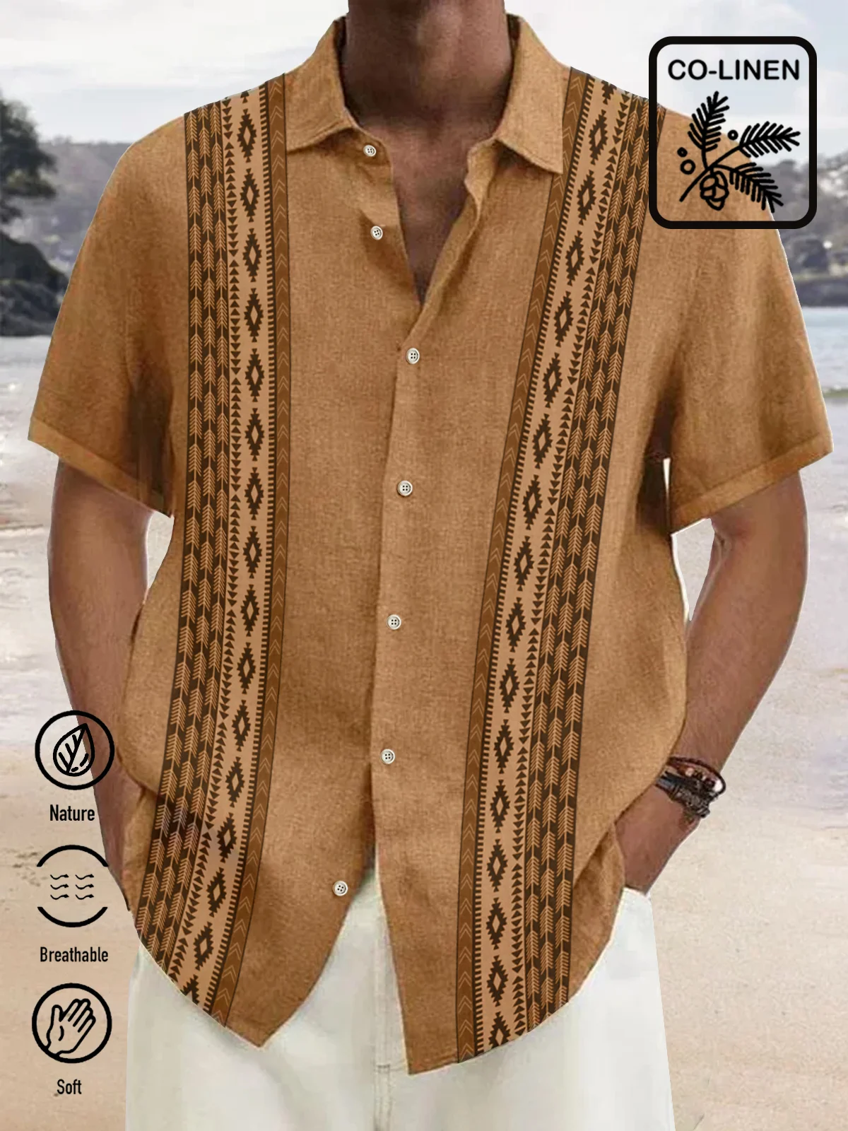 Royaura® Cotton Linen Ethnic Aztec Pattern Retro Shirt Oversized Vacation Aloha Shirt
