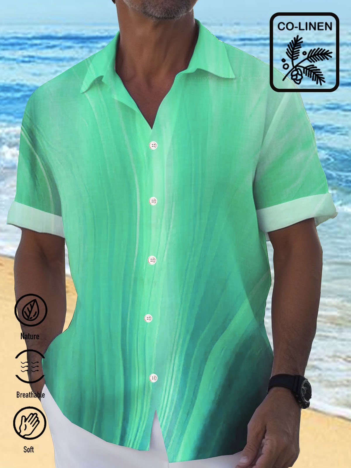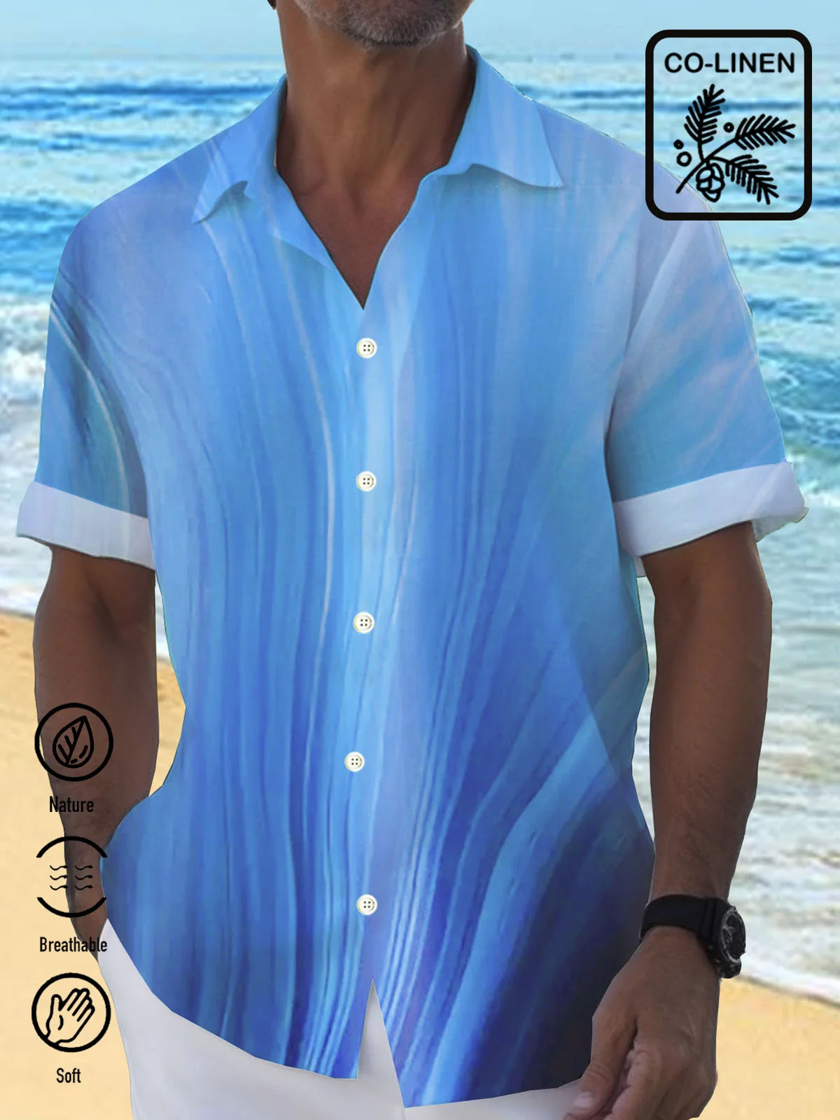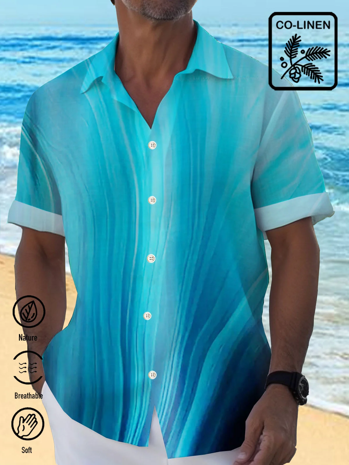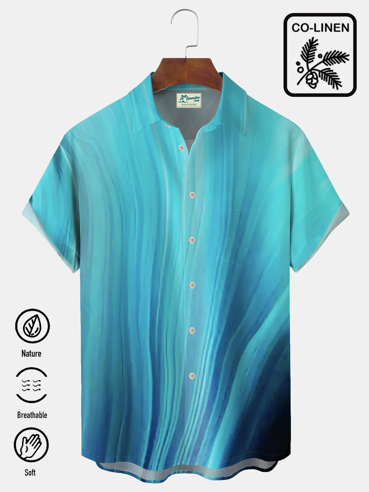 Royaura® Cotton Linen Natural Fiber Gradient Men's Hawaiian Button Down Shirt