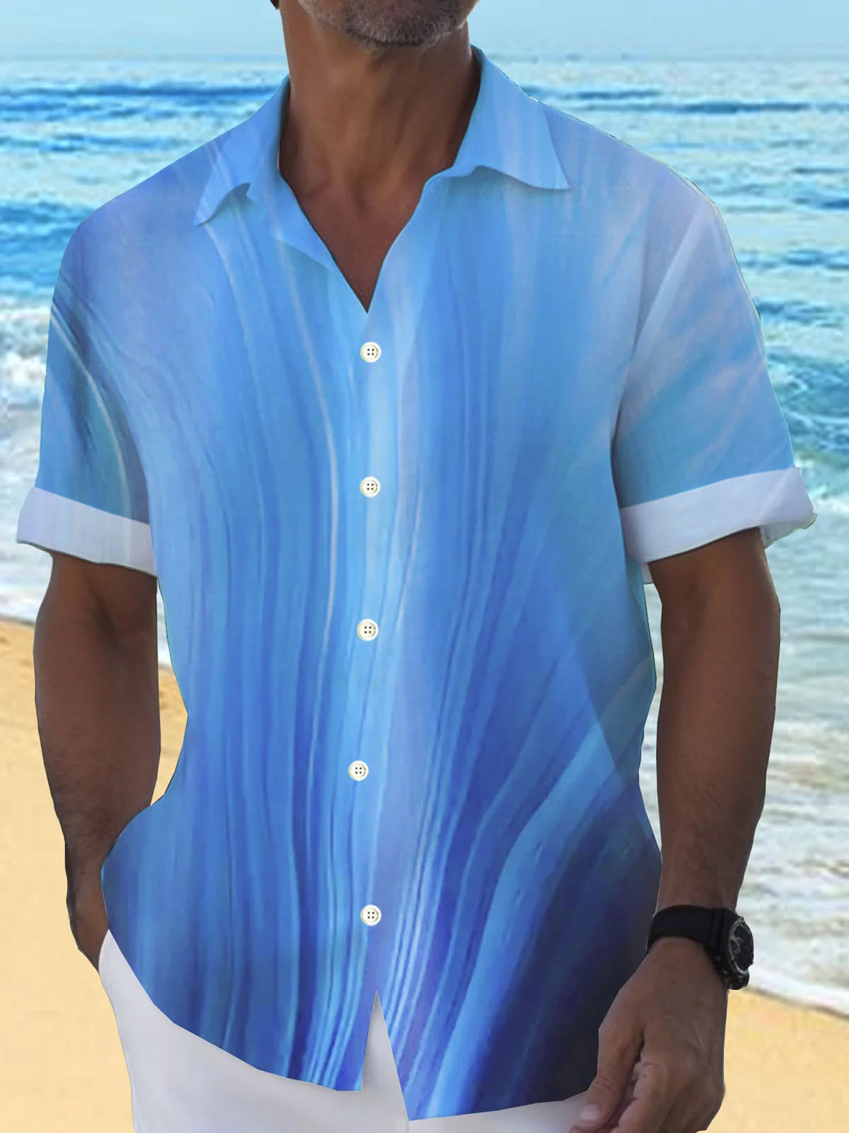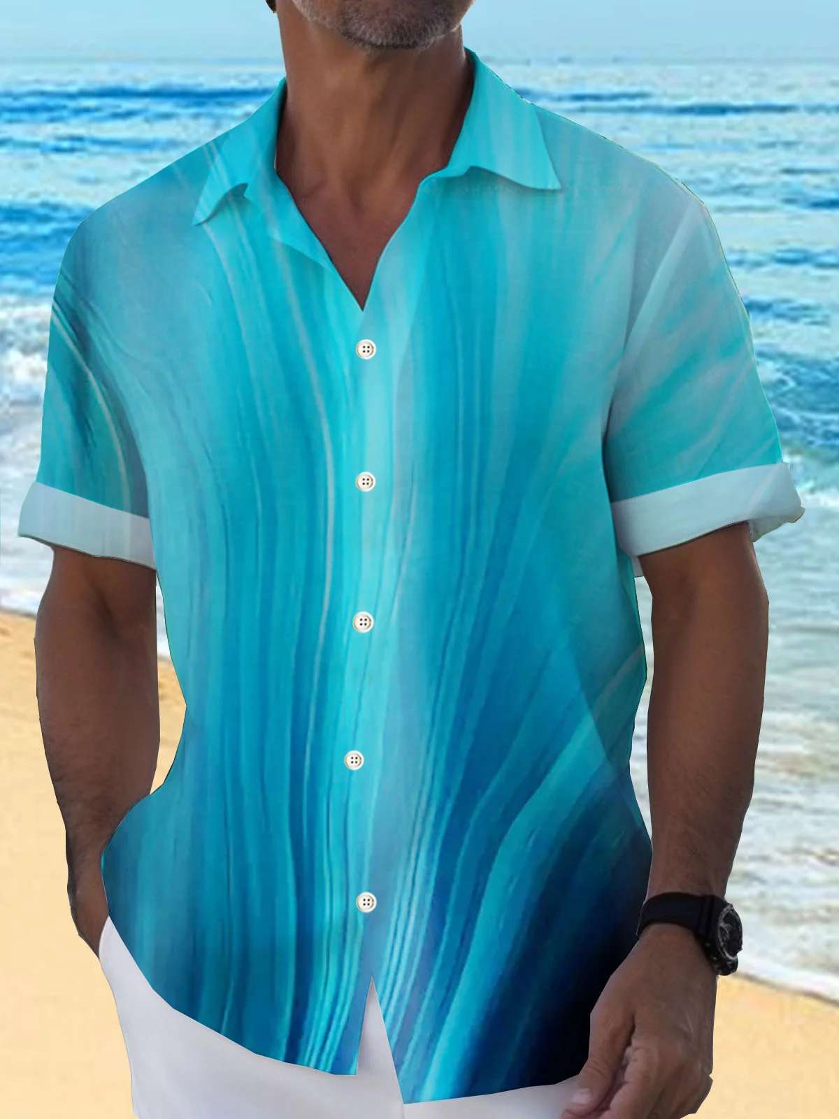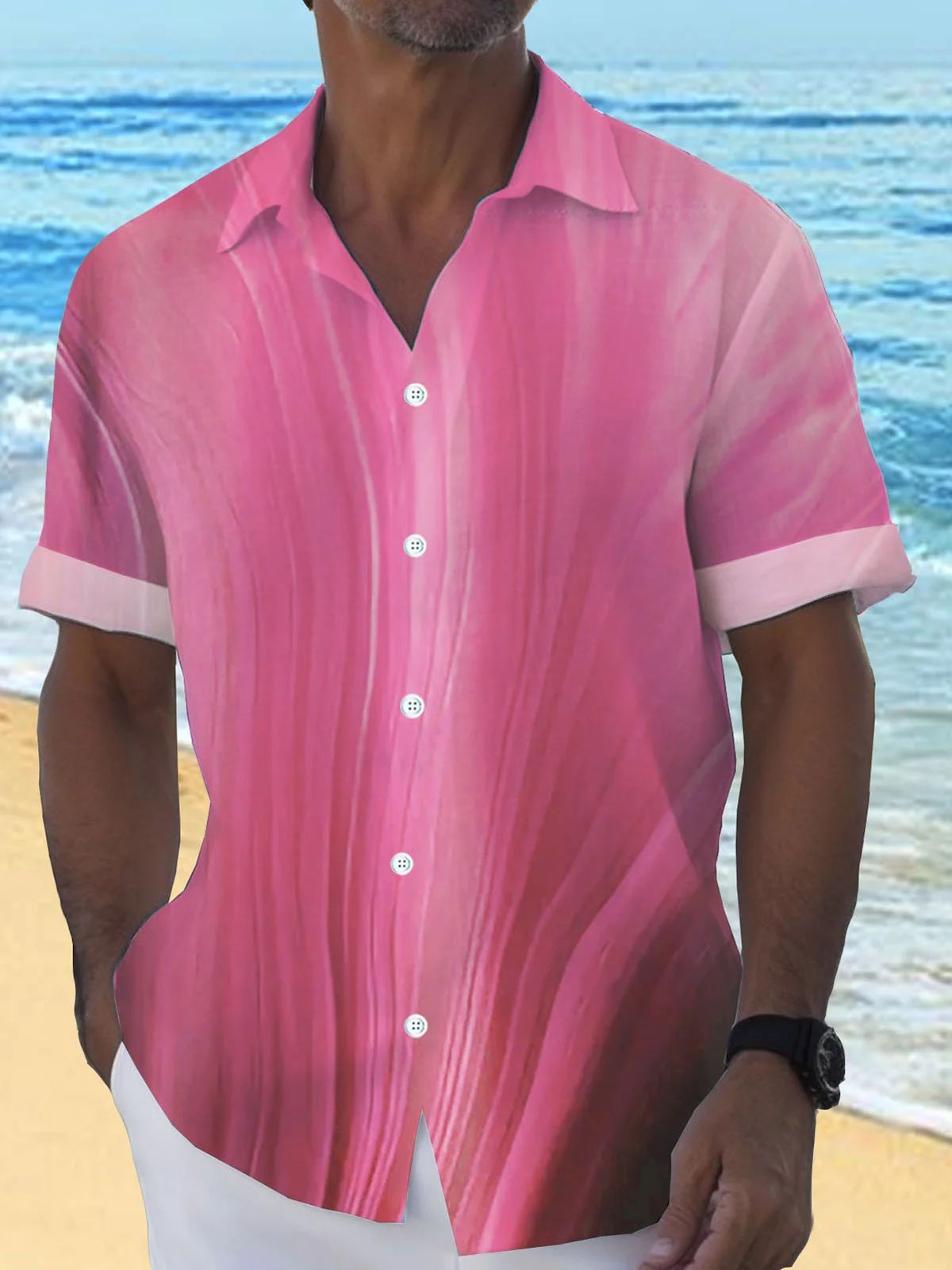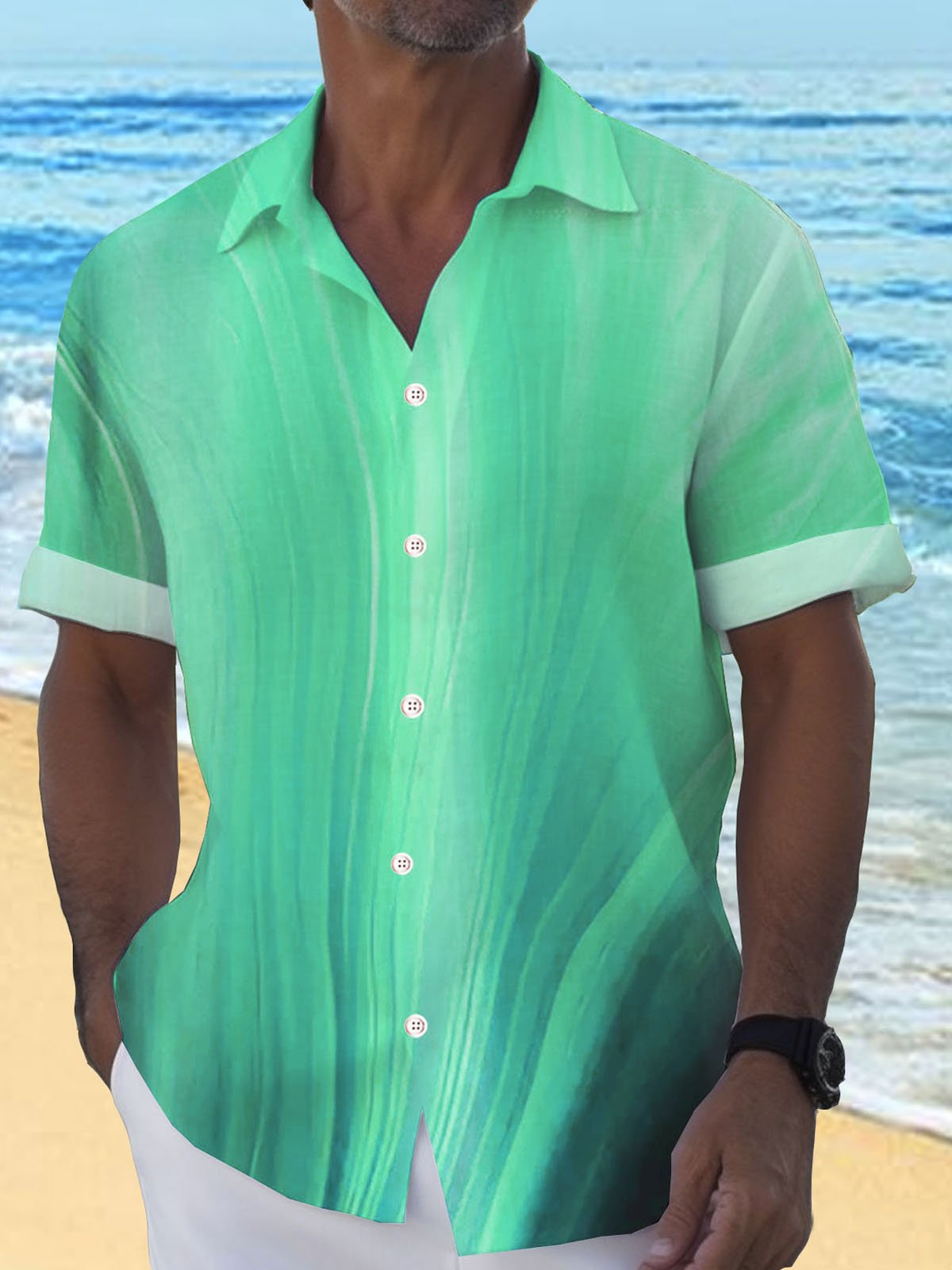 Royaura® Cotton Linen Natural Fiber Gradient Men's Hawaiian Button Down Shirt
