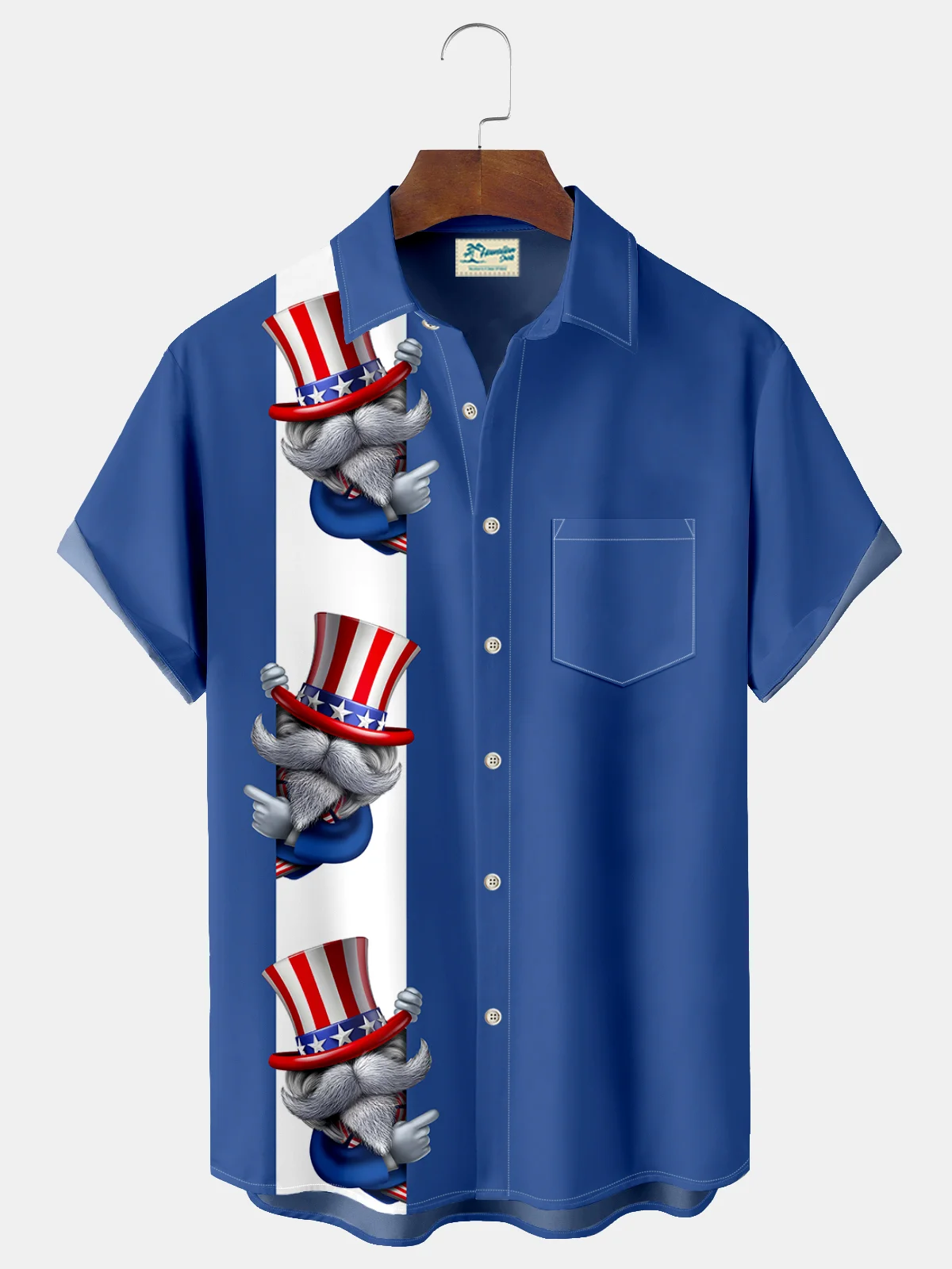 Royaura Flag Gnome Print  Men's Hawaiian Oversized Shirt with Pockets