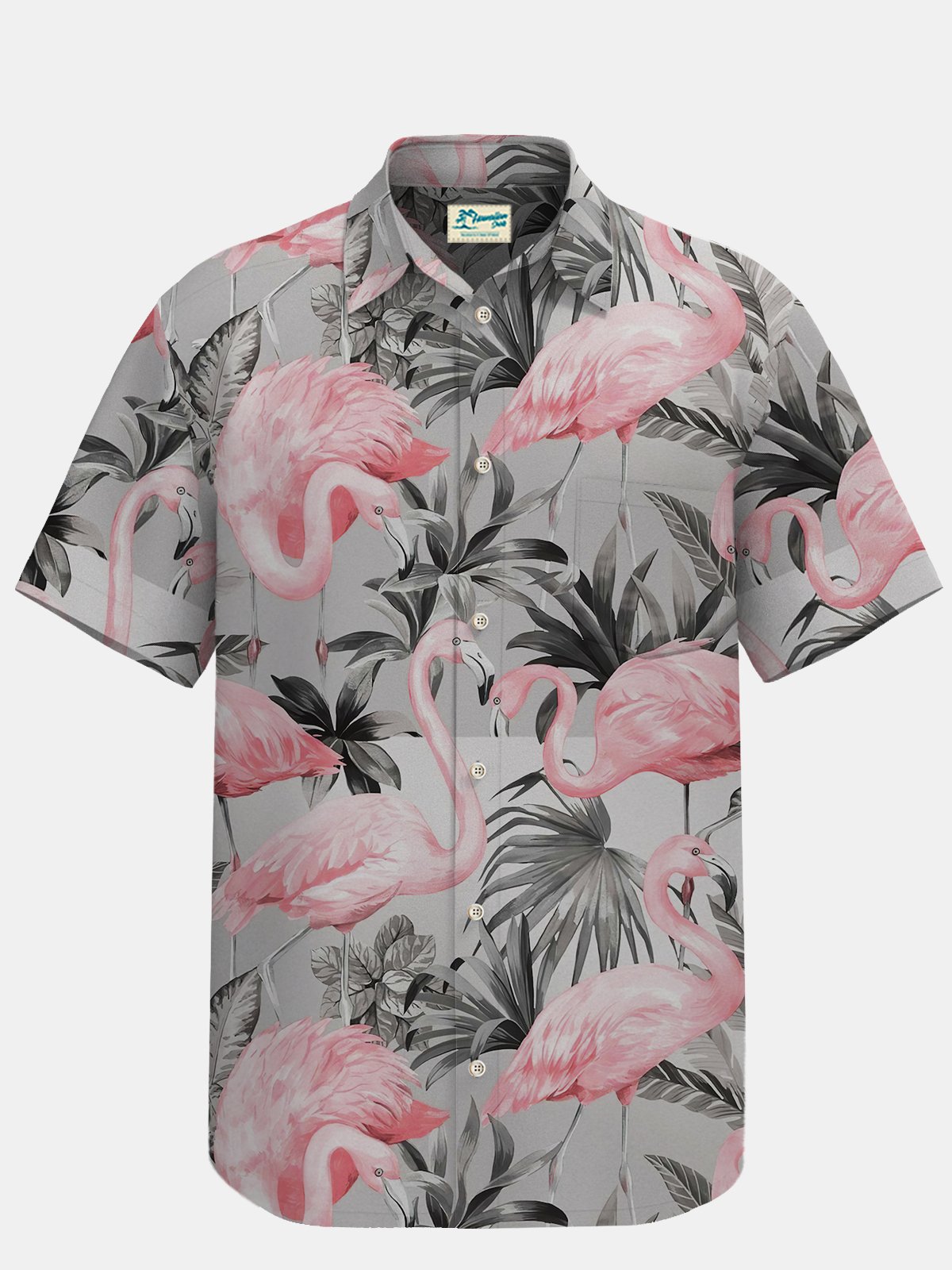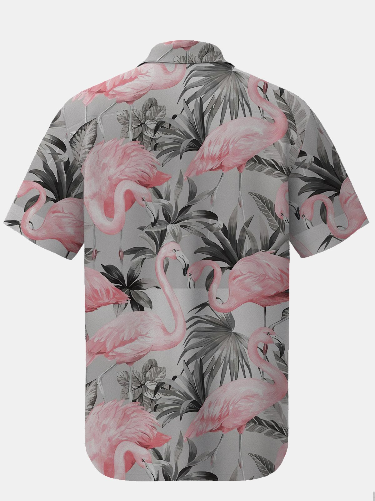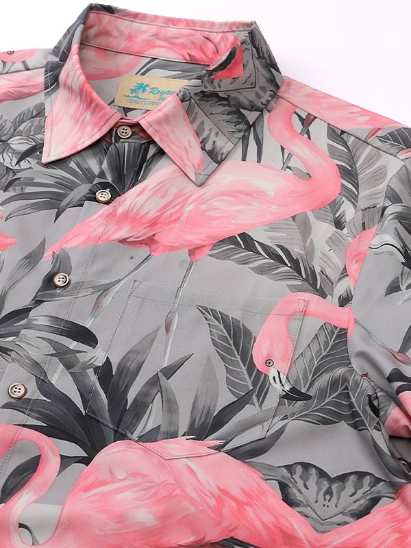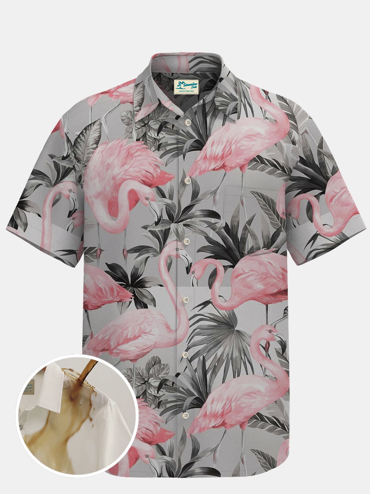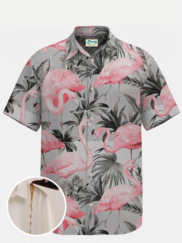 Royaura Waterproof Stain-Resistant Flamingo Hawaiian Shirts Hydrophobic Anti-Dirty Big & Tall