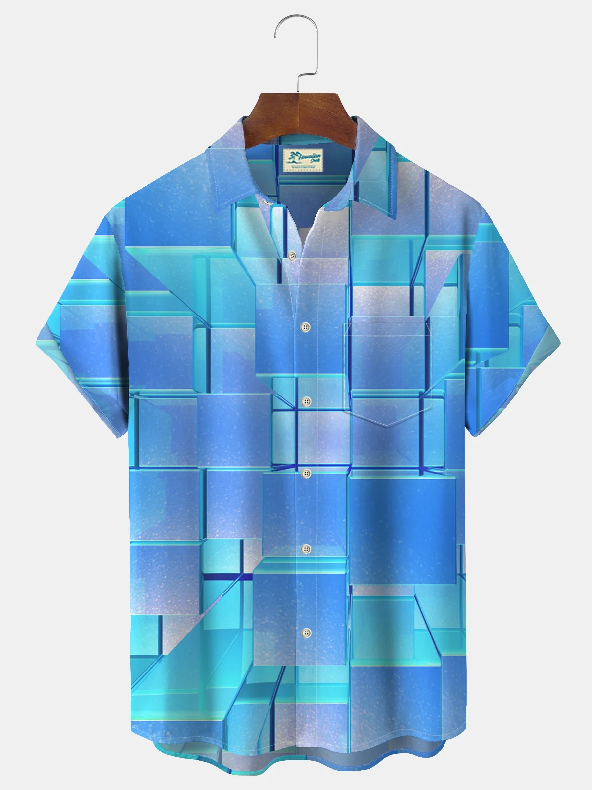 Royaura Geometric Gradient Print Beach Men's Hawaiian Oversized Shirt with Pocket