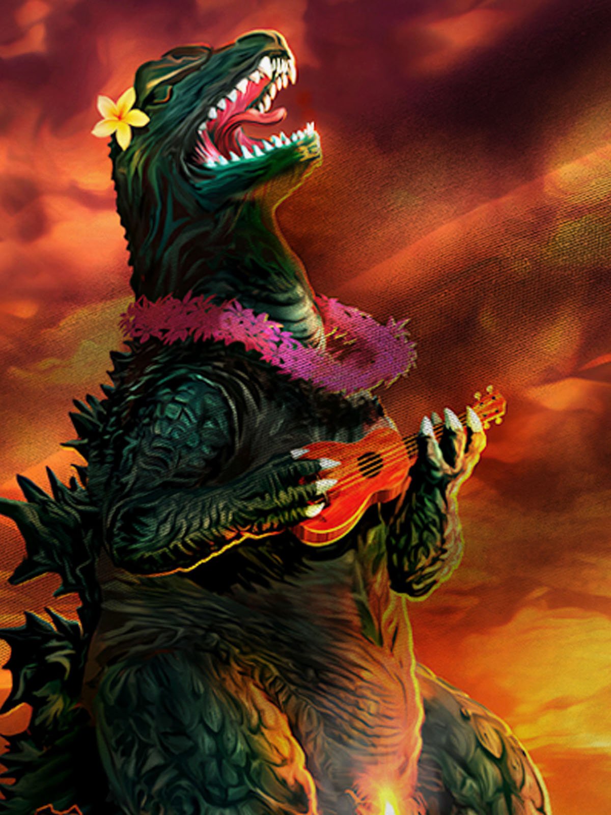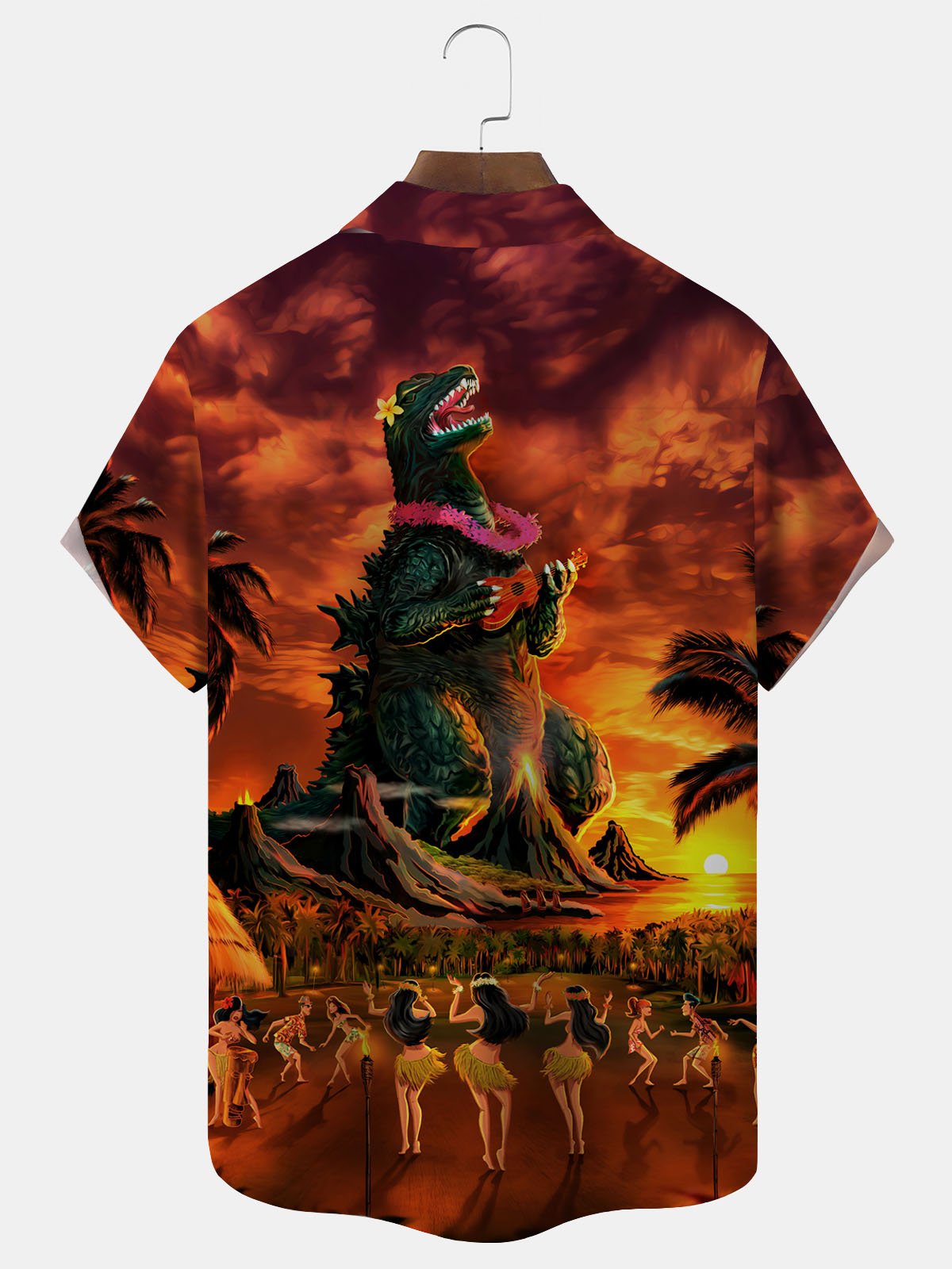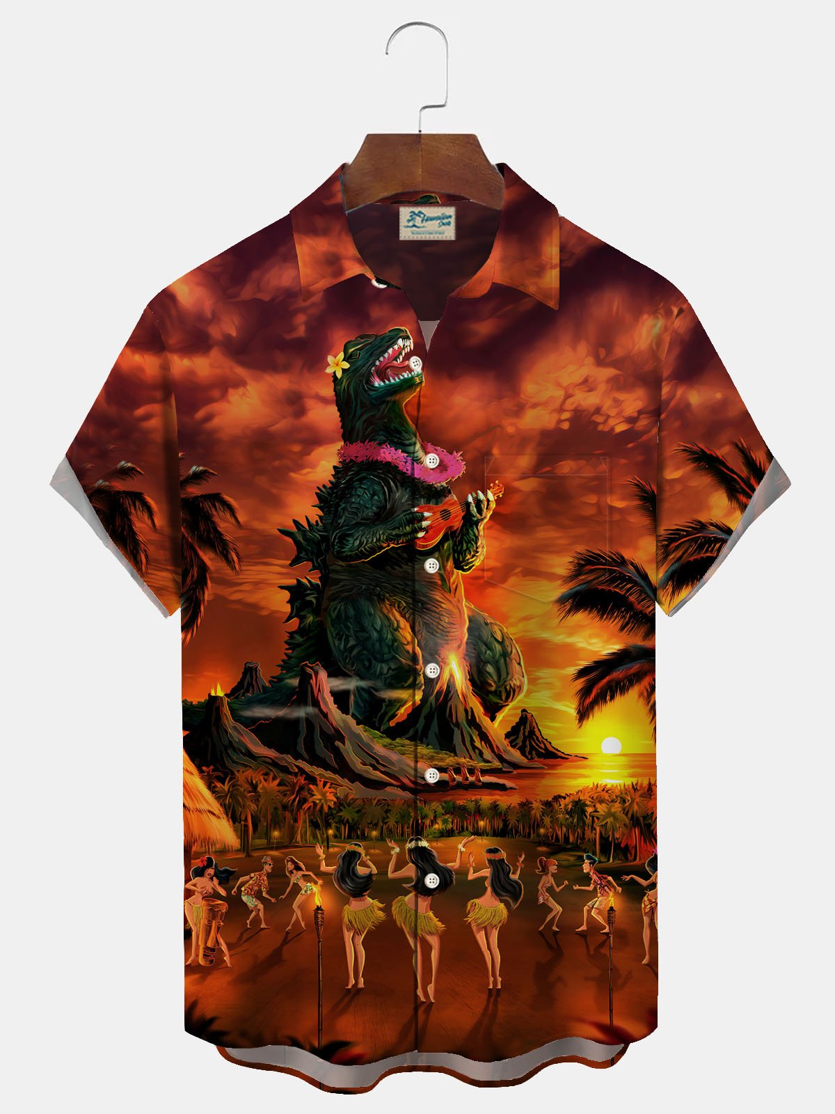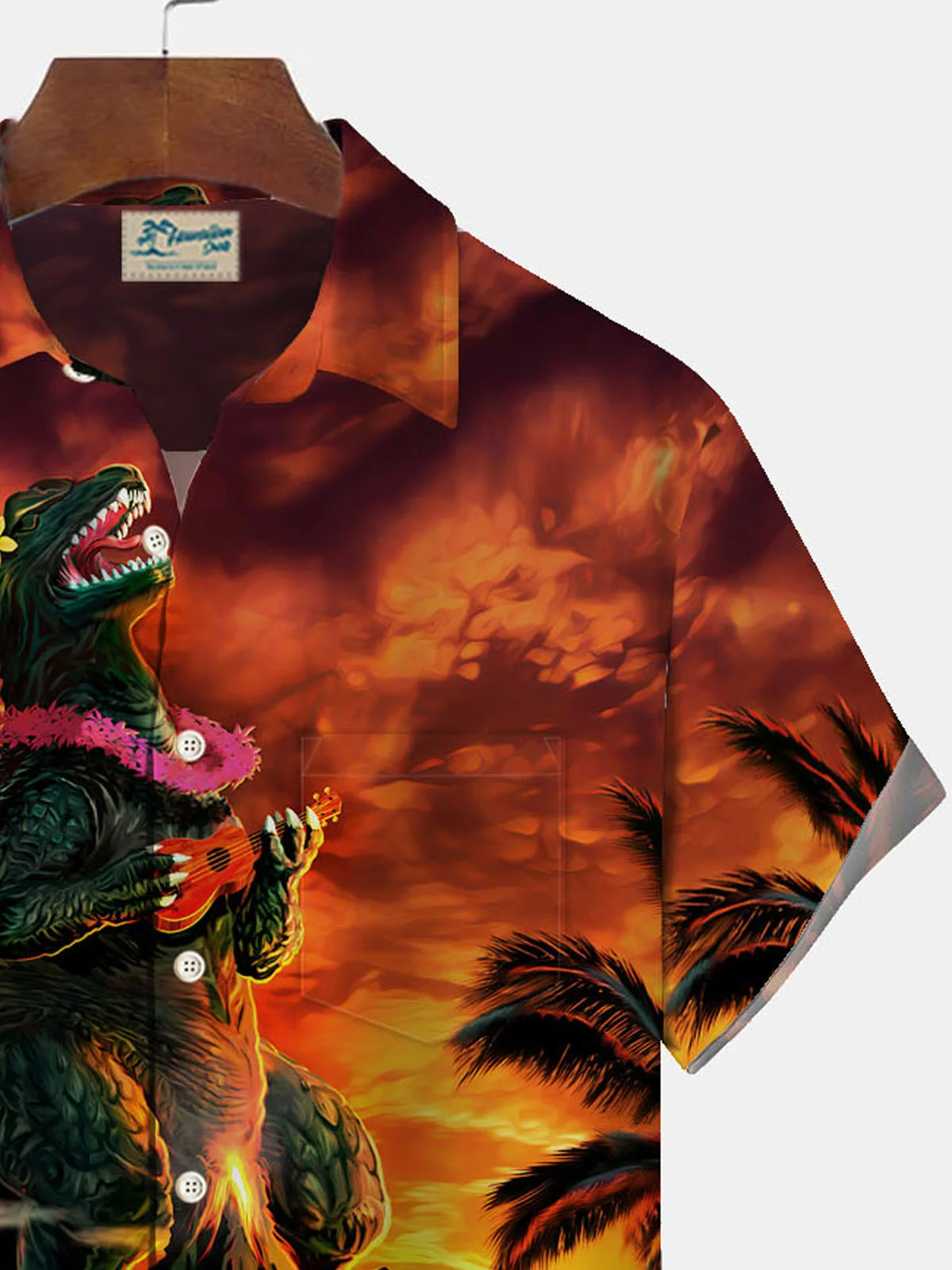 Royaura Hawaiian Monster Print Men's Button Down Pocket Shirt