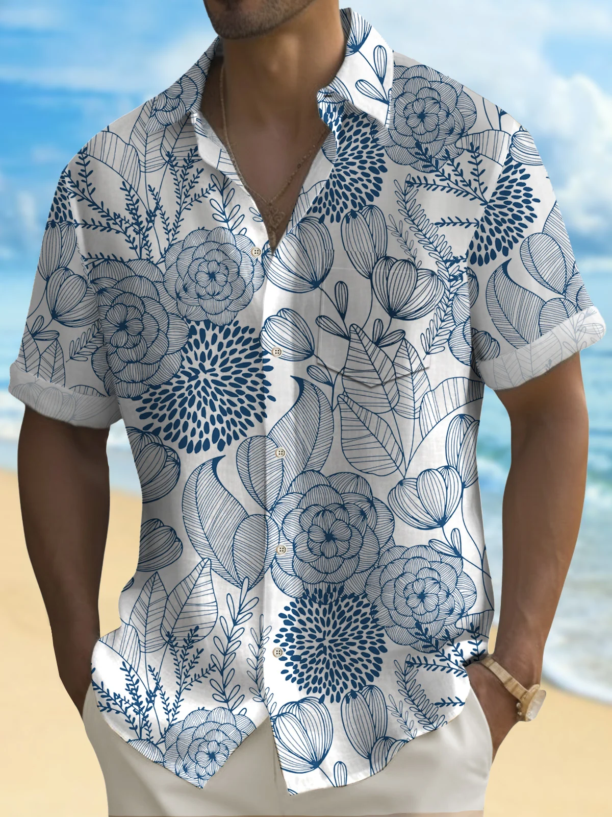 Royaura Hawaiian Leaf Print Men's Button Pocket Shirt