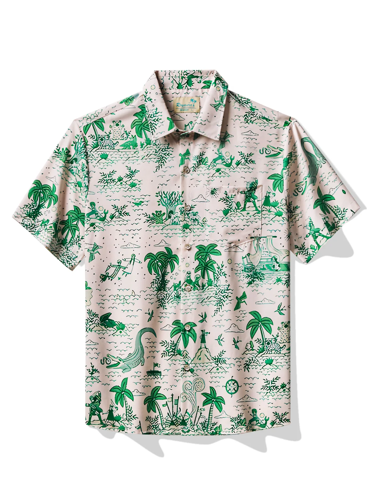 Royaura Hawaiian Plant Leaf Print Men's Button Pocket Short Sleeve Shirt