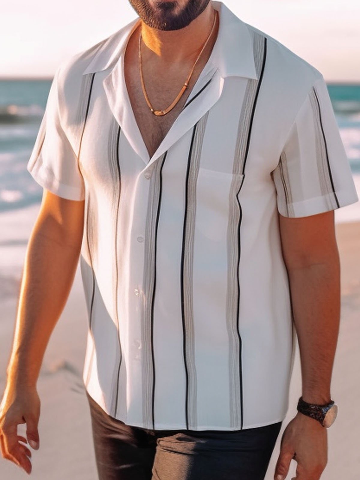 Royaura Hawaiian Stripe Print Men's Button Pocket Shirt