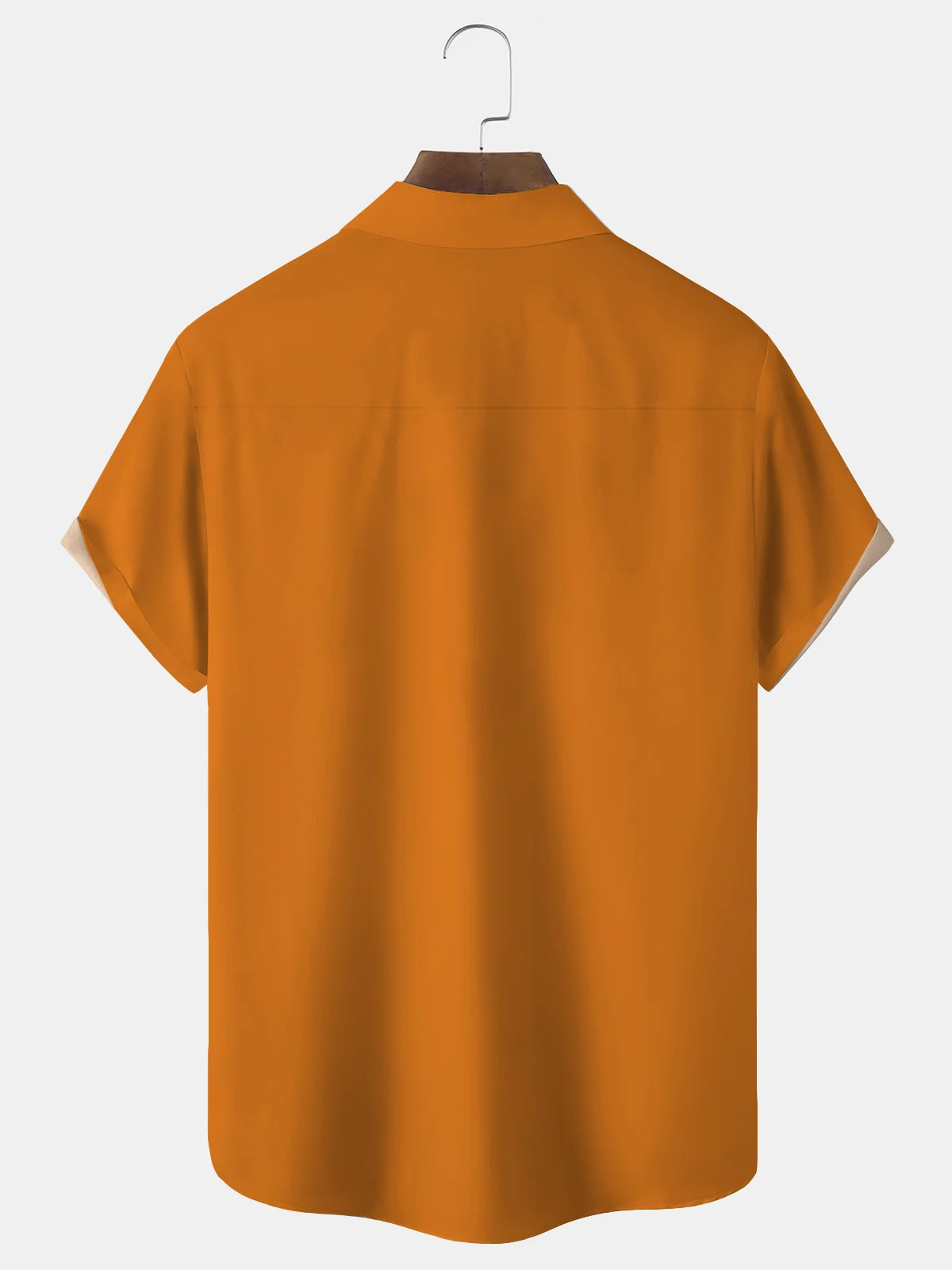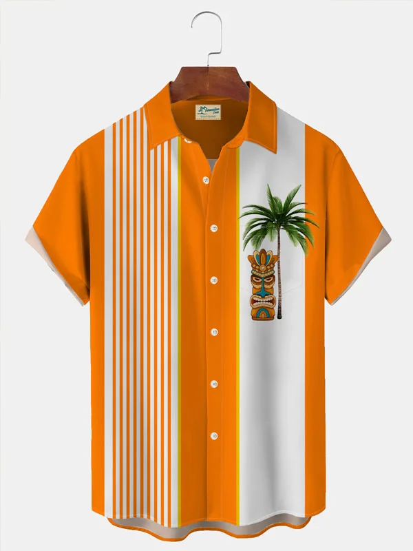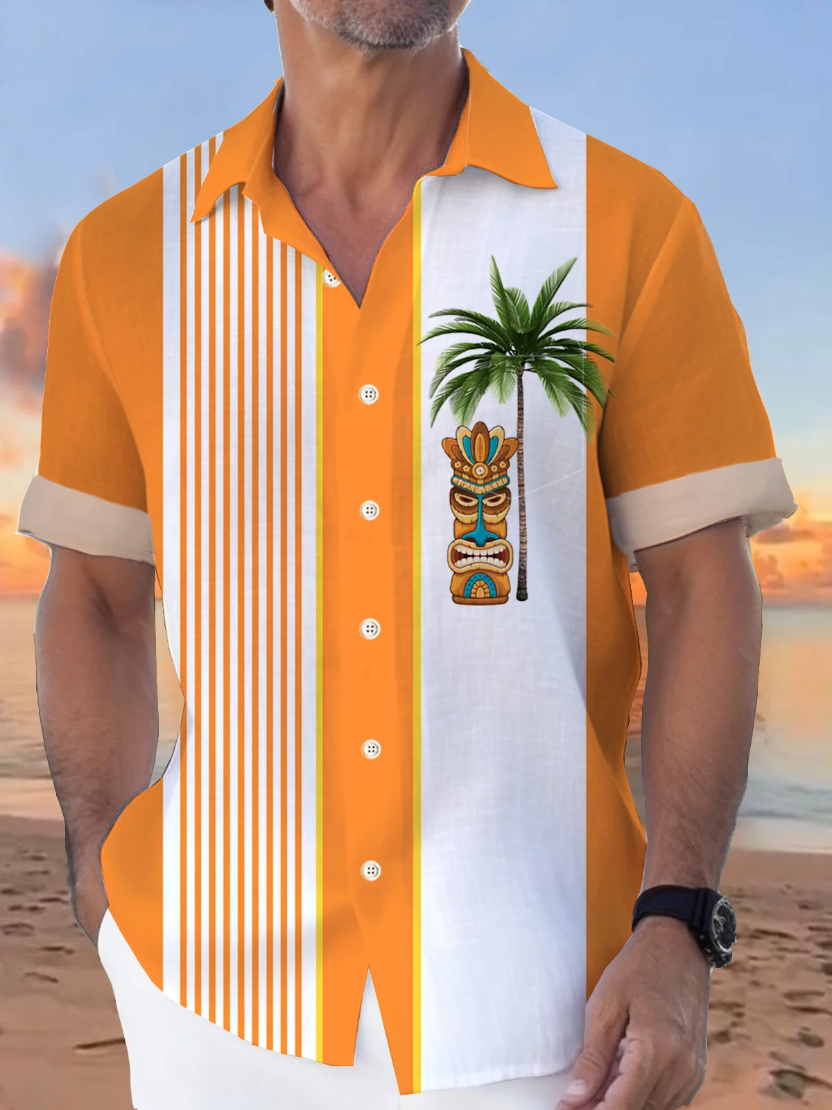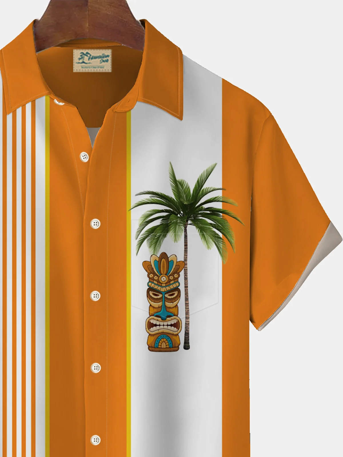 Royaura®  Hawaiian Tiki Coconut Tree Print Men's Button Pocket Short Sleeve Shirt