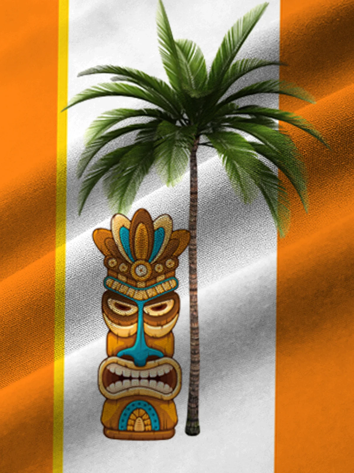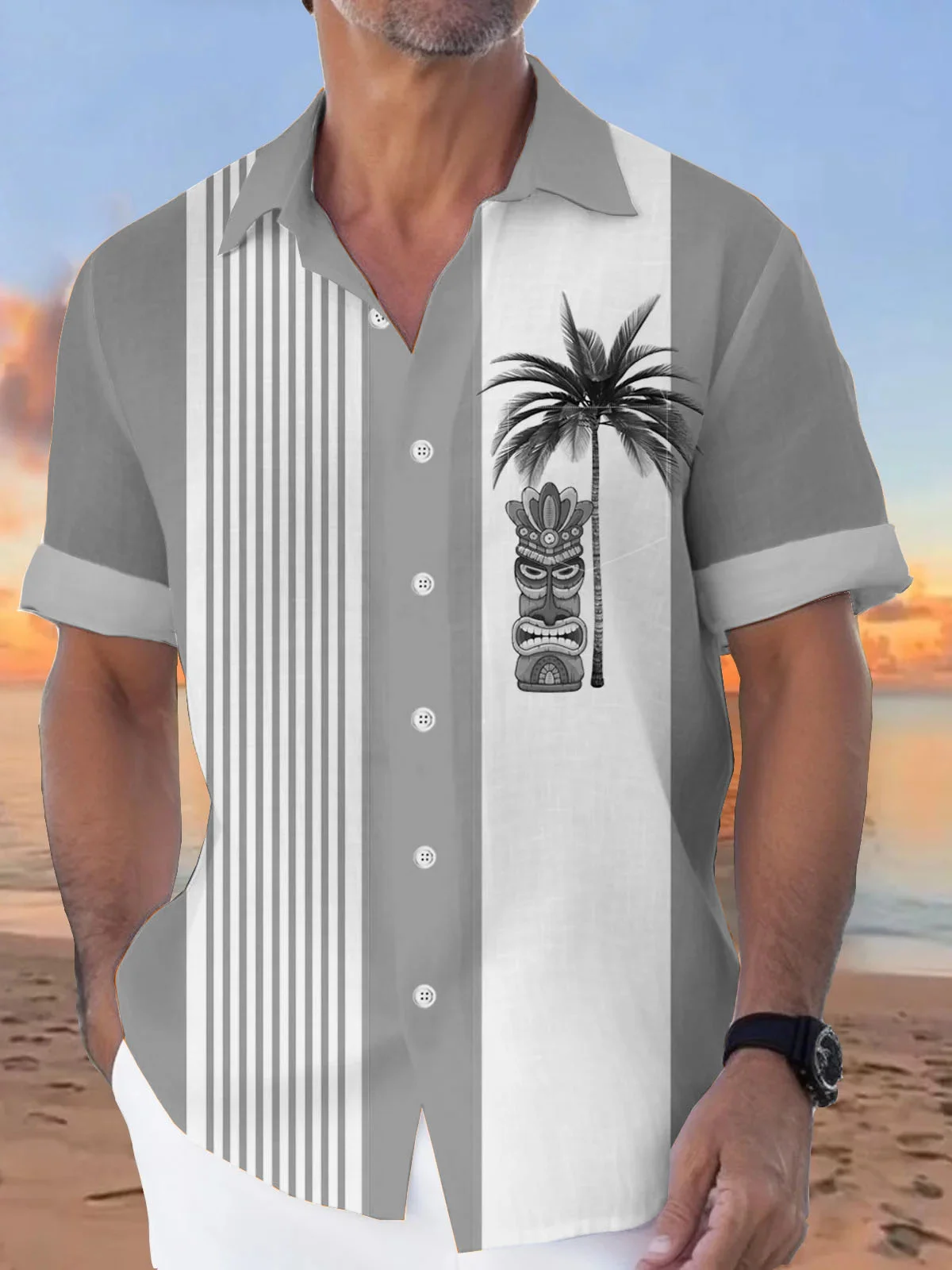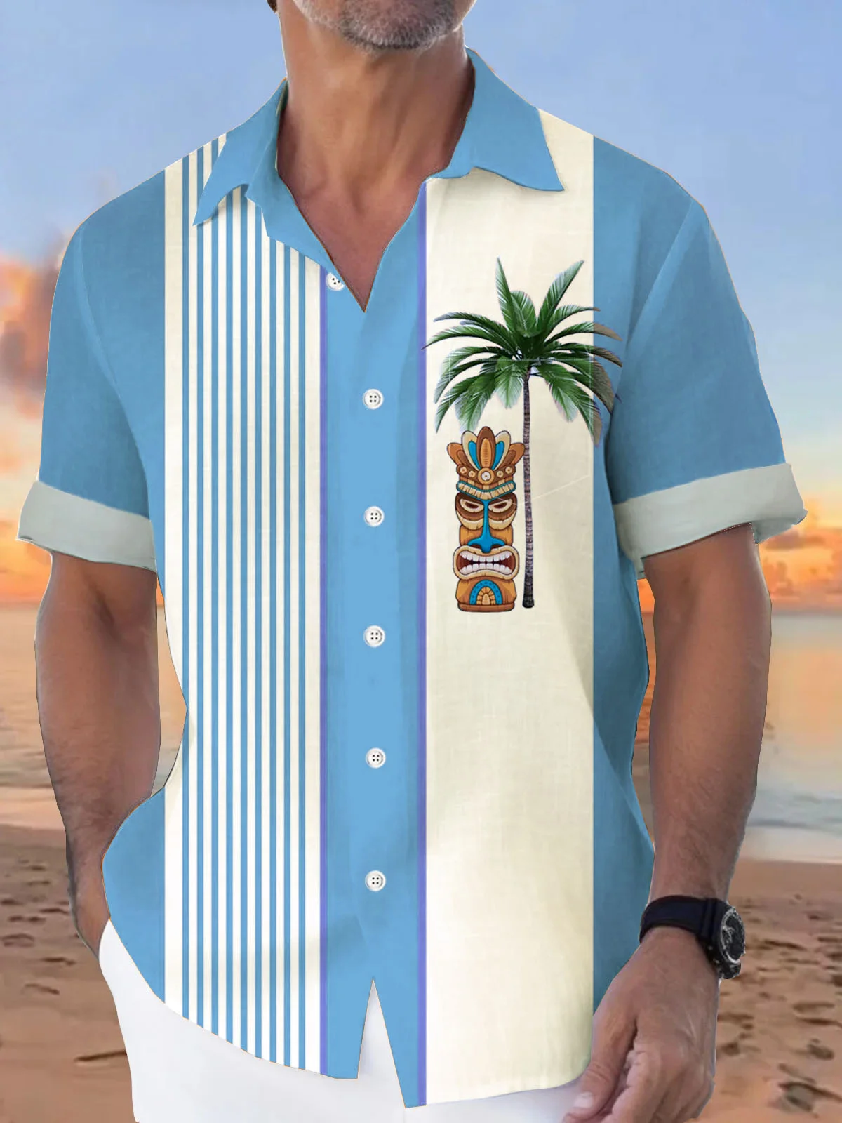 Royaura® Hawaiian Tiki Coconut Tree Print Men's Button Pocket Short Sleeve Shirt