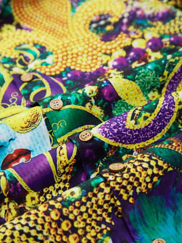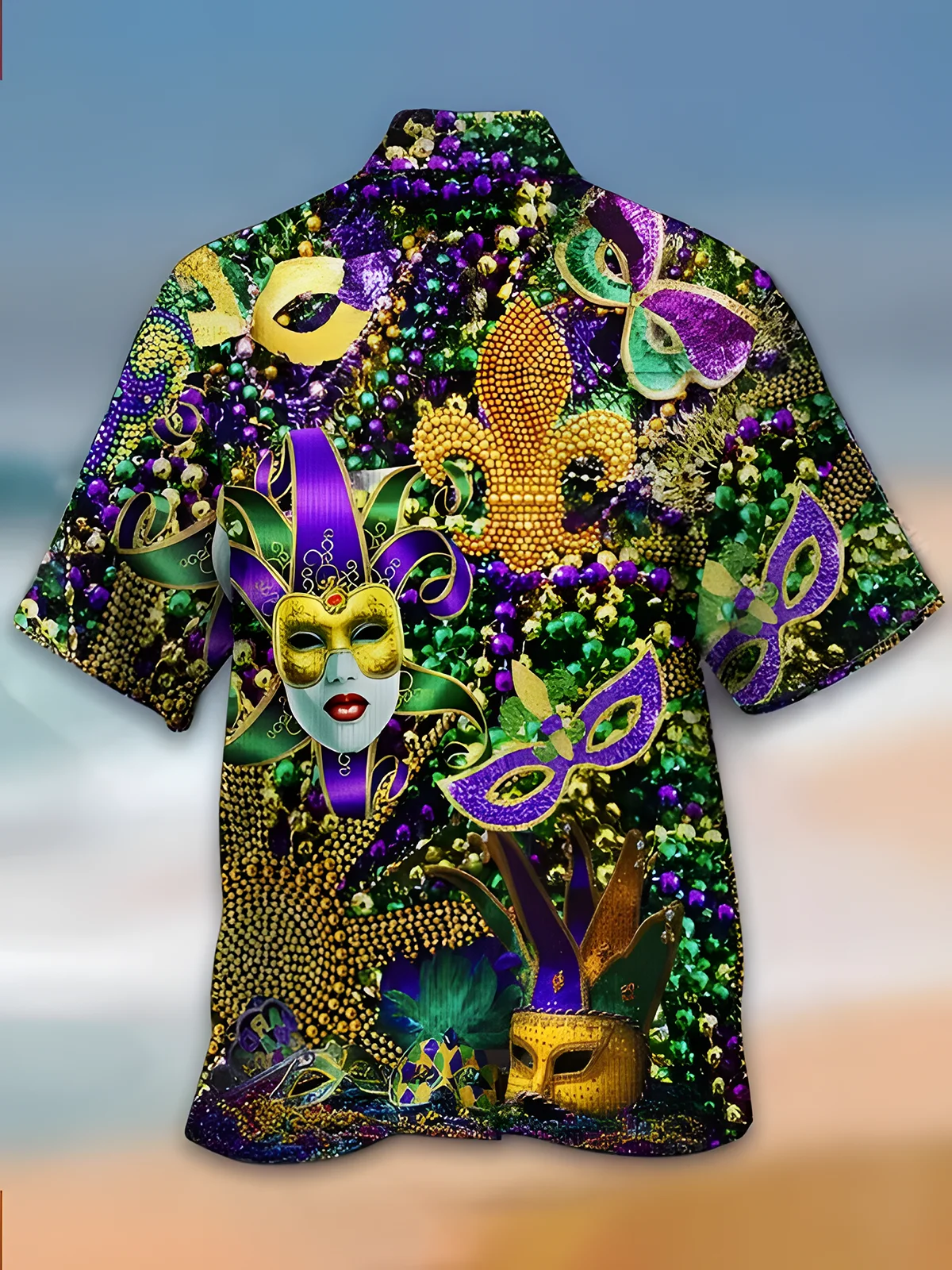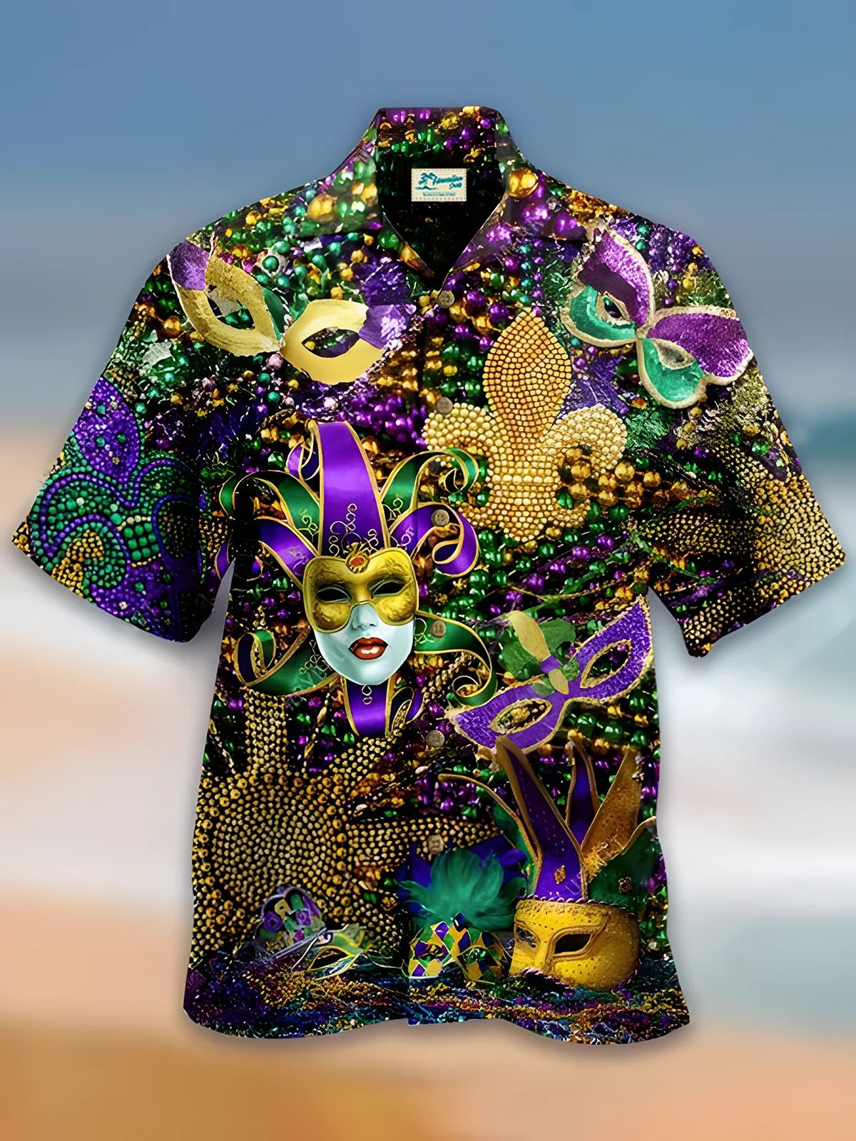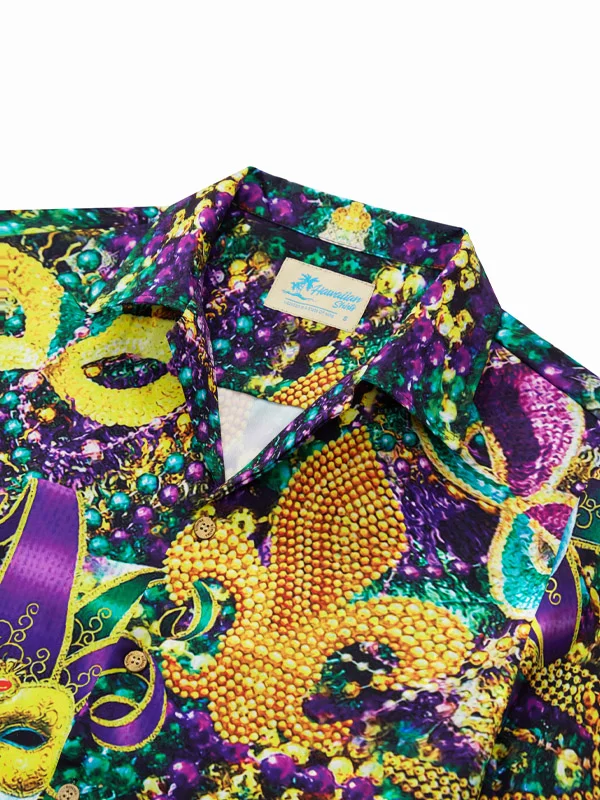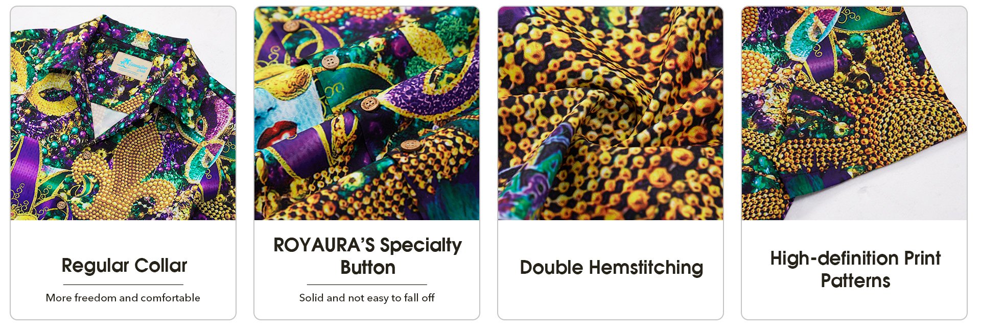 Royaura Mardi Gras Carnival Men's Hawaiian Shirts Stretch Plus Size Aloha Shirts