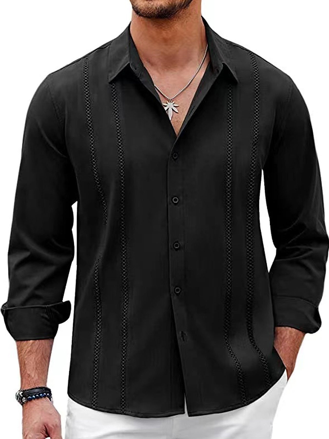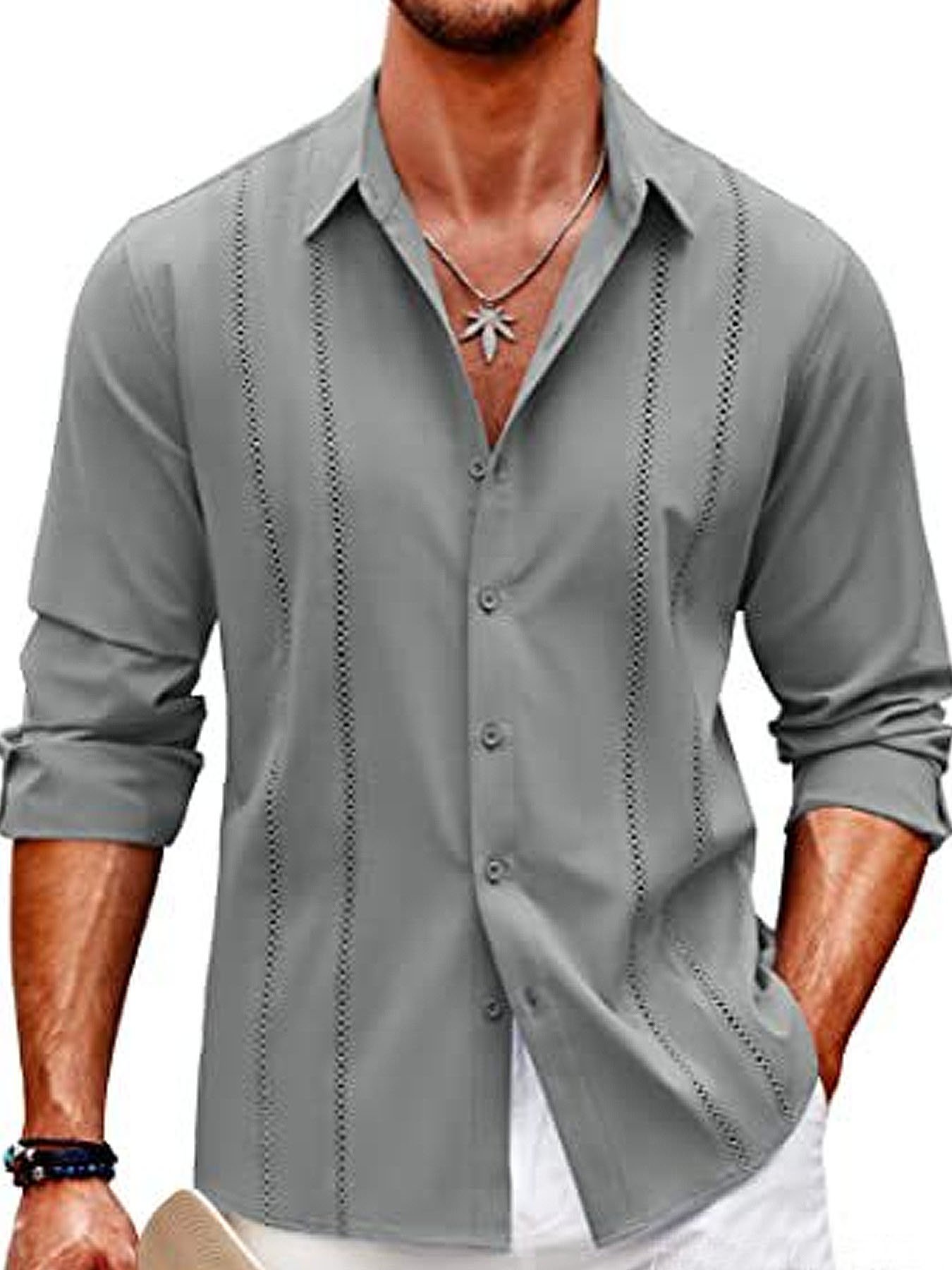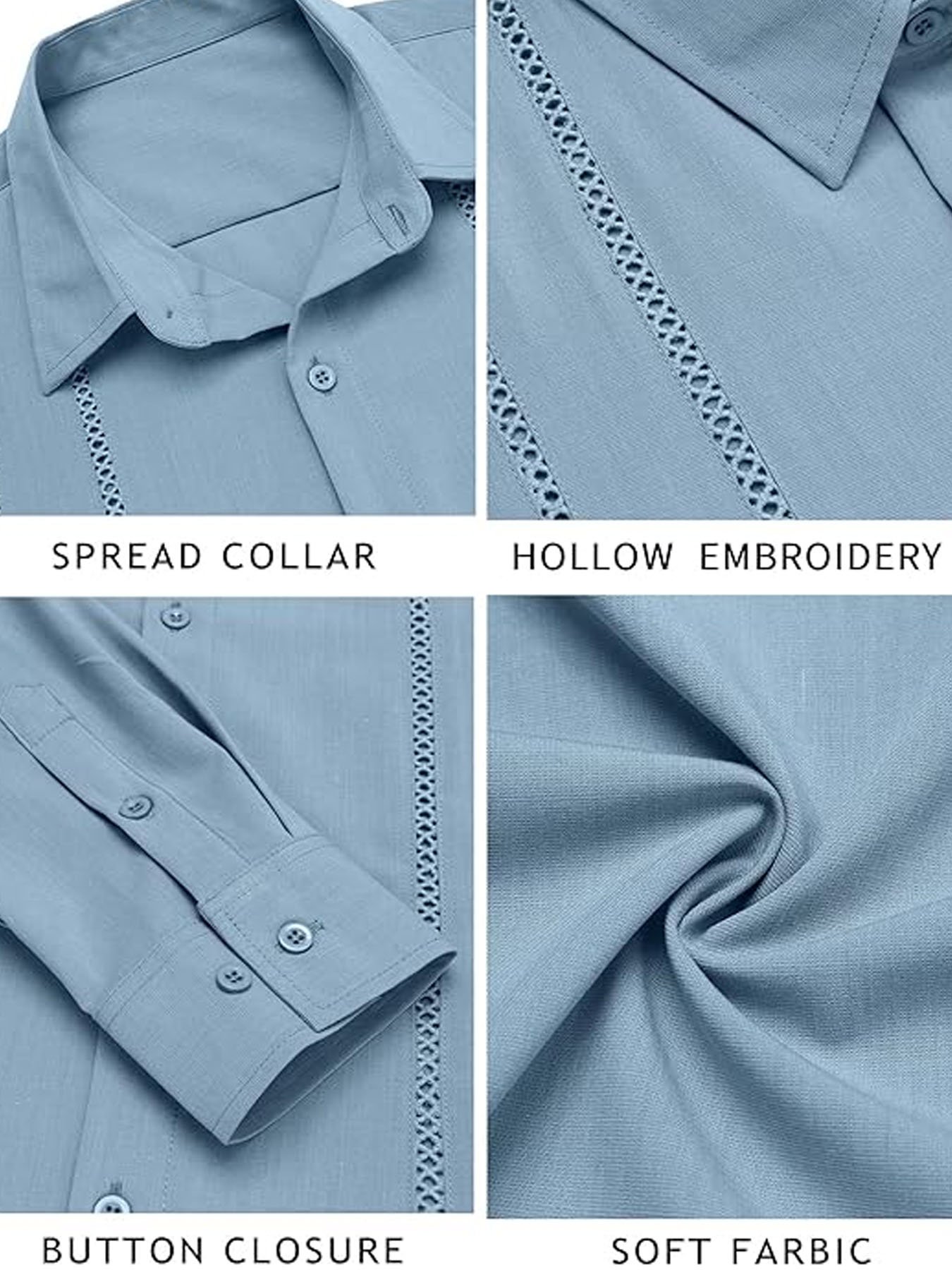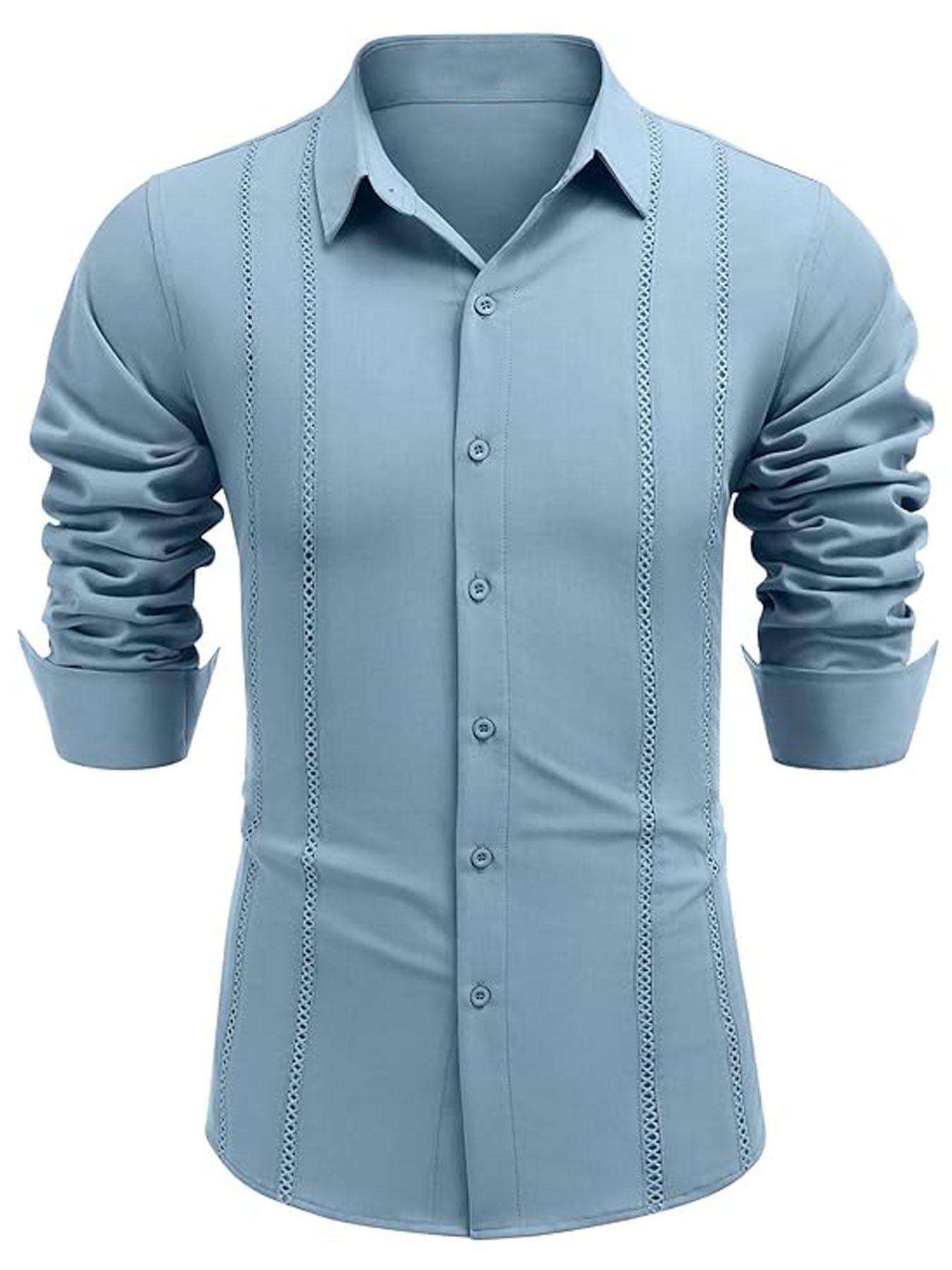 Royaura Lace Basic Casual Men's Button Pocket Long Sleeve Shirt