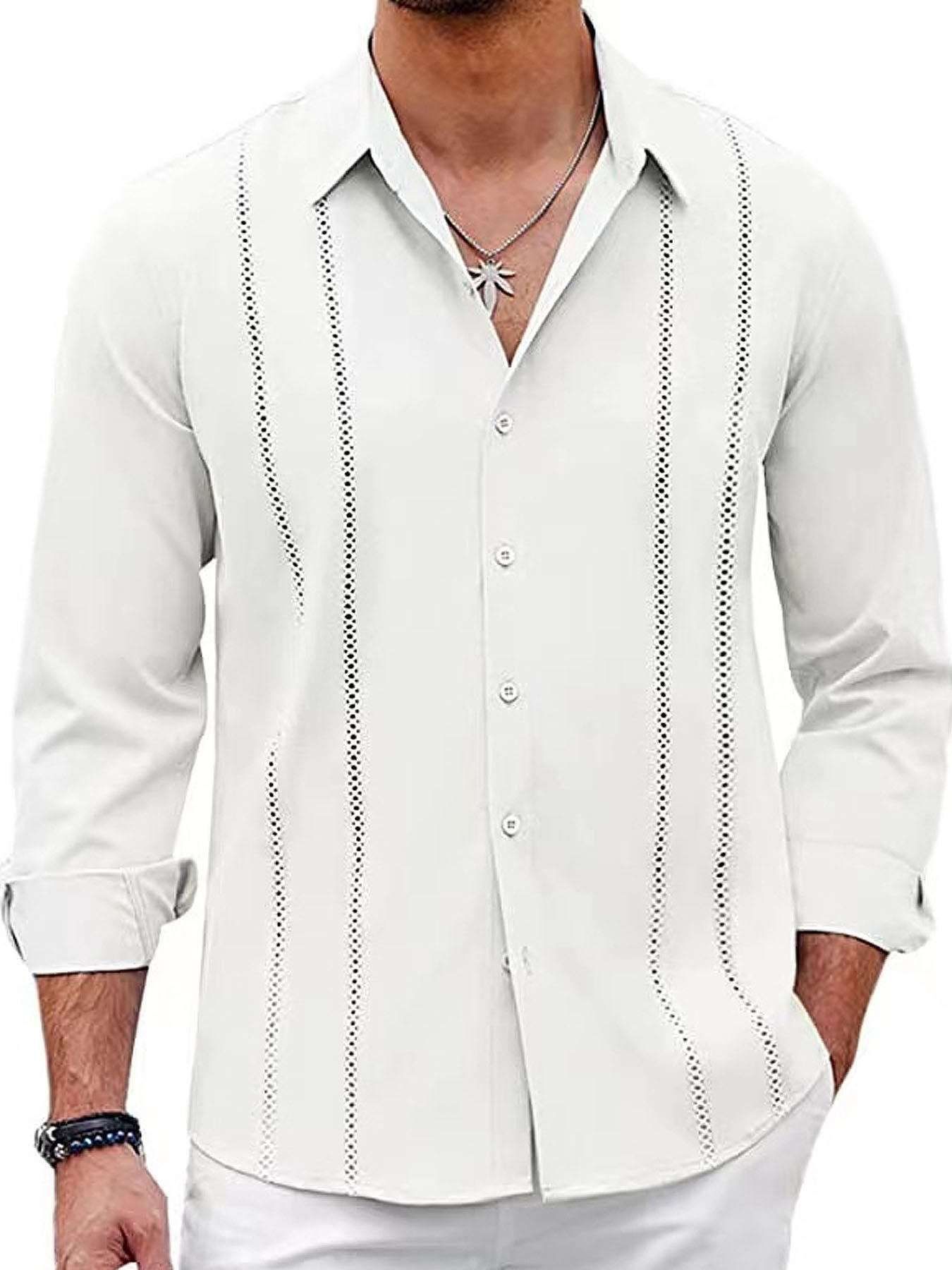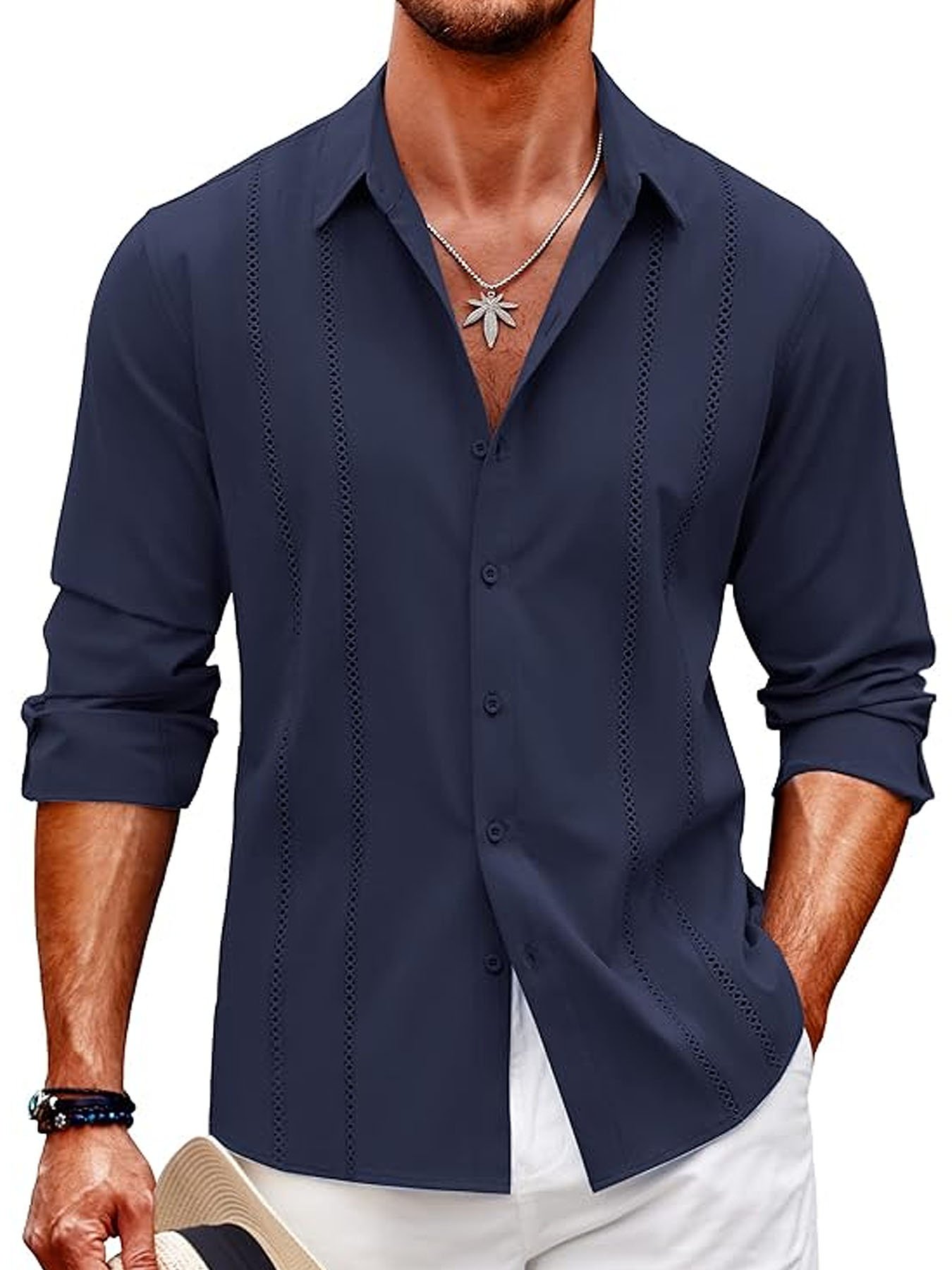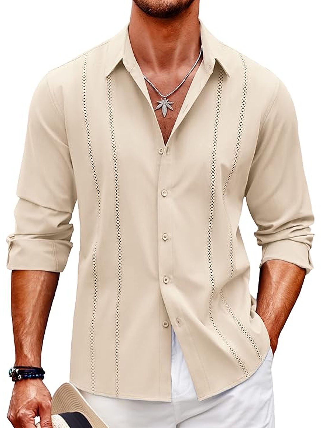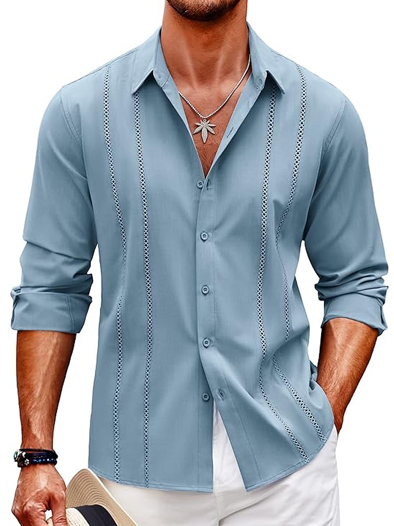 Royaura Lace Basic Casual Men's Button Pocket Long Sleeve Shirt