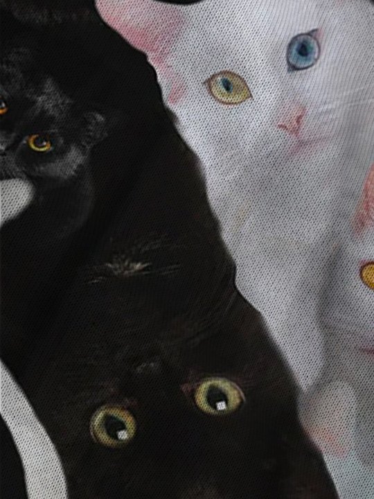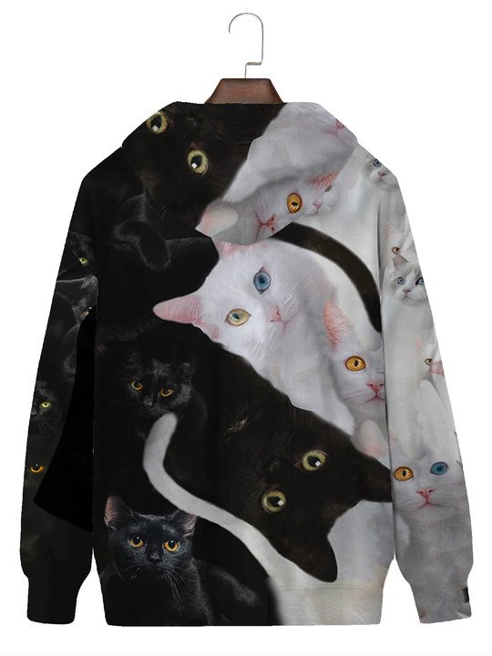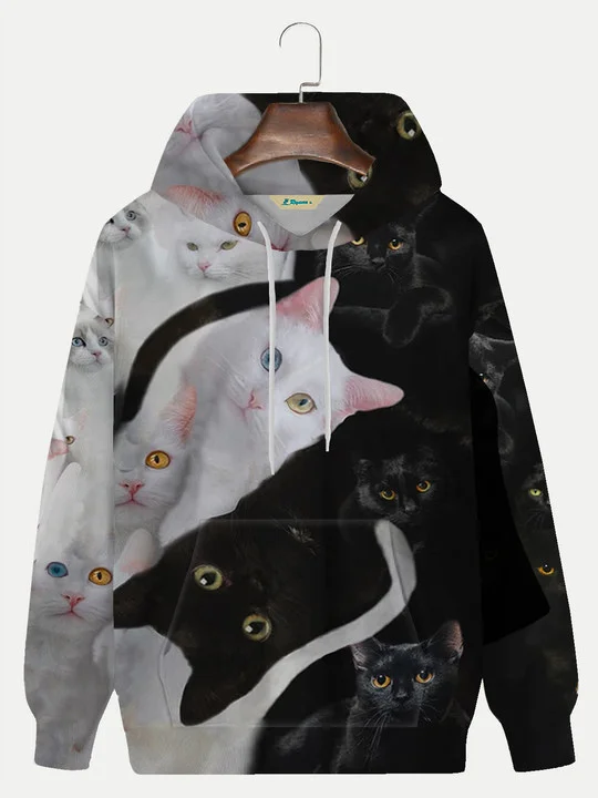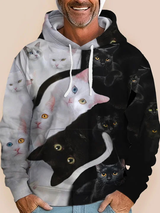 Royaura Men's Cat Print Drawstring Hooded Sweatshirt