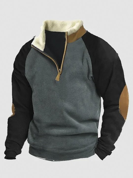 Royaura Men's Fleece Stand Collar Outdoor Warm Oversized Sweatshirt for Camping