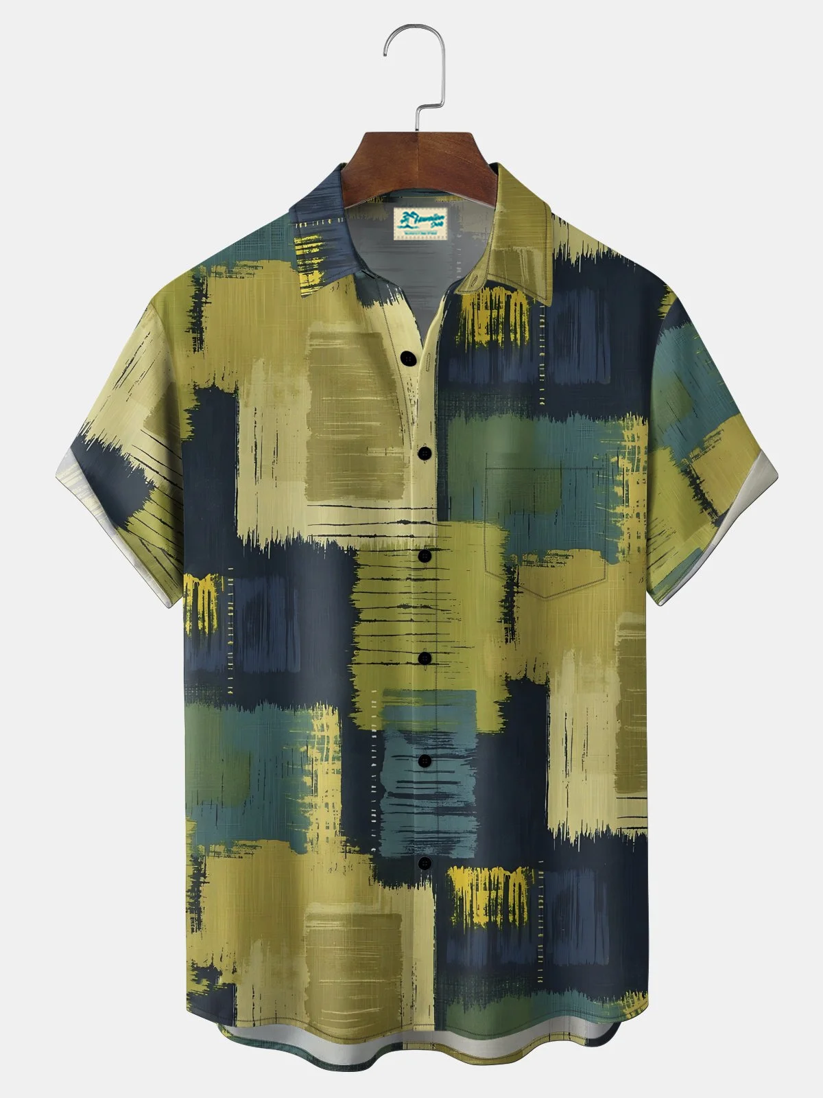 Royaura Men's Retro 60s Modern Abstract Brushstroke Geometric Grid Print Casual Button-Down Short-Sleeve Shirt Big & Tall