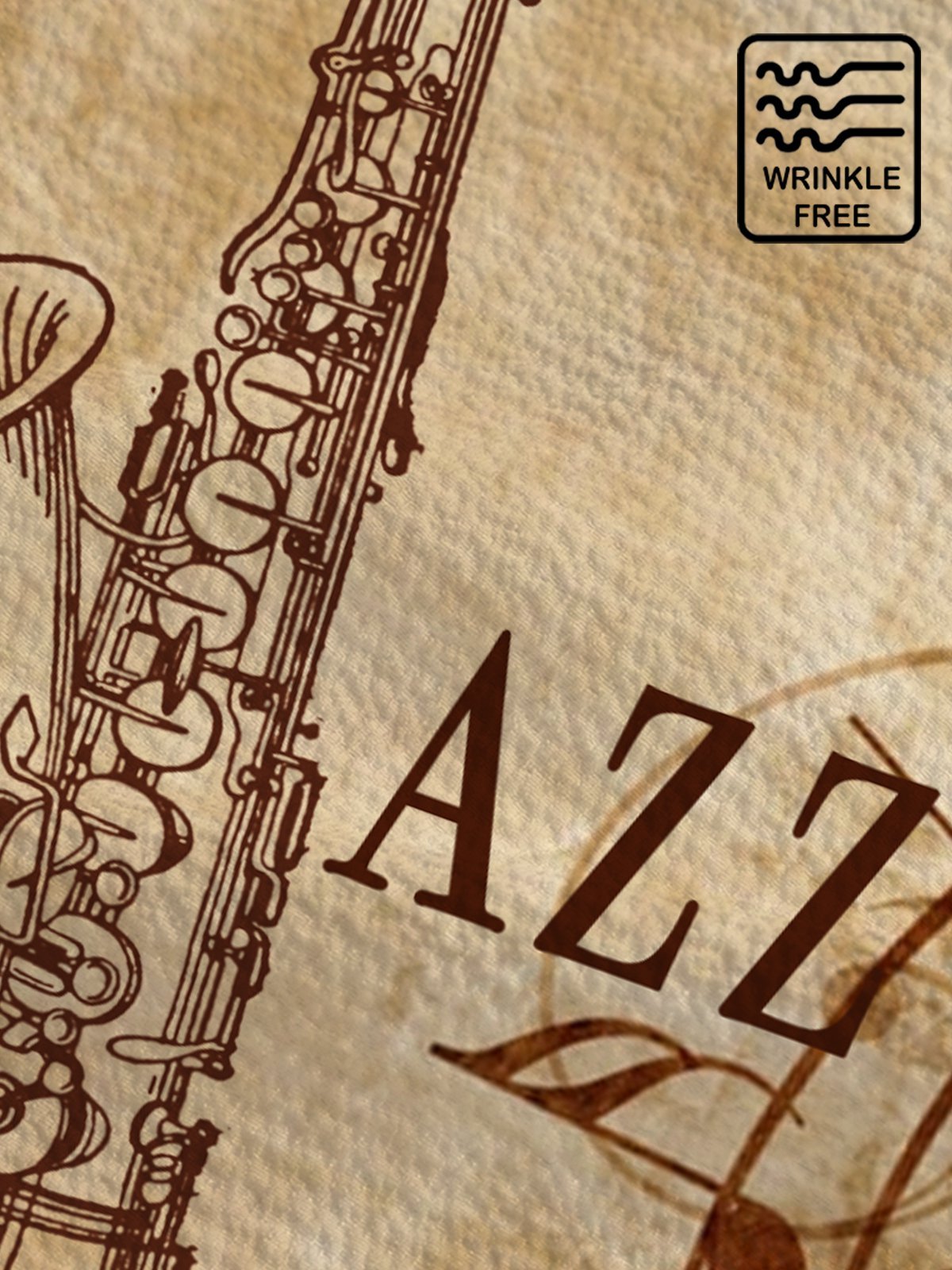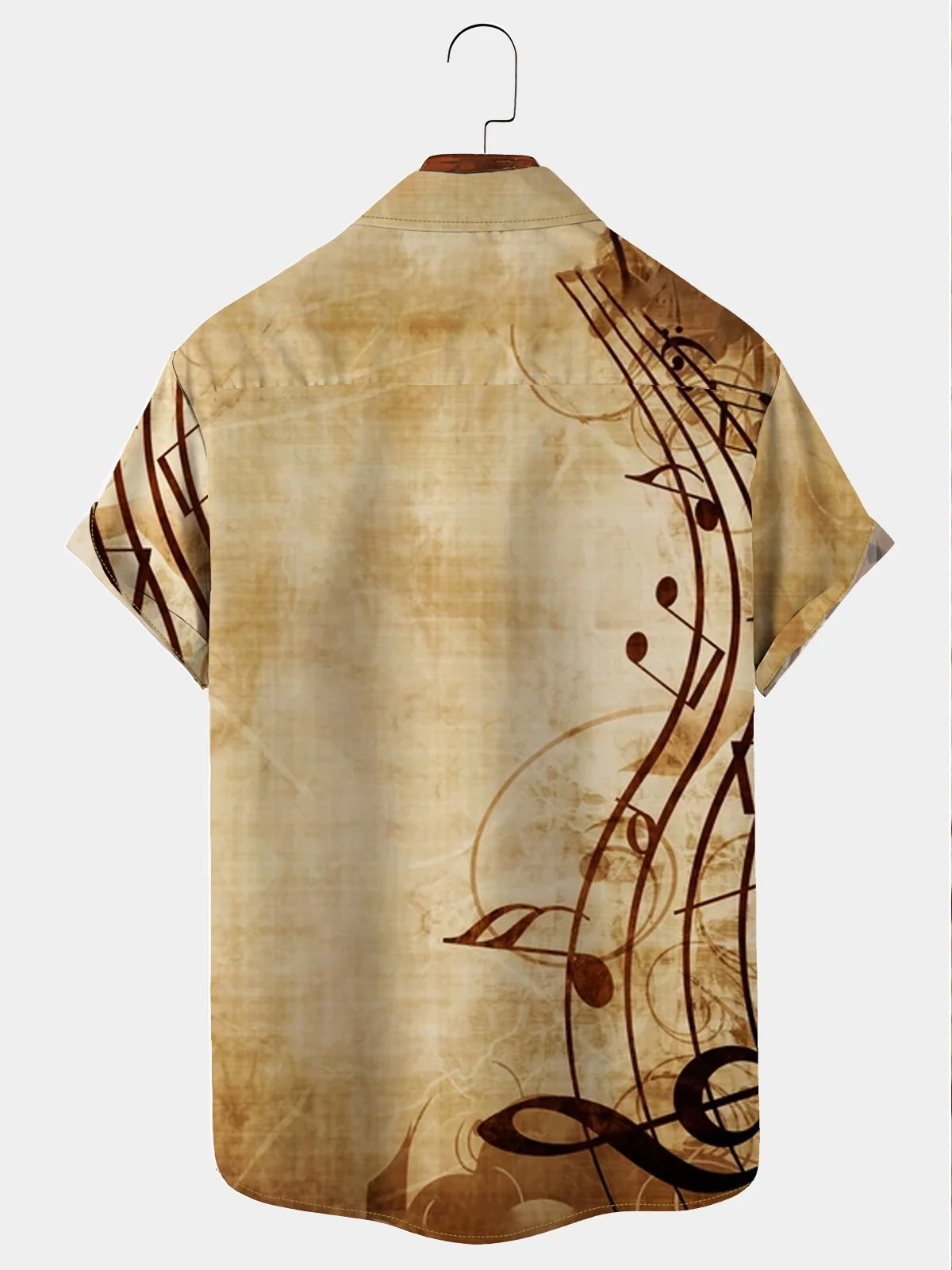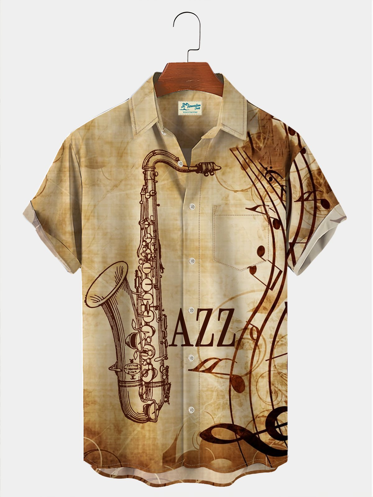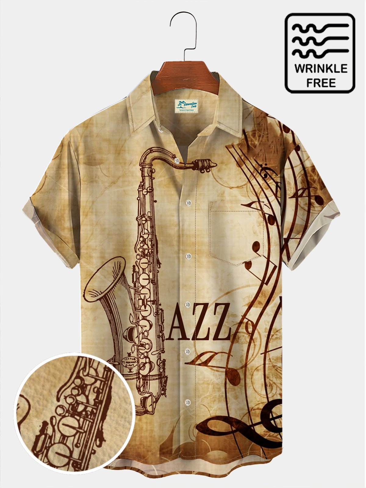 Royaura Men's Vintage Hawaiian Shirts Jazz Sax Note Art Seersucker Wrinkle Free Aloha Shirts