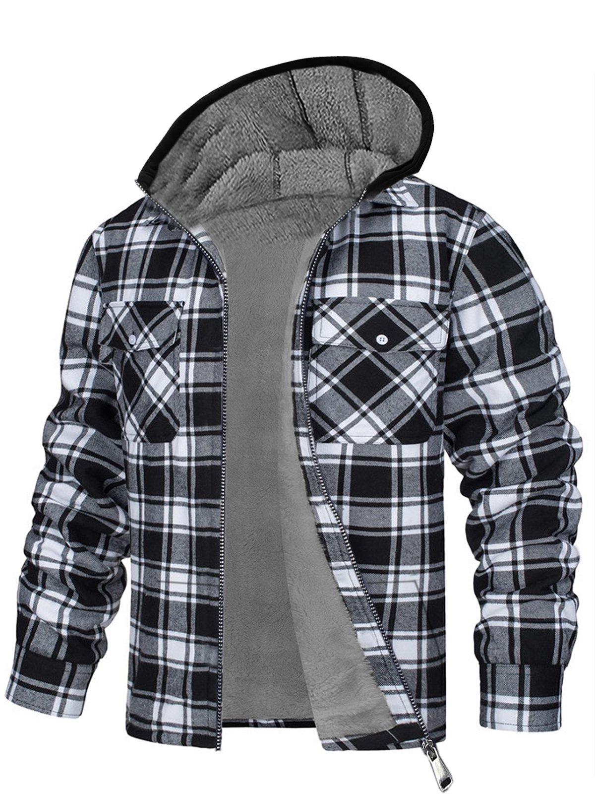 Royaura Men's Vintage Plaid Drawstring Zipper Hooded Sweatshirt