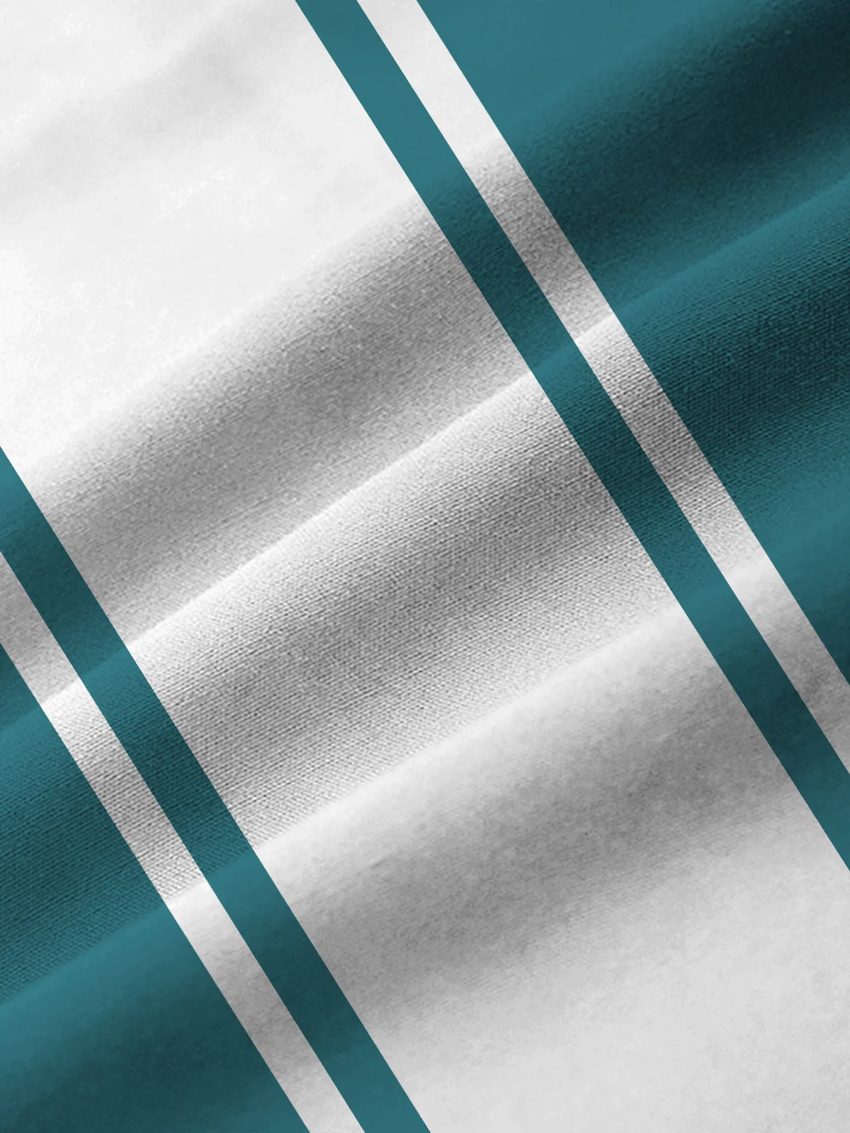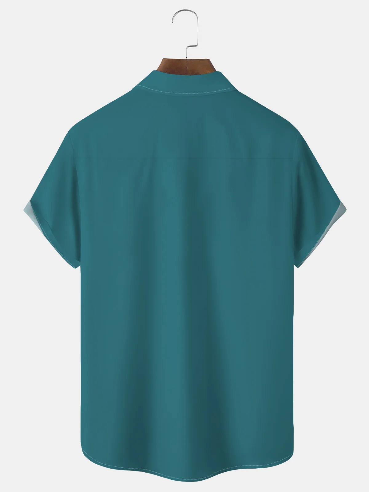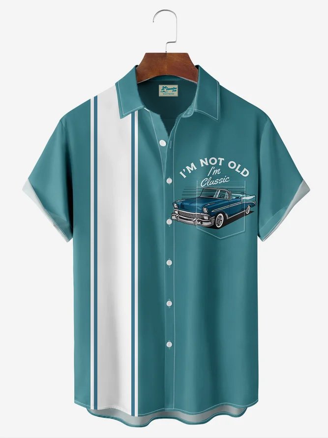Royaura Retro Car Bowling Stripe Print Men's Button Pocket Shirt