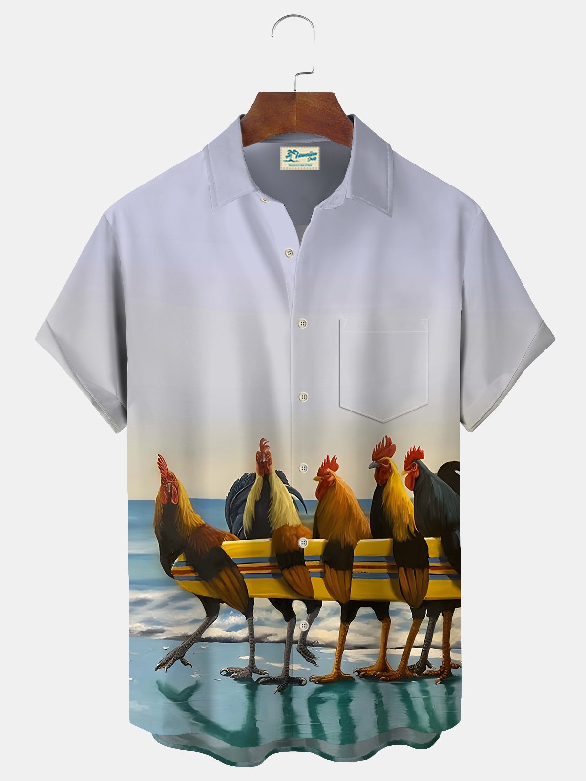 Royaura Rooster Print Beach Men's Hawaiian Oversized Short Sleeve Shirt with Pockets