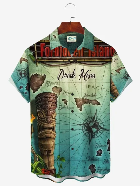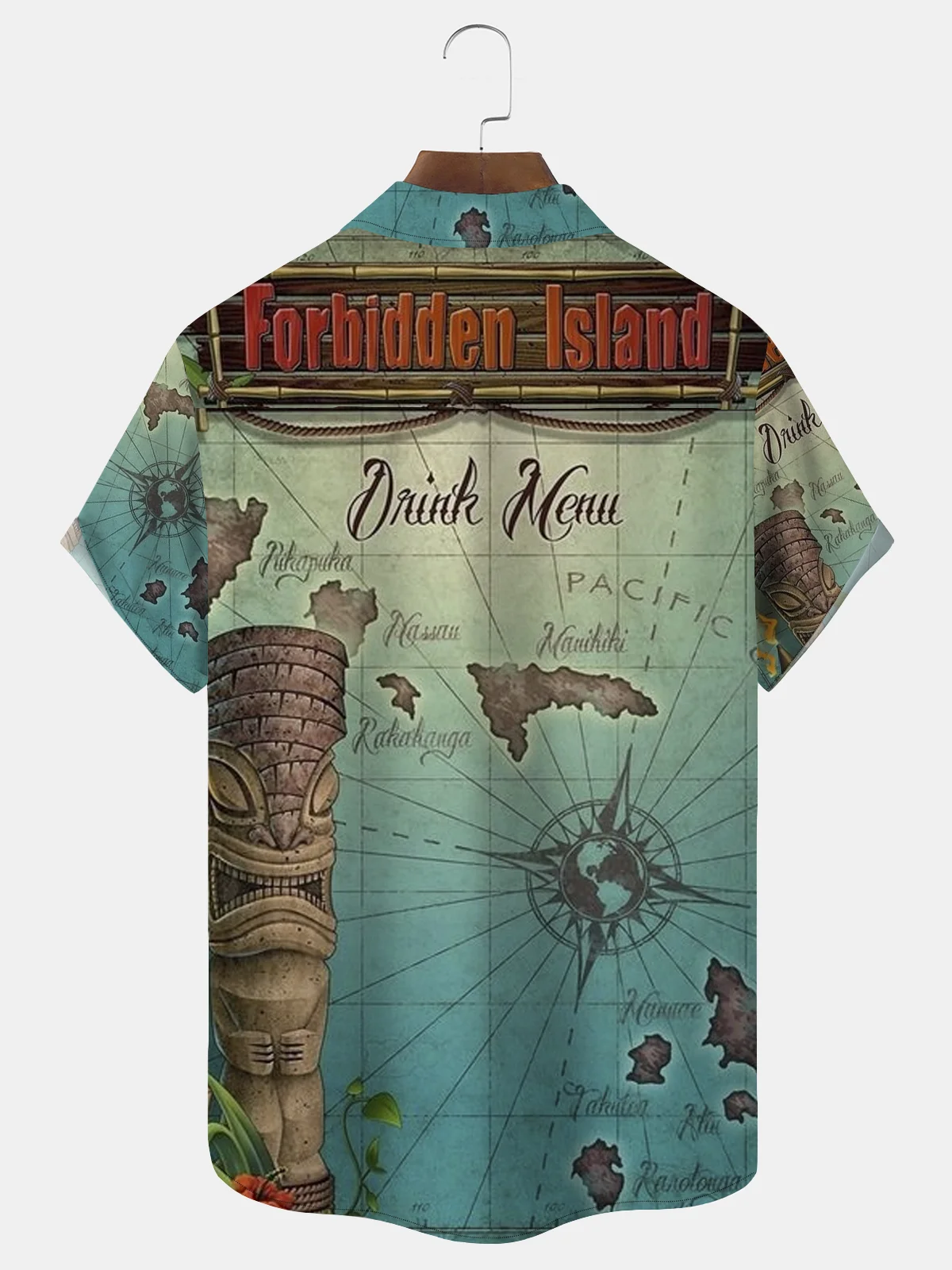 Royaura® TIKI Nautical Beach Men's Hawaiian Print Shirt Stretch Aloha Pocket Cartoon Camping Shirt