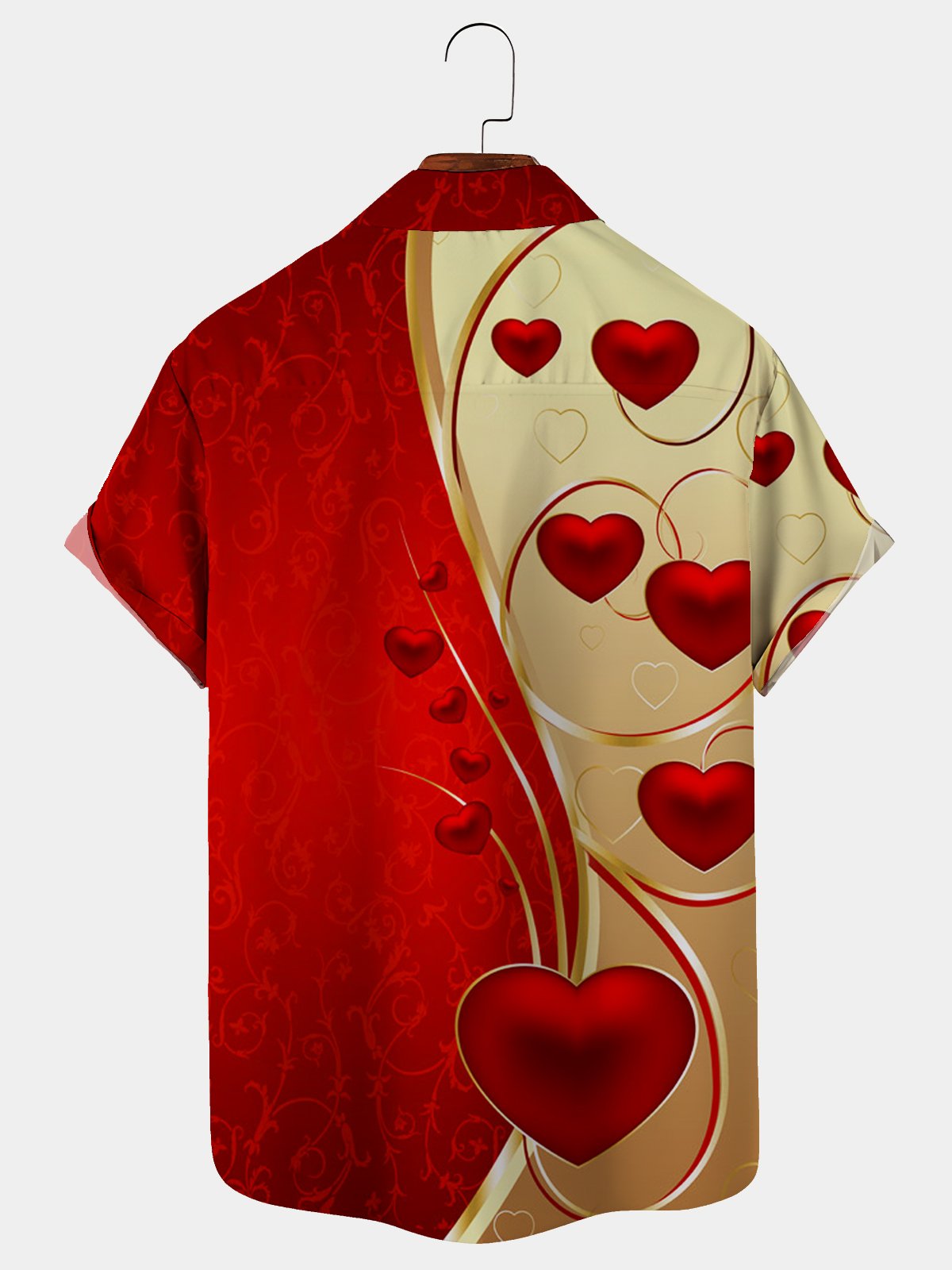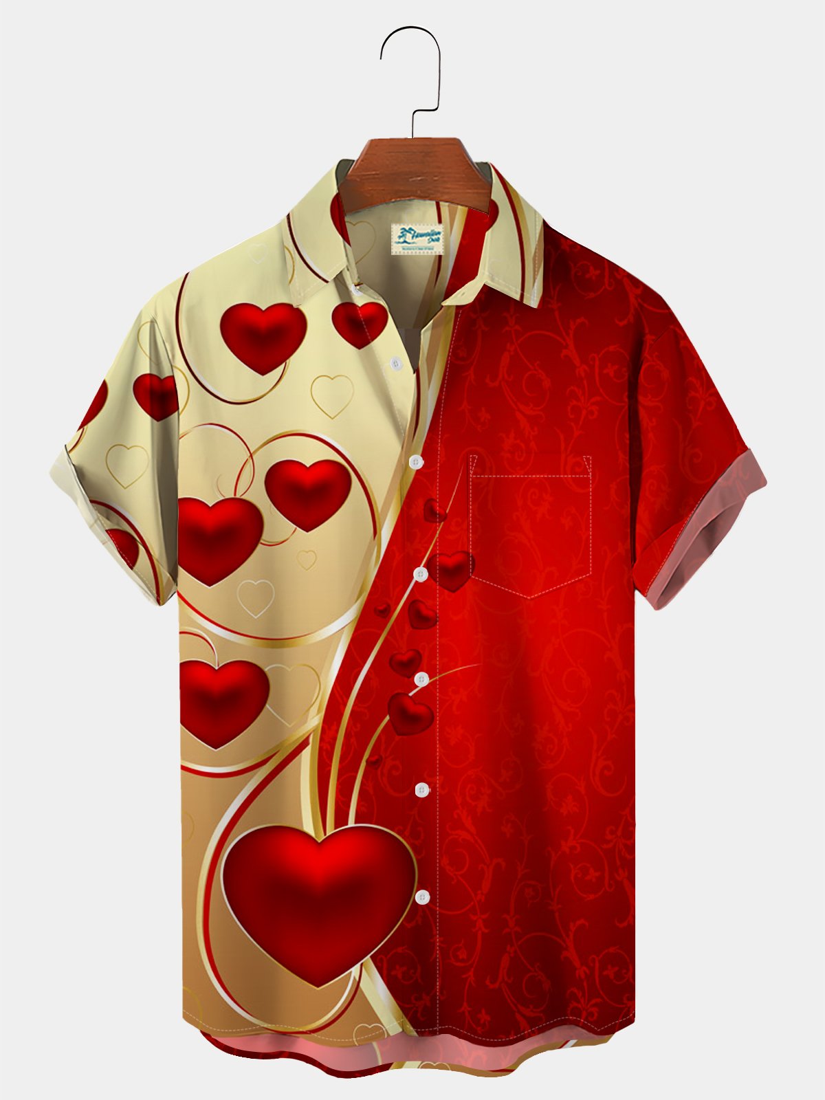 Royaura Valentine's Day Heart Pocket Hawaiian Shirt Oversized Vacation Shirt