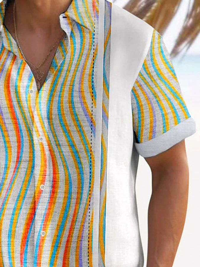 Royaura Vintage Abstract Geometric Khaki Men's Bowling Shirt Stretch Aloha Camp Pocket Shirts Big Tall