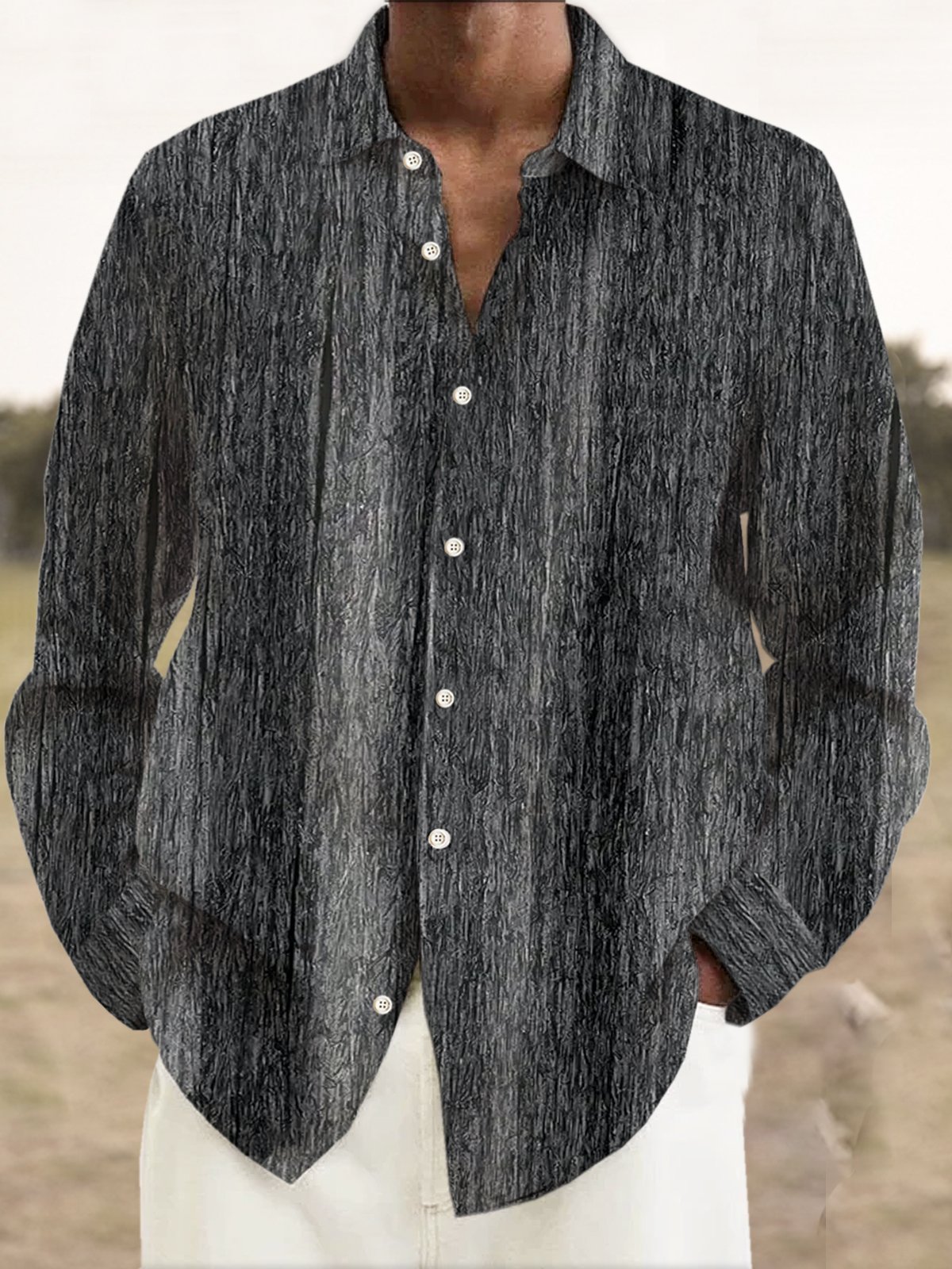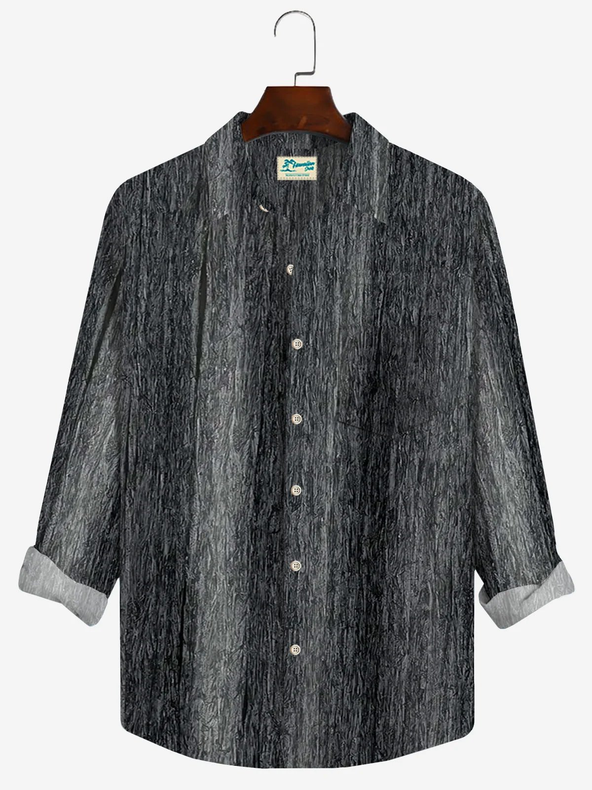 Royaura Vintage Basic Textured Print Men's Button Pocket Long Sleeve Shirt