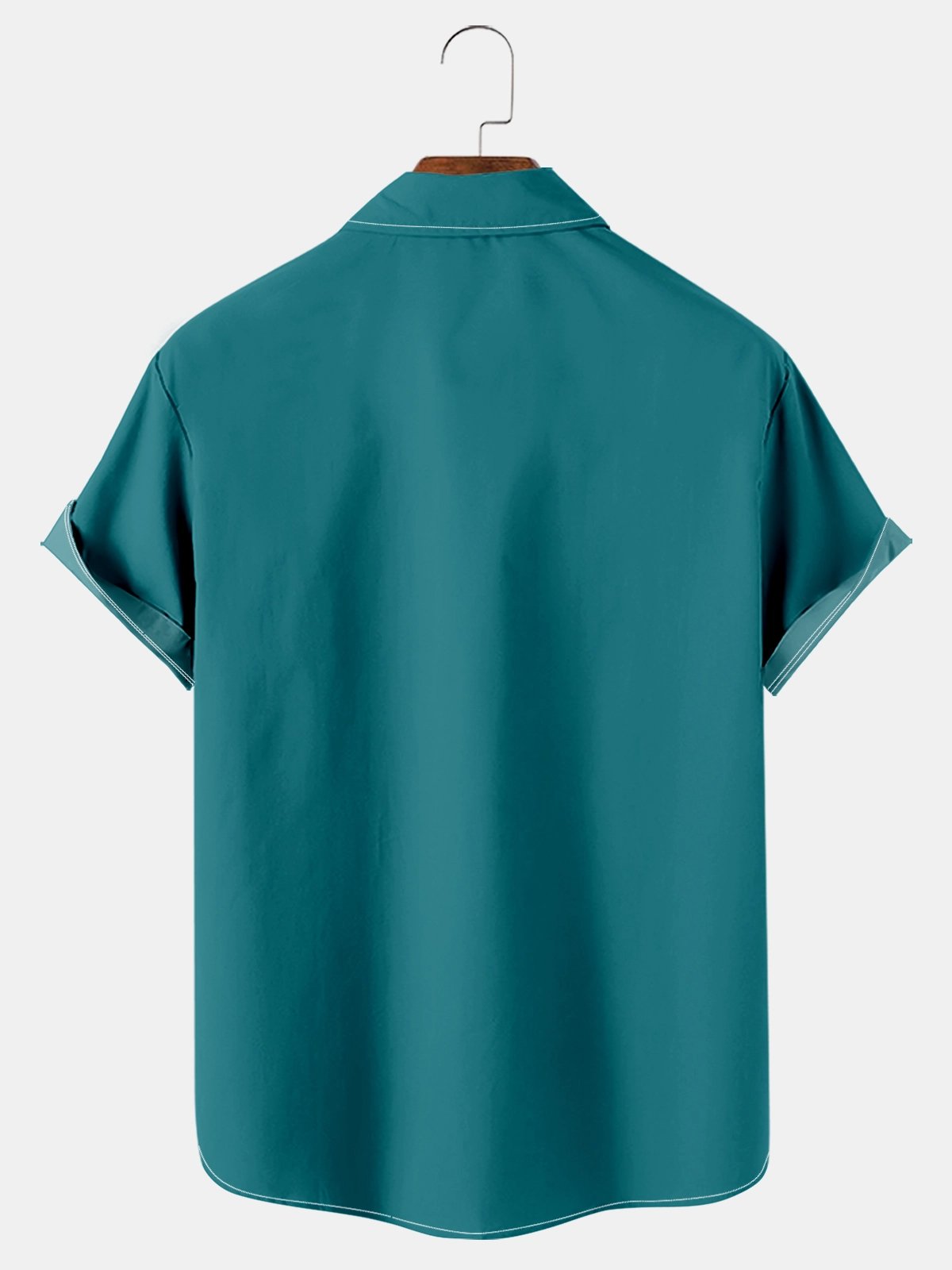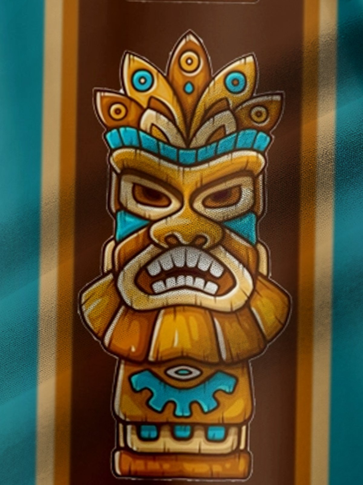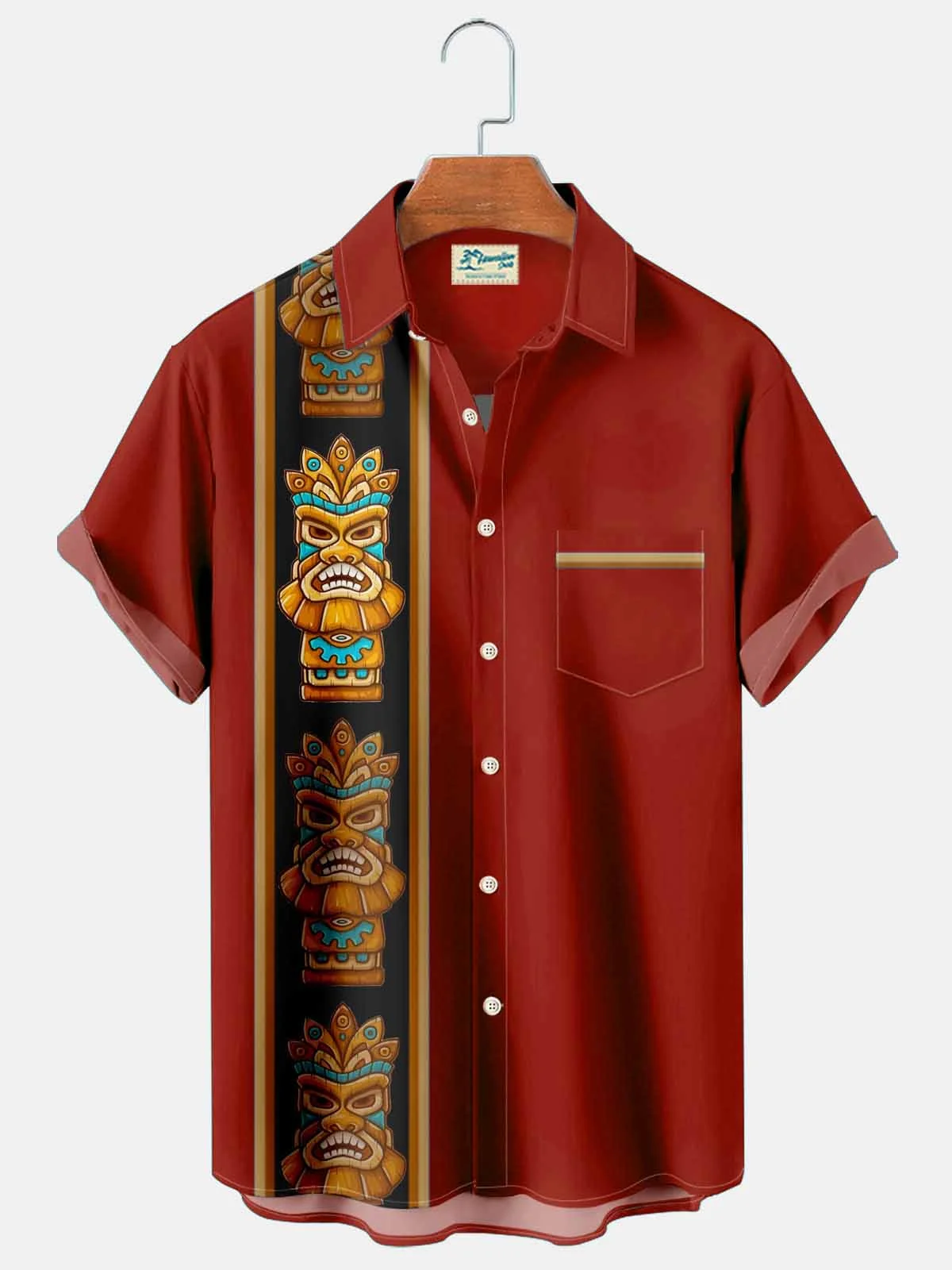 Royaura Vintage bowling tiki totem men's pocket casual button shirt