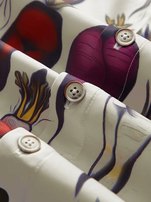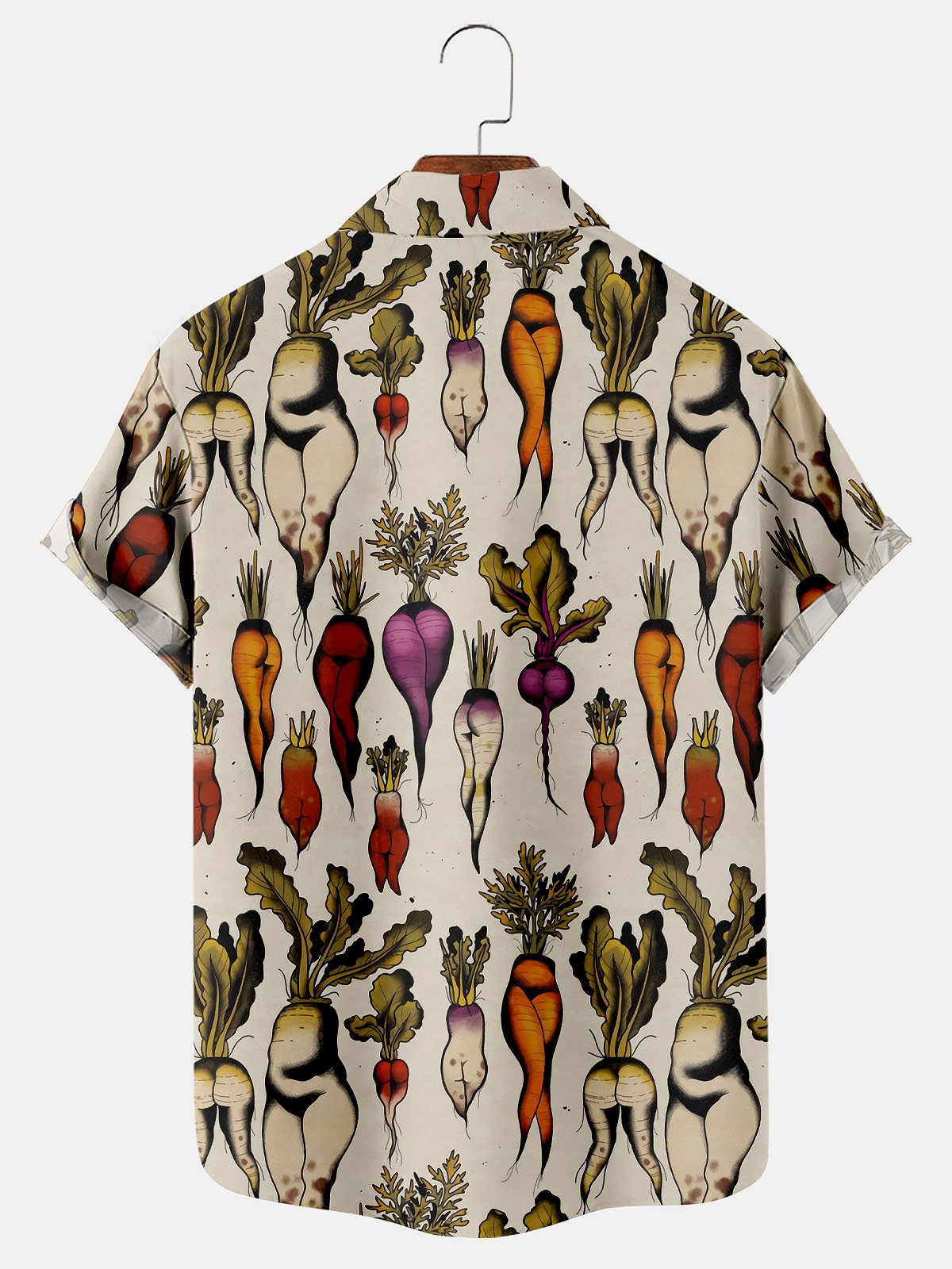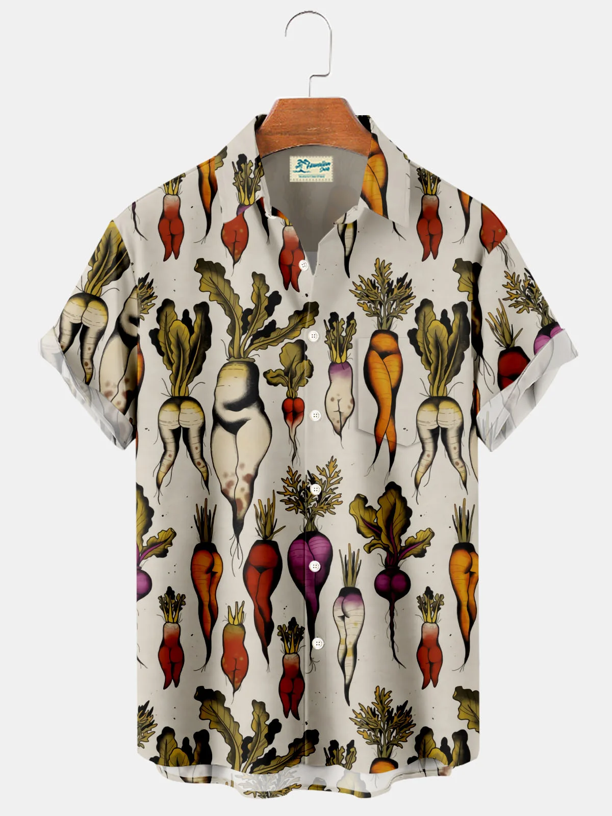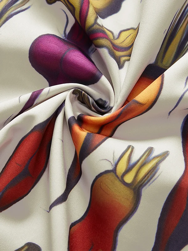 Royaura Vintage Fun Fruit and Vegetable Print Men's Button Pocket Shirt
