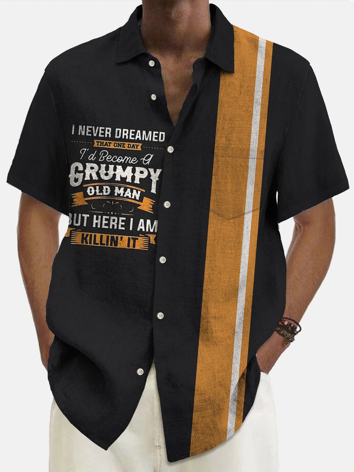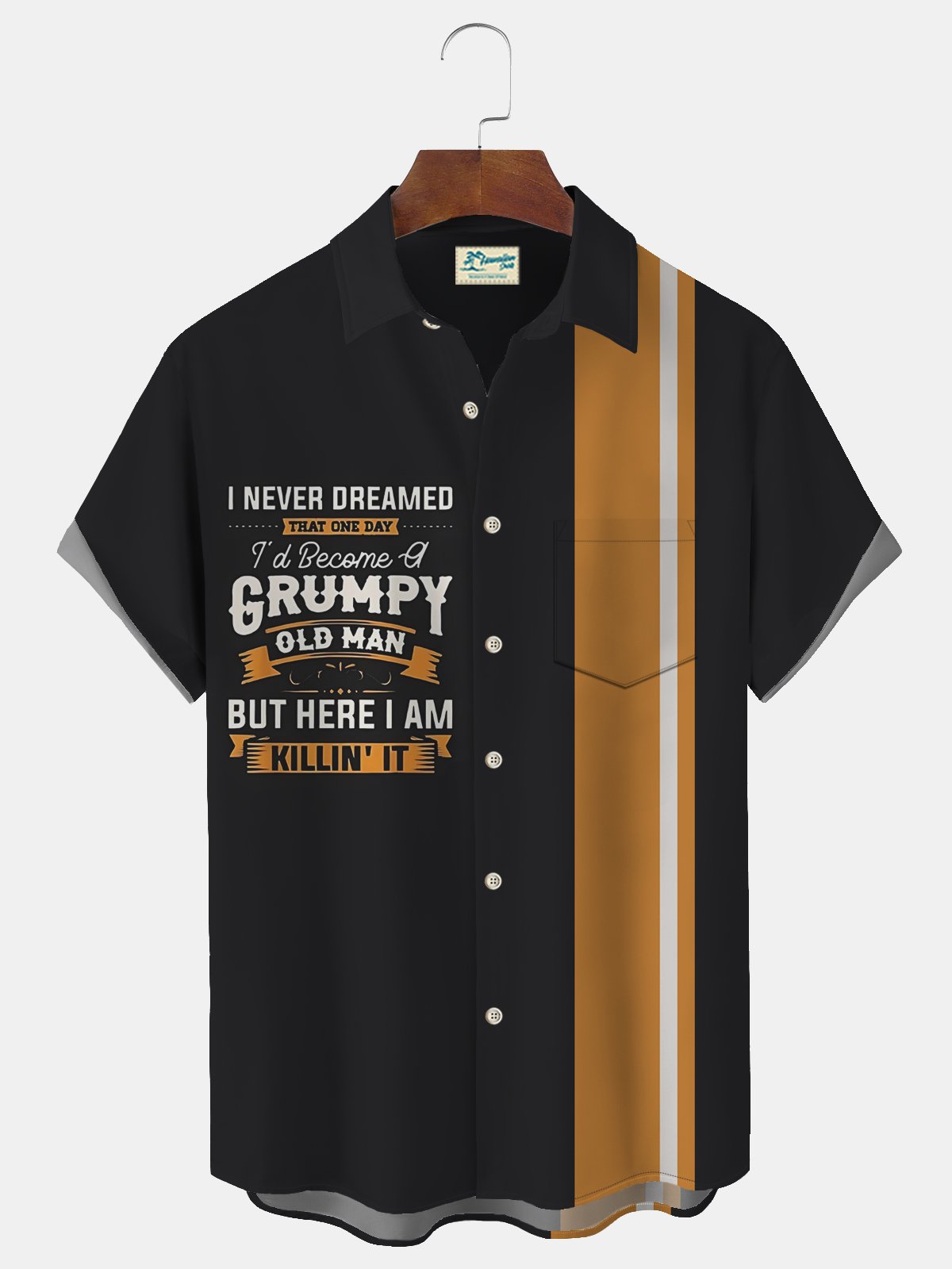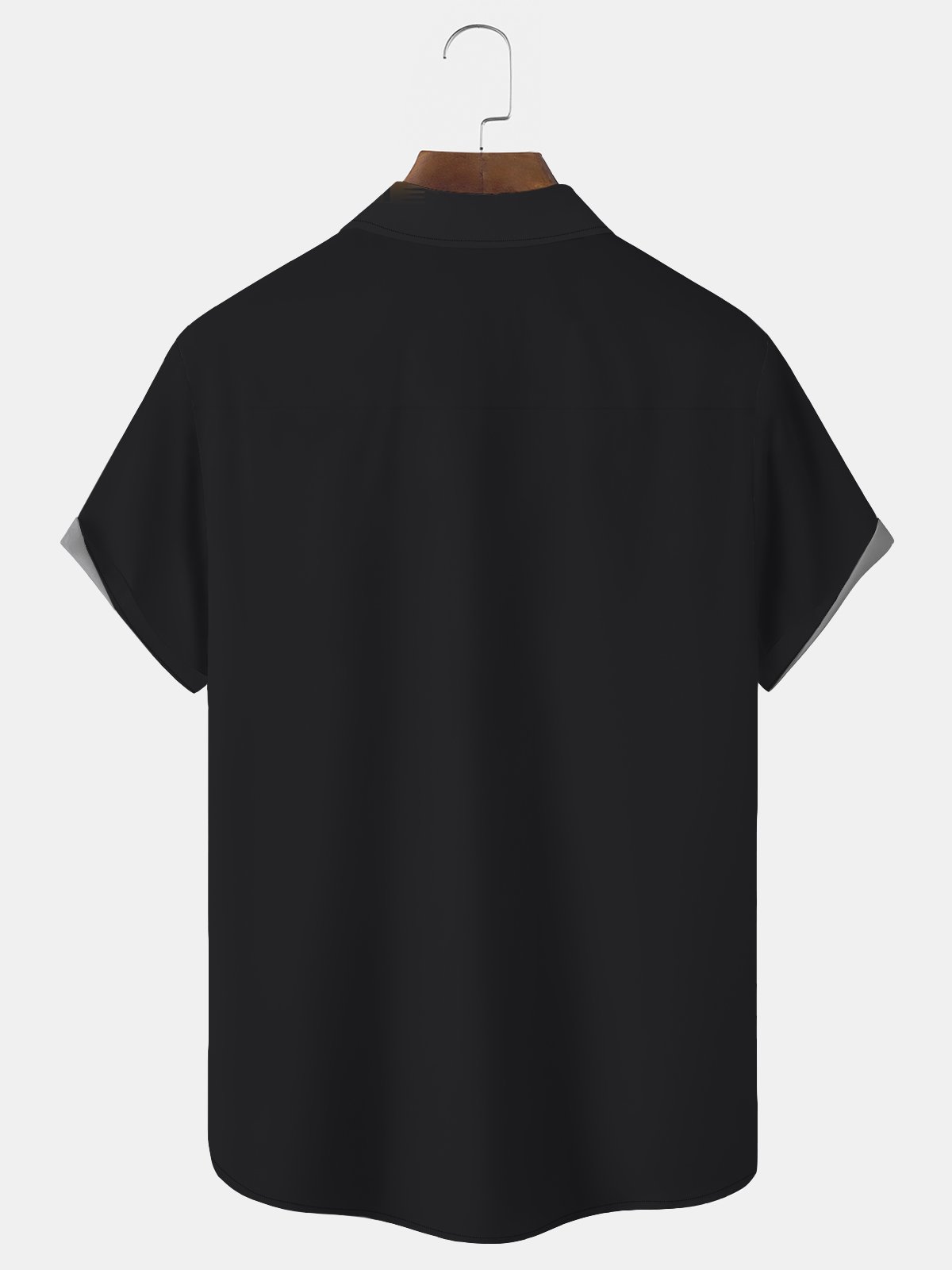 Royaura® Vintage Letter Bowling Print Men's Button Pocket Shirt