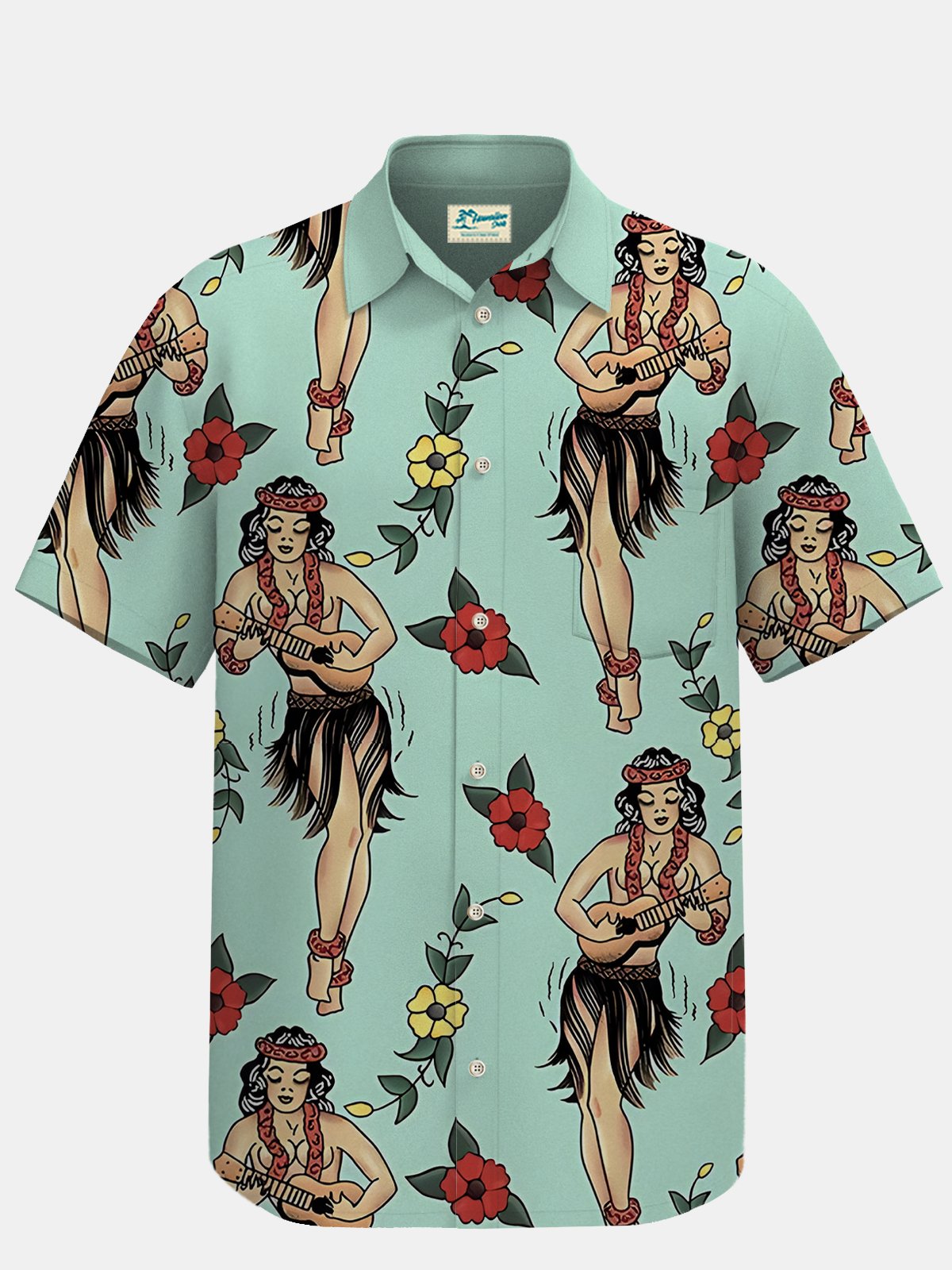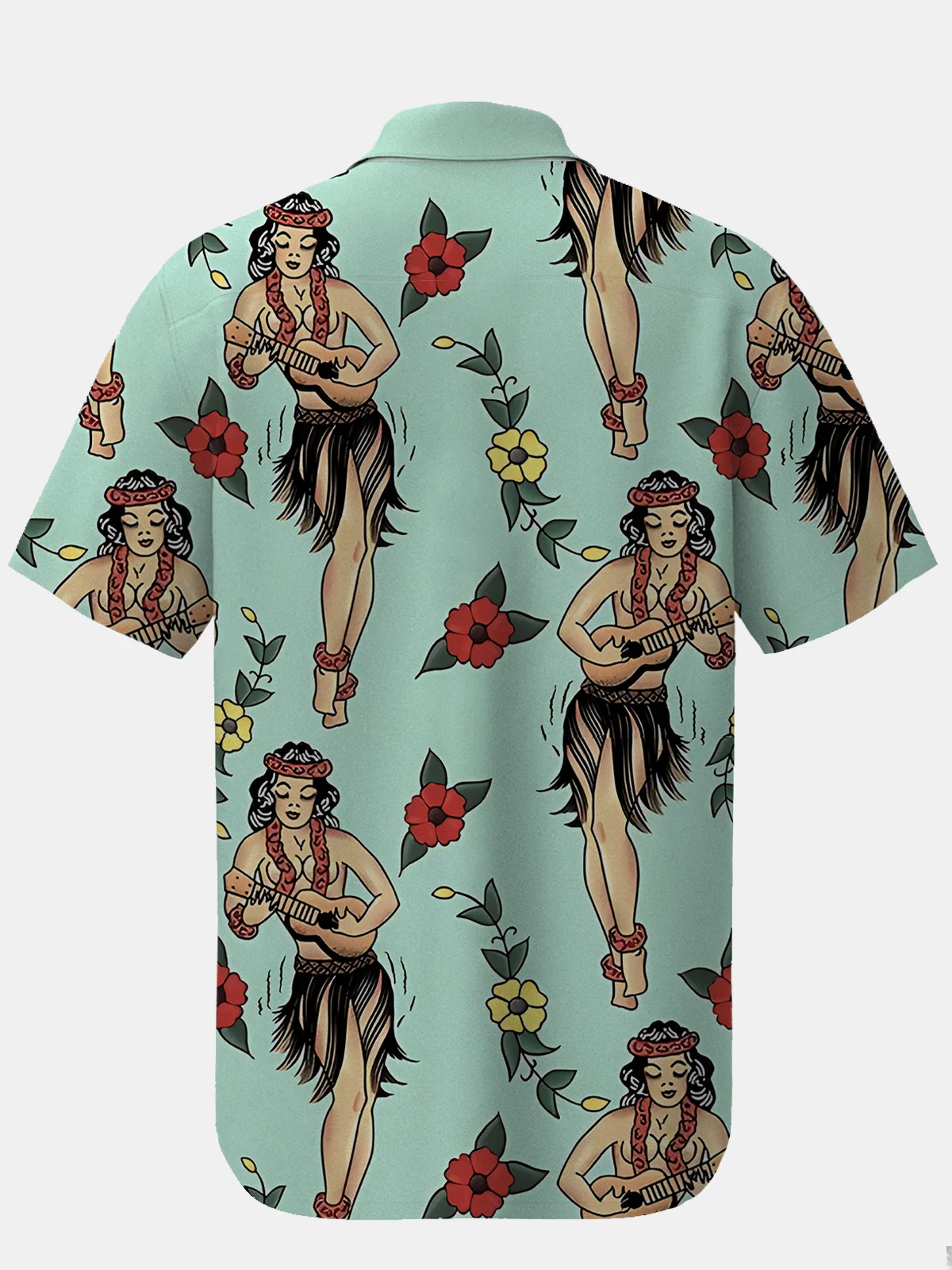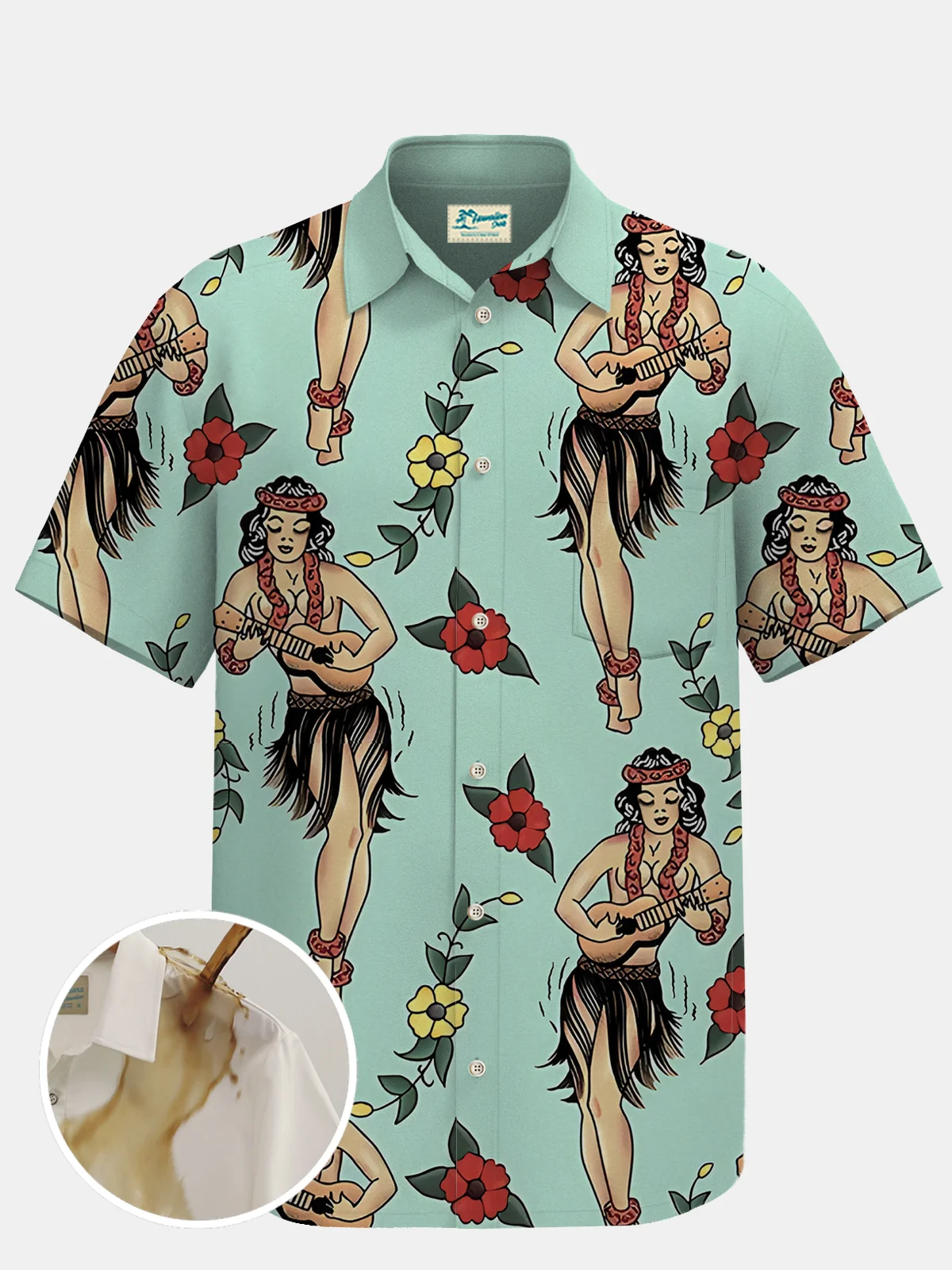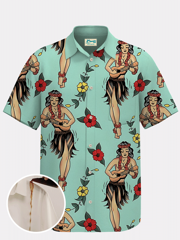Royaura Waterproof Hula Girl Print Beach Hawaiian Shirt Stain Resistant Hydrophobic Breathable Big & Tall