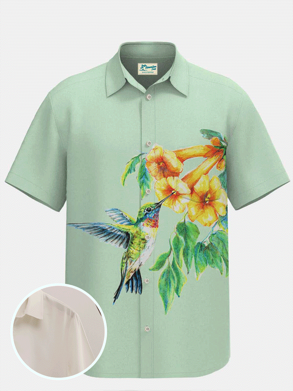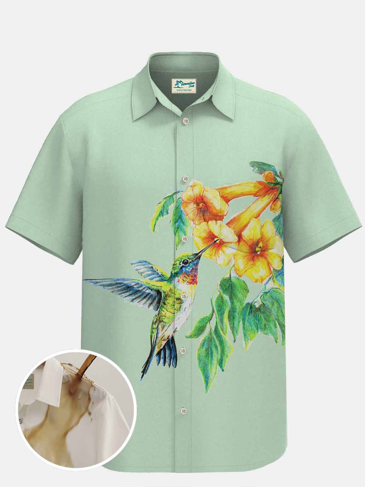 Royaura Waterproof Lily Bird Hawaiian Shirt Stain-Resistant Hydrophobic Anti-Dirty
