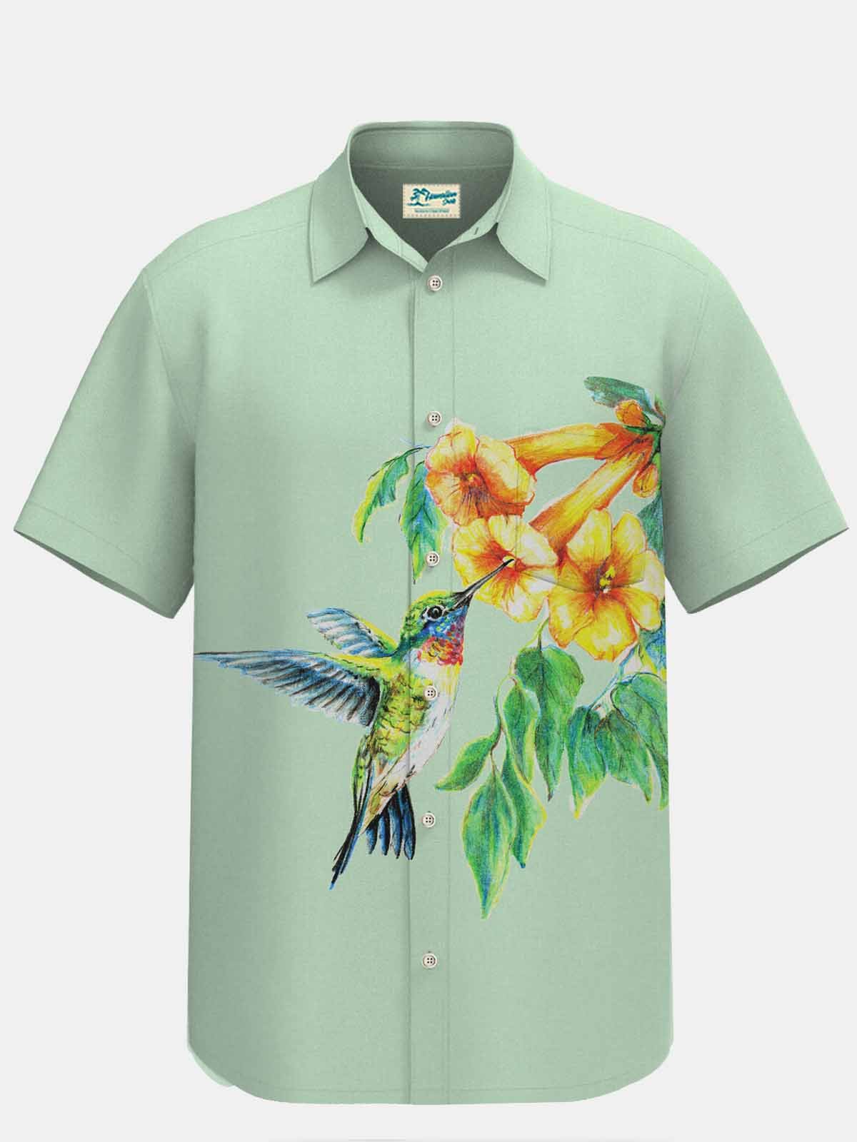 Royaura Waterproof Lily Bird Hawaiian Shirt  Stain-Resistant Hydrophobic Anti-Dirty