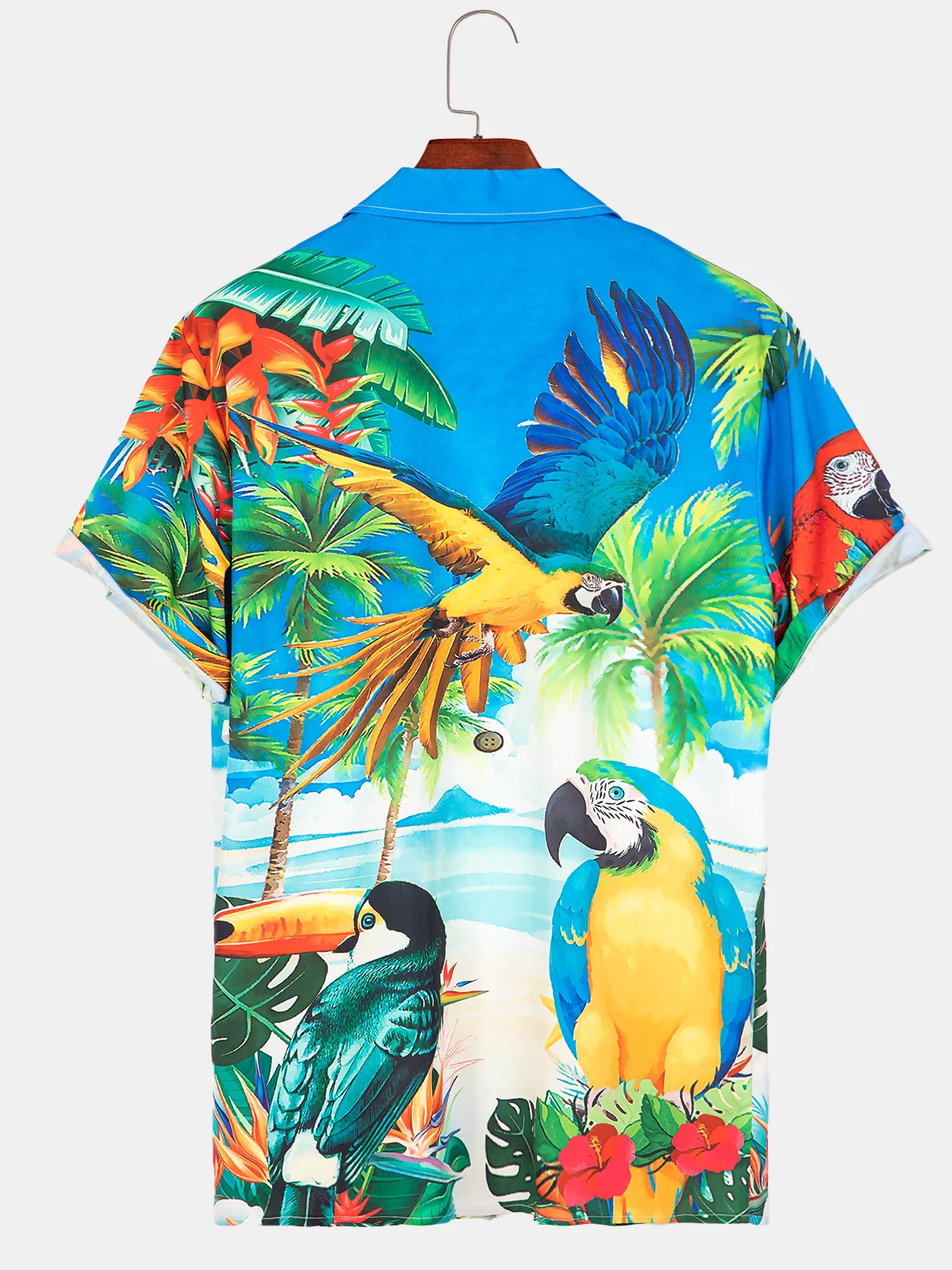 Royaura®  Men's Tropical Parrots Casual Printed Hawaiian Vacation Plus Size Shirts